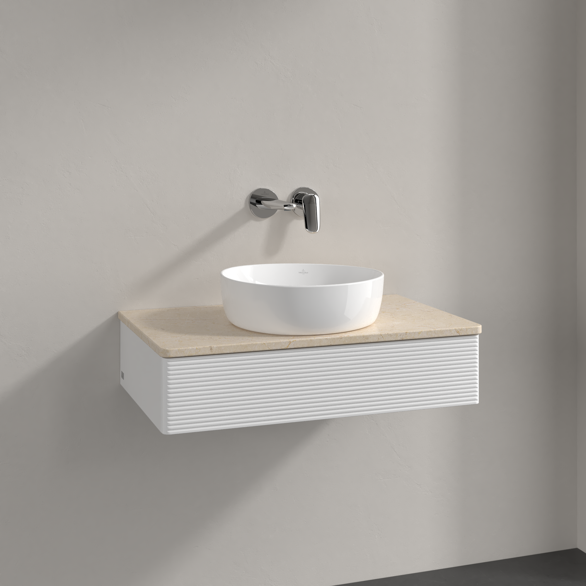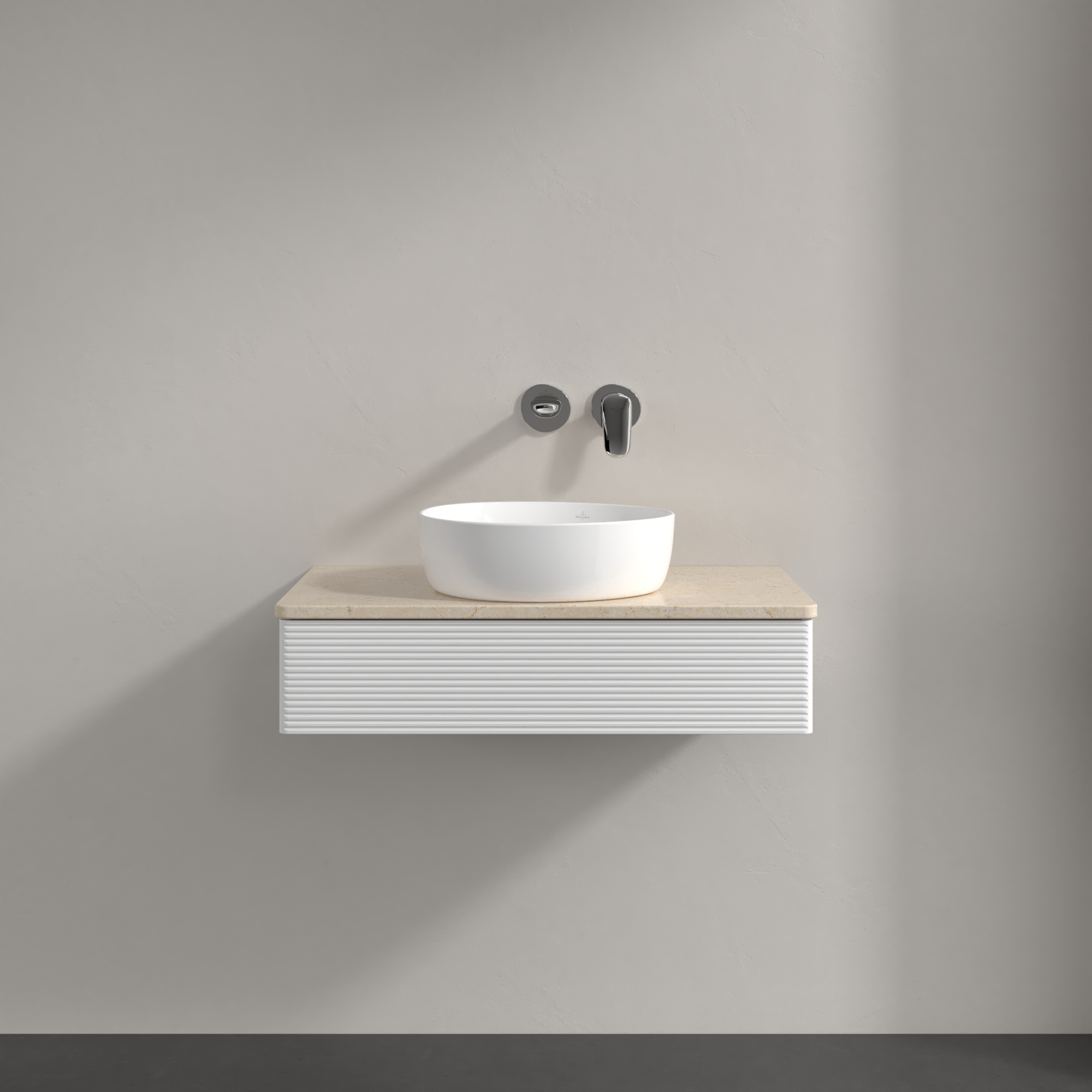 Antao Vanity unit, with lighting, 1 pull-out compartment, 800x190x500mm, Front with grain texture, Body: Glossy White Lacquer, Front: Glossy White Lacquer, Cover plate: Botticino