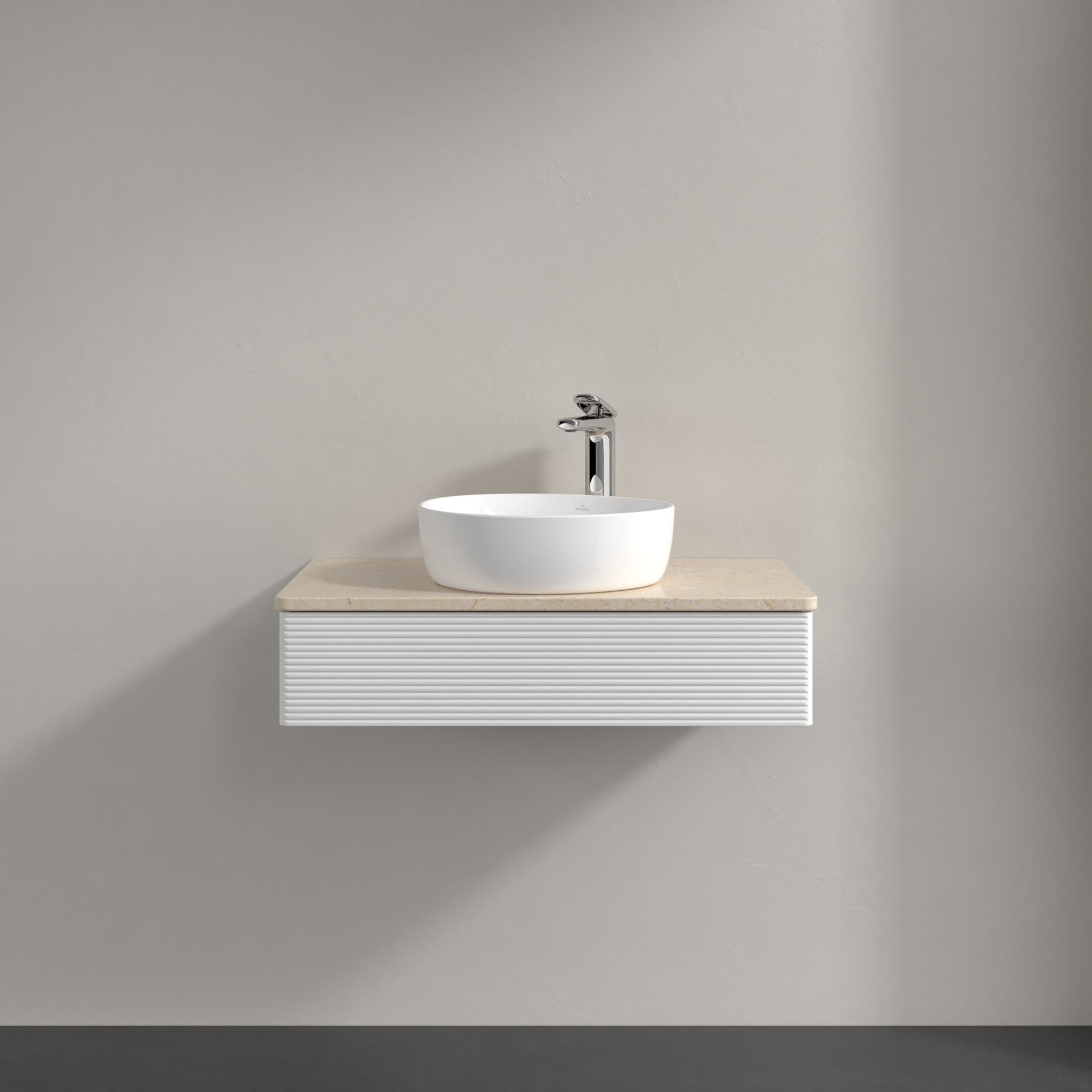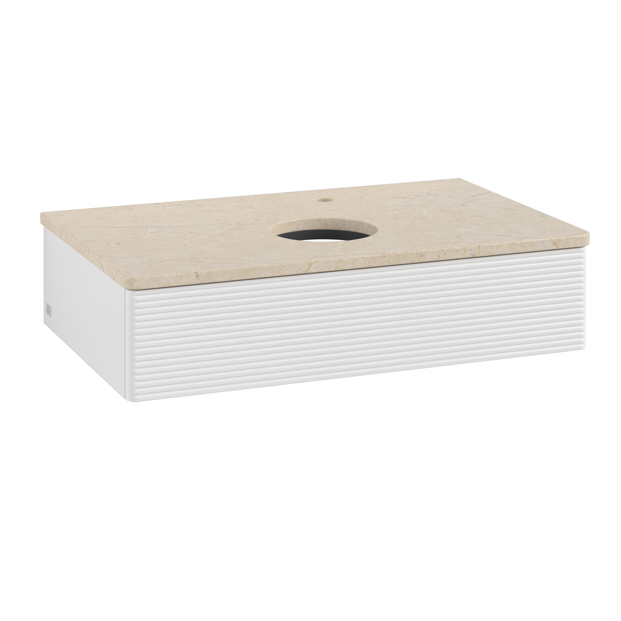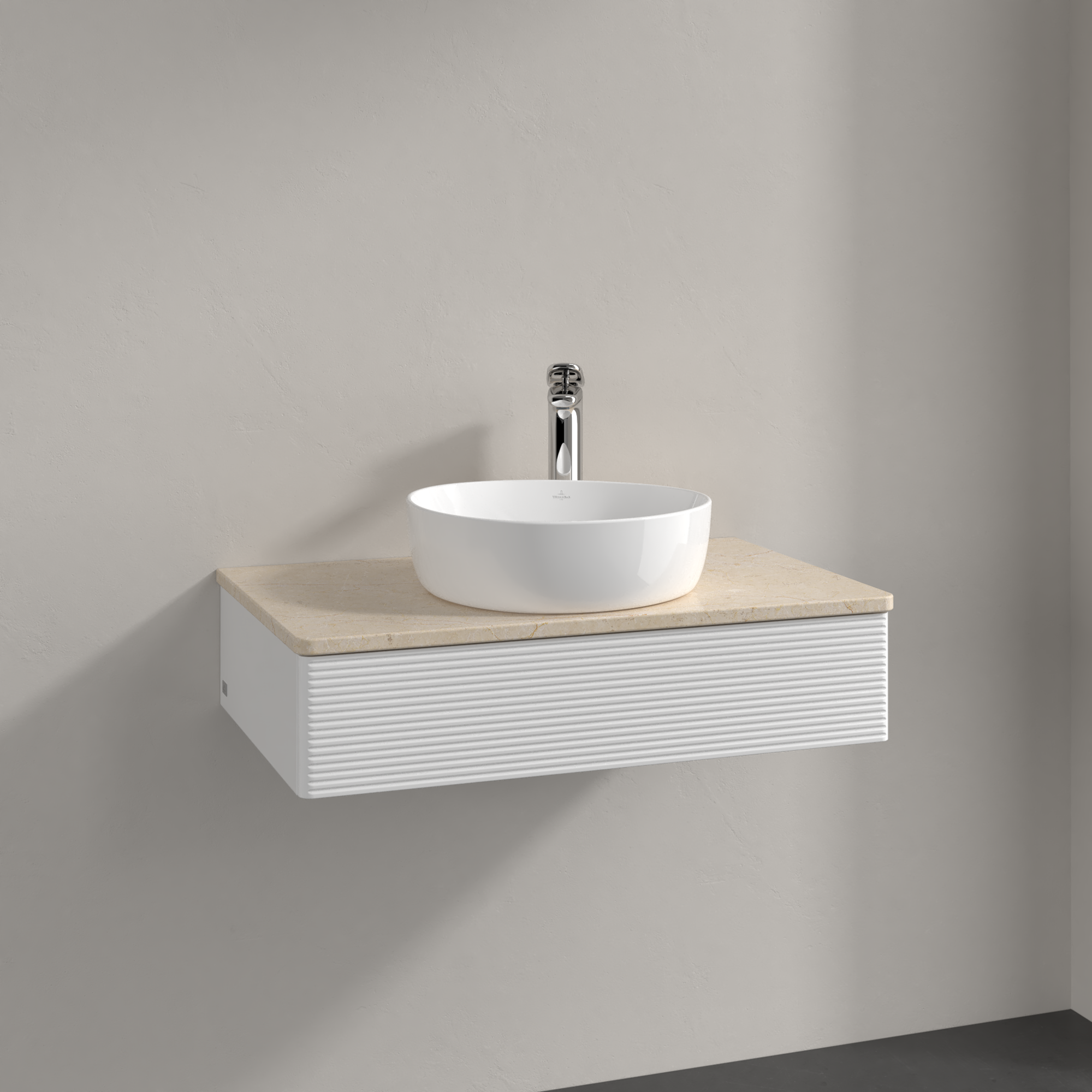 Antao Vanity unit, with lighting, 1 pull-out compartment, 800x190x500mm, Front with grain texture, Body: Glossy White Lacquer, Front: Glossy White Lacquer, Cover plate: Botticino