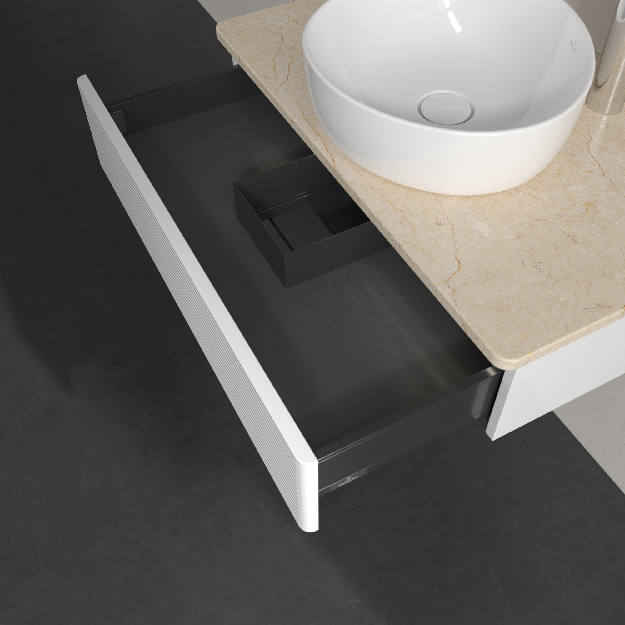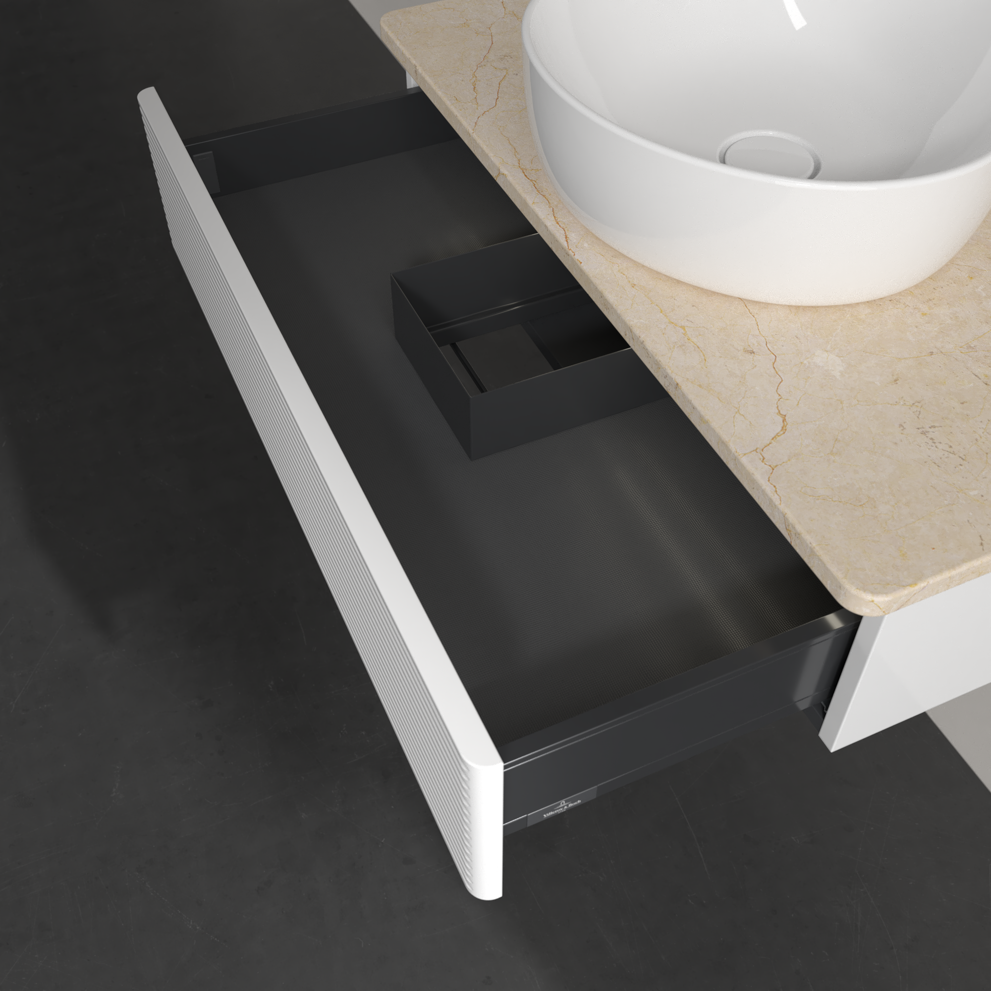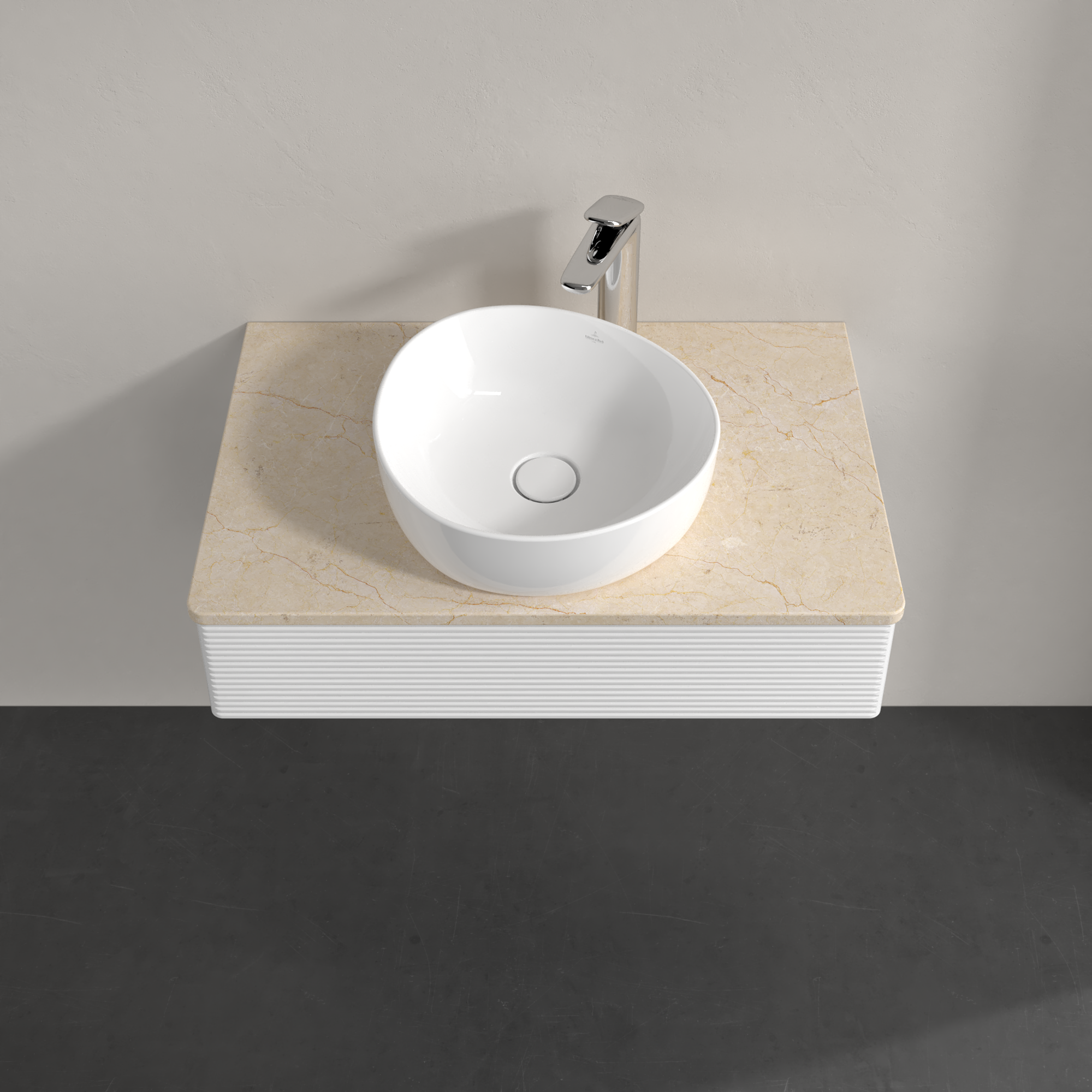 Antao Vanity unit, with lighting, 1 pull-out compartment, 800x190x500mm, Front with grain texture, Body: Glossy White Lacquer, Front: Glossy White Lacquer, Cover plate: Botticino