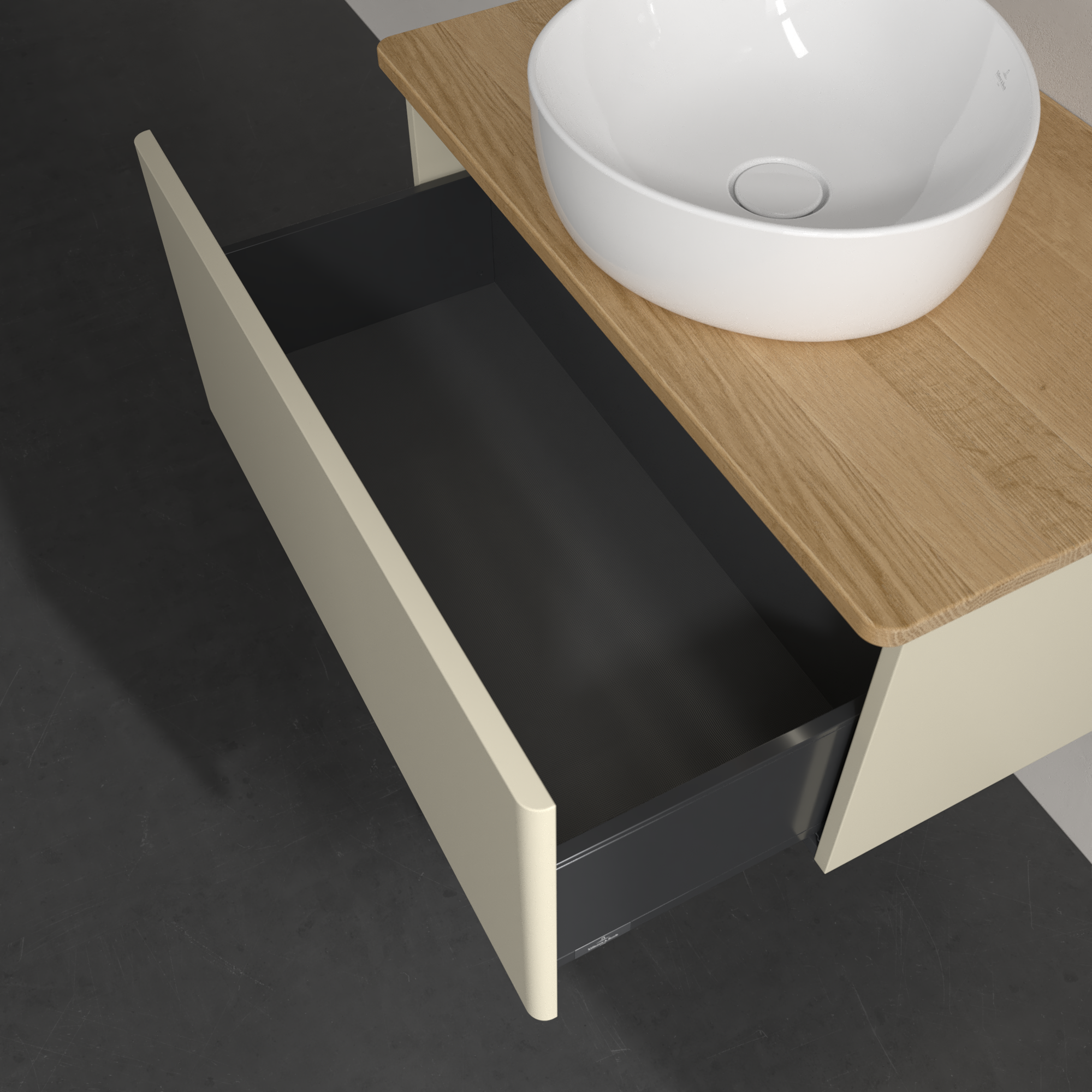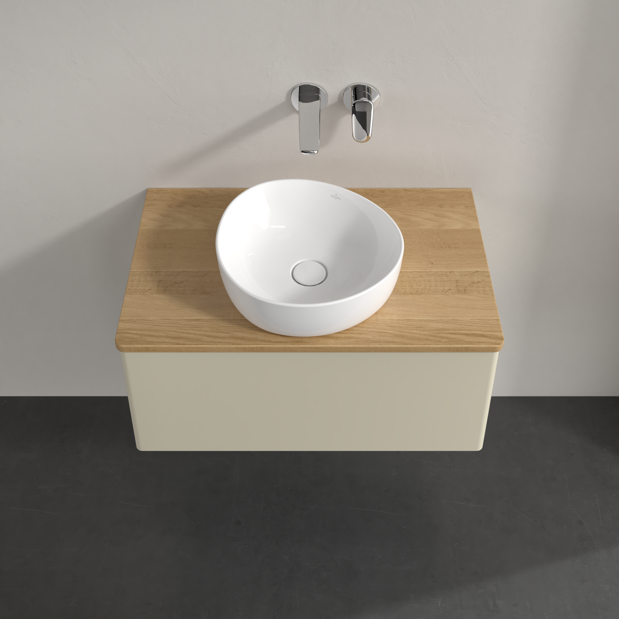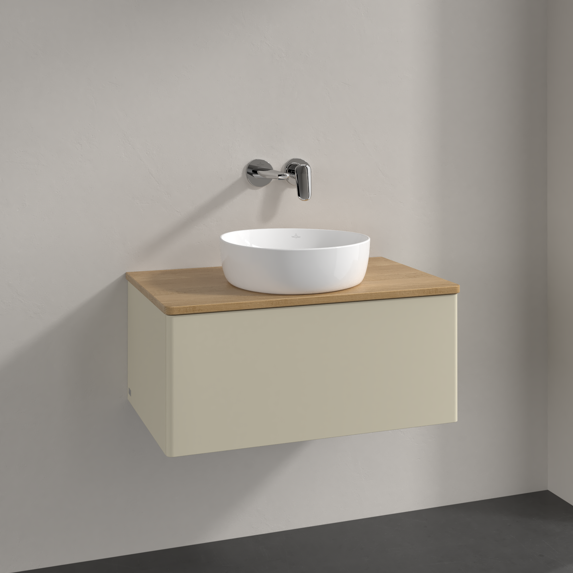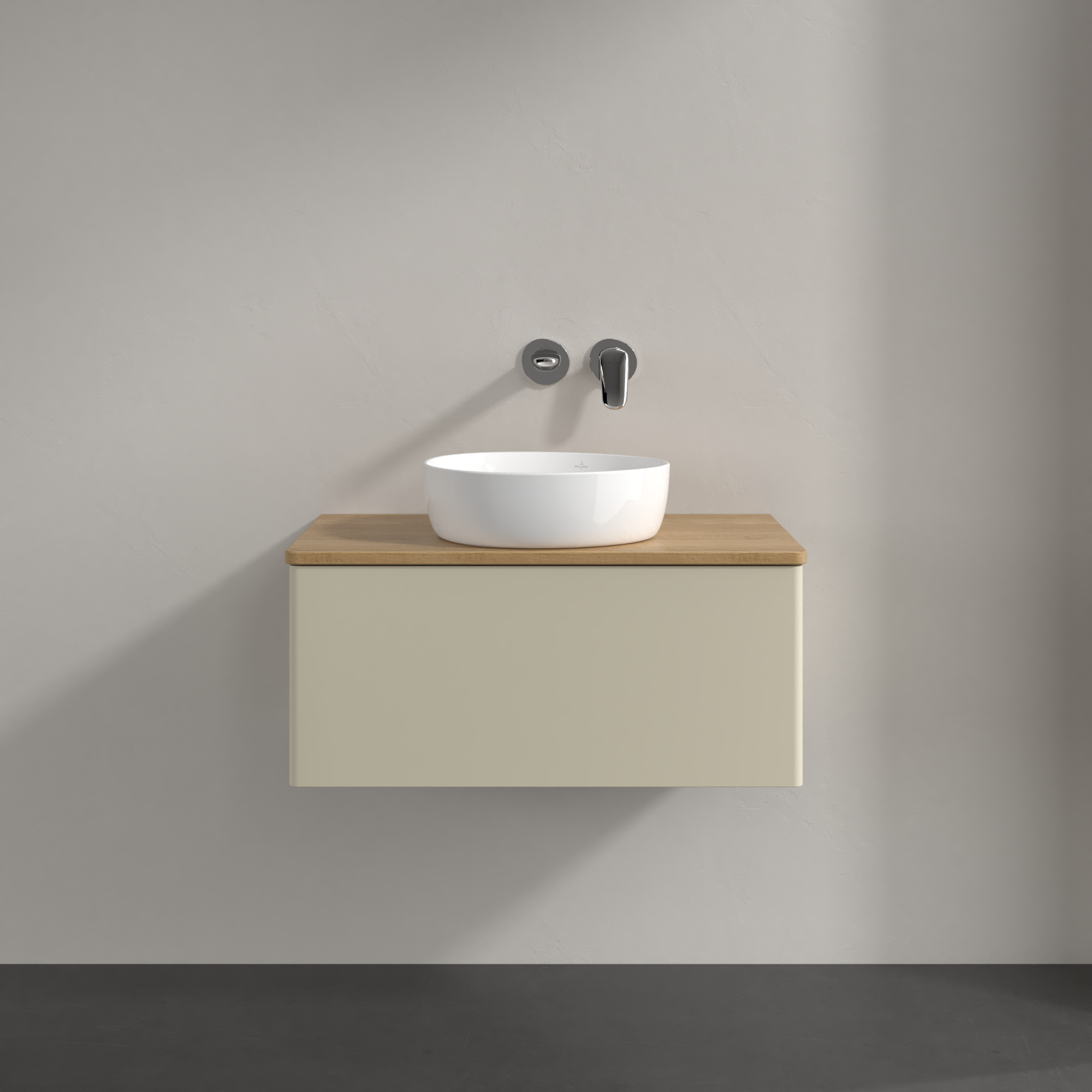 Antao Vanity unit, with lighting, 1 pull-out compartment, 800x360x500mm, Front without structure, Body: Silk Grey Matt Lacquer, Front: Silk Grey Matt Lacquer, Cover plate: Honey Oak