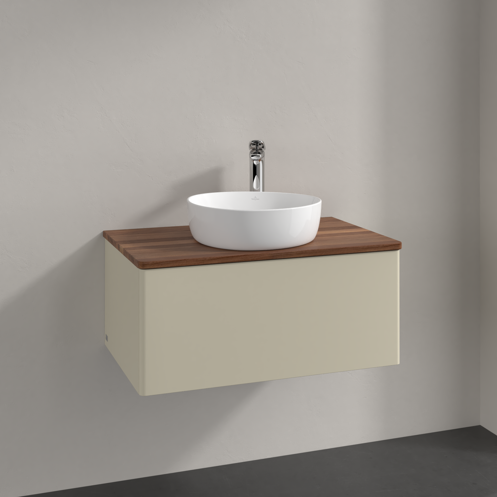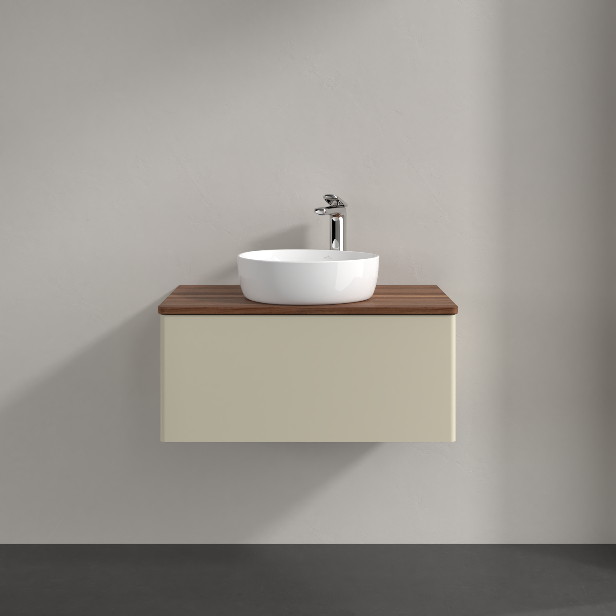 Antao Vanity unit, with lighting, 1 pull-out compartment, 800x360x500mm, Front without structure, Body: Silk Grey Matt Lacquer, Front: Silk Grey Matt Lacquer, Cover plate: Warm Walnut