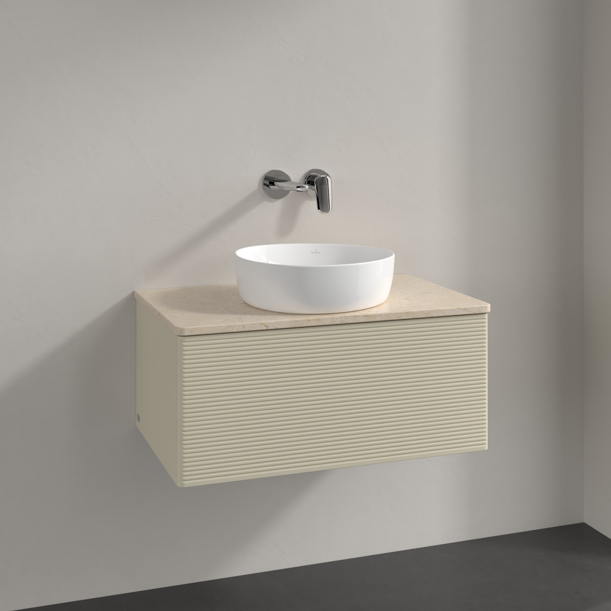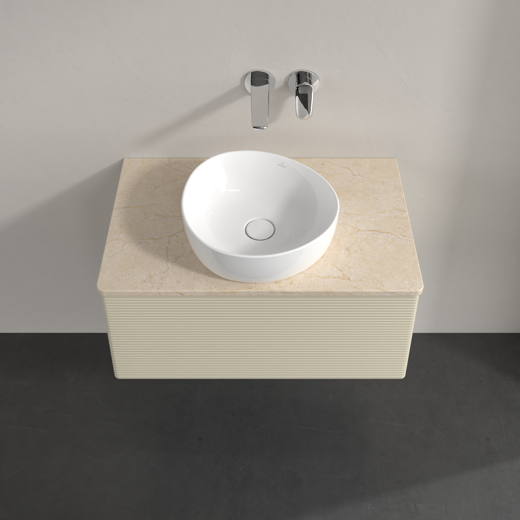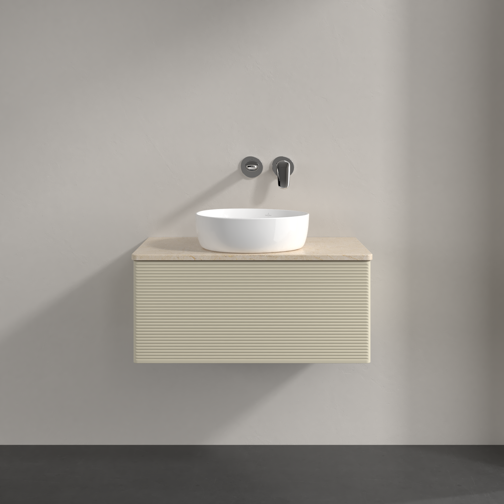 Antao Vanity unit, with lighting, 1 pull-out compartment, 800x360x500mm, Front with grain texture, Body: Silk Grey Matt Lacquer, Front: Silk Grey Matt Lacquer, Cover plate: Botticino