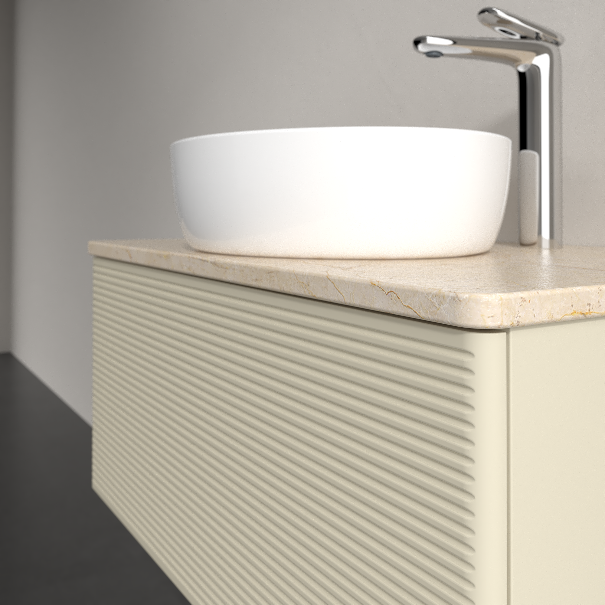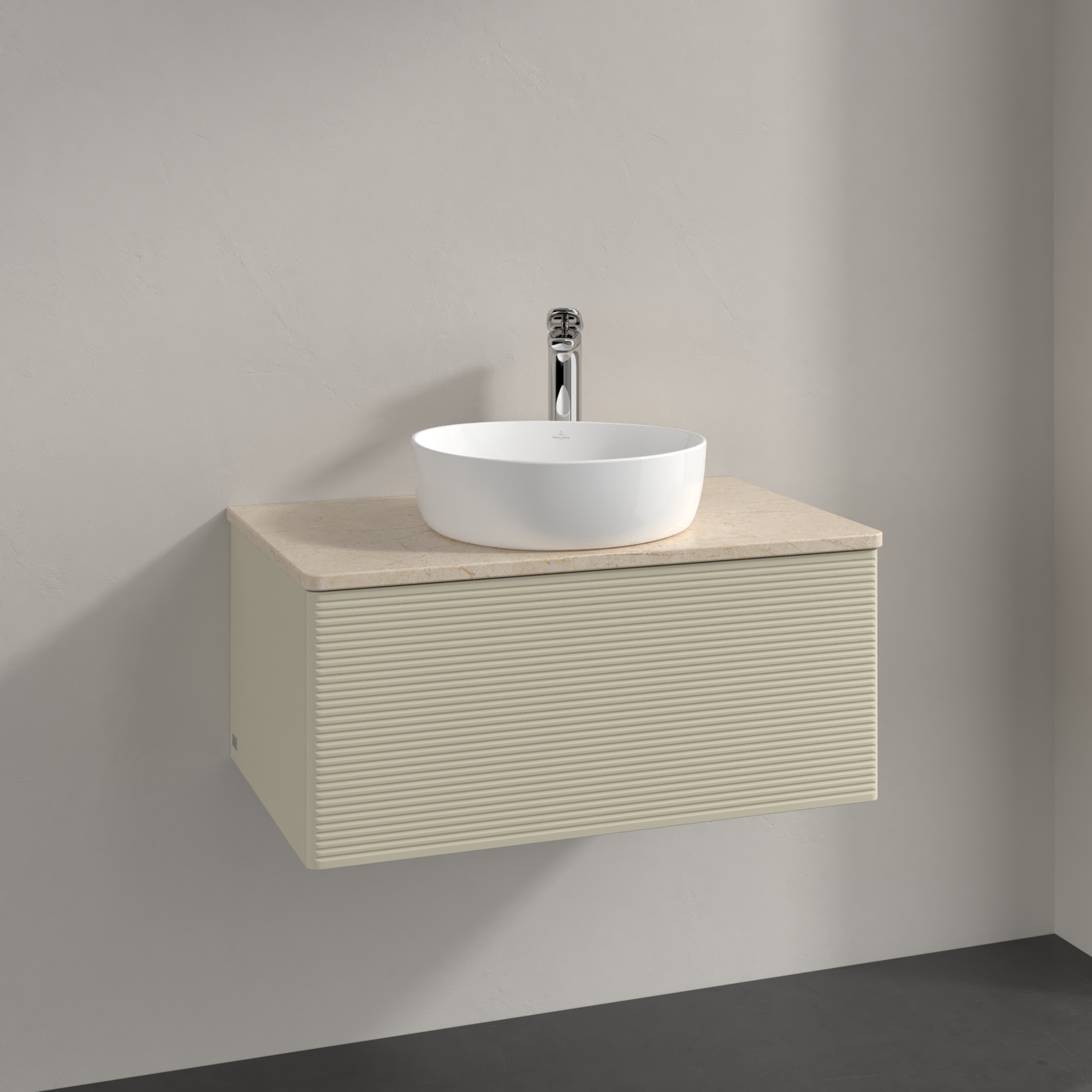 Antao Vanity unit, with lighting, 1 pull-out compartment, 800x360x500mm, Front with grain texture, Body: Silk Grey Matt Lacquer, Front: Silk Grey Matt Lacquer, Cover plate: Botticino