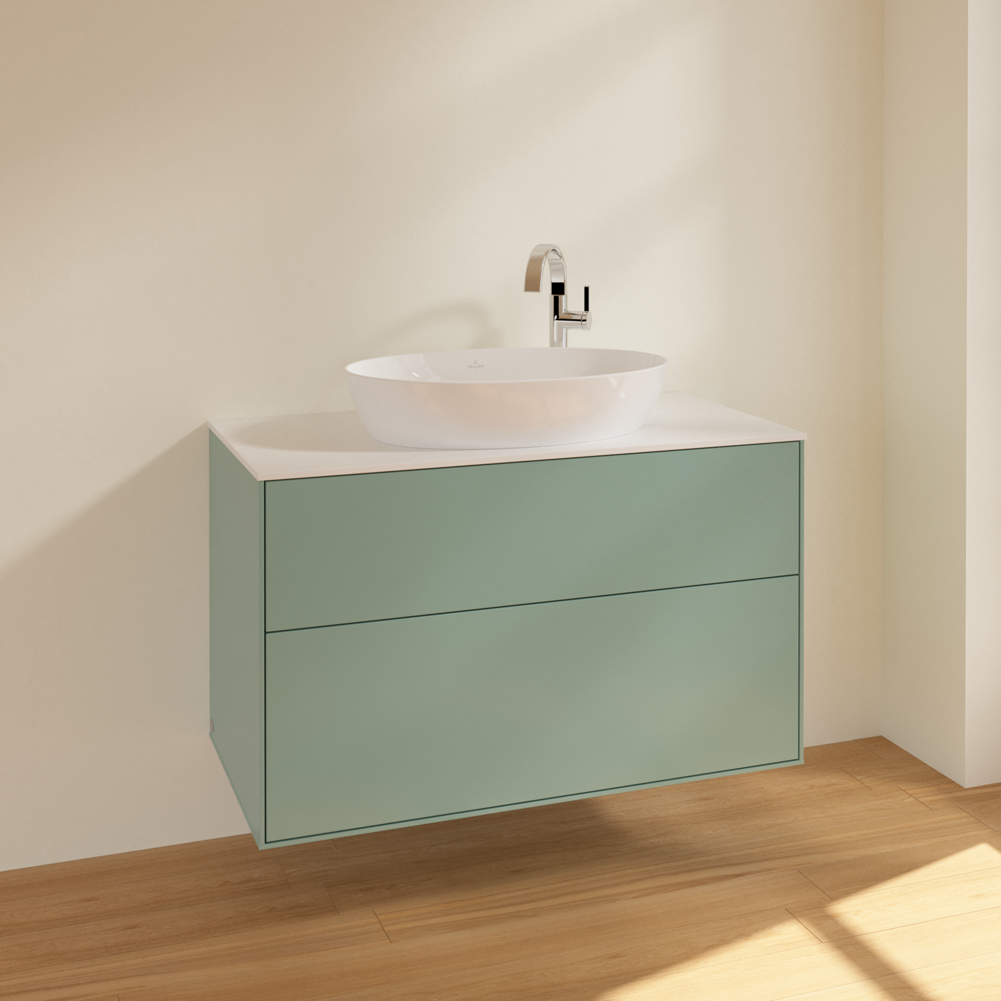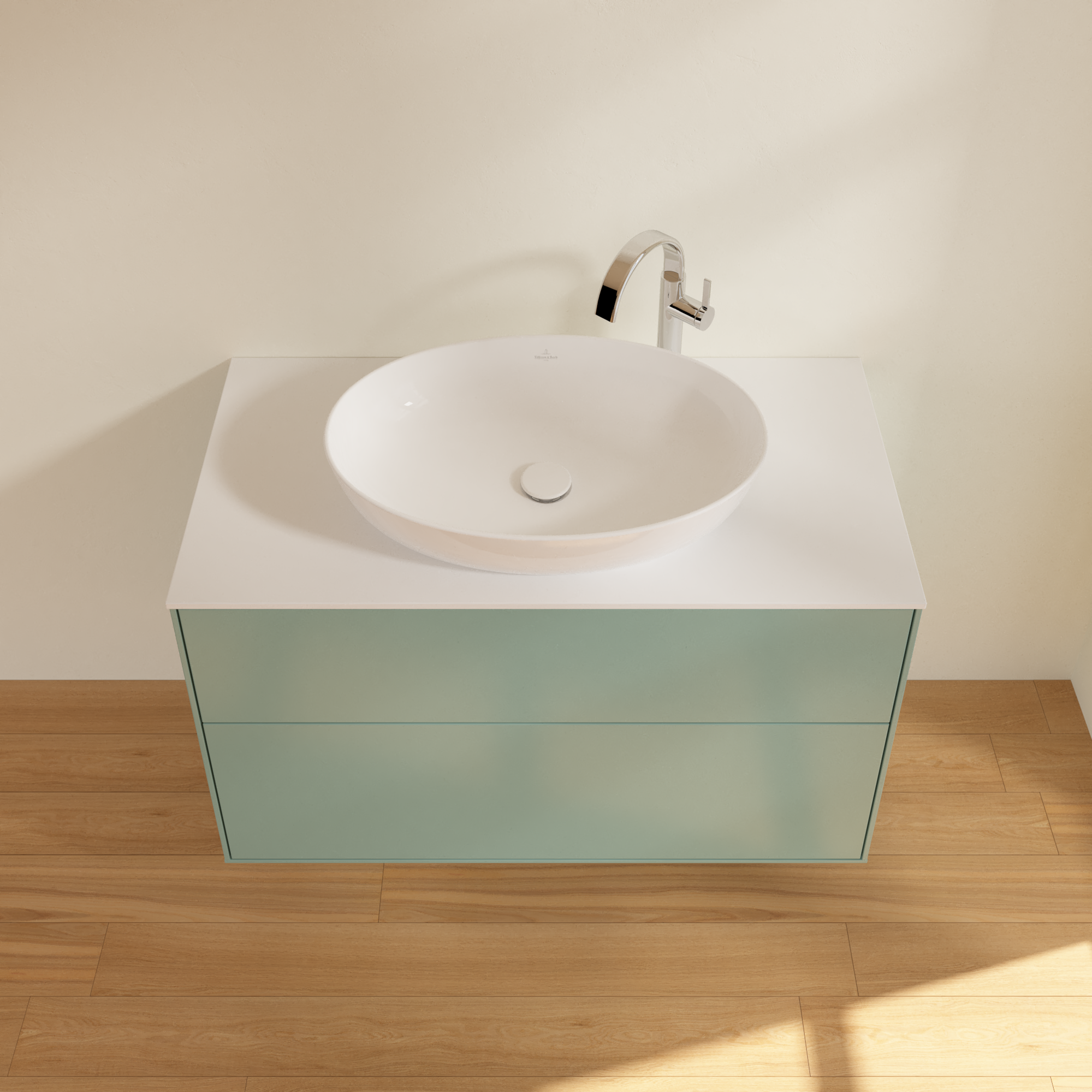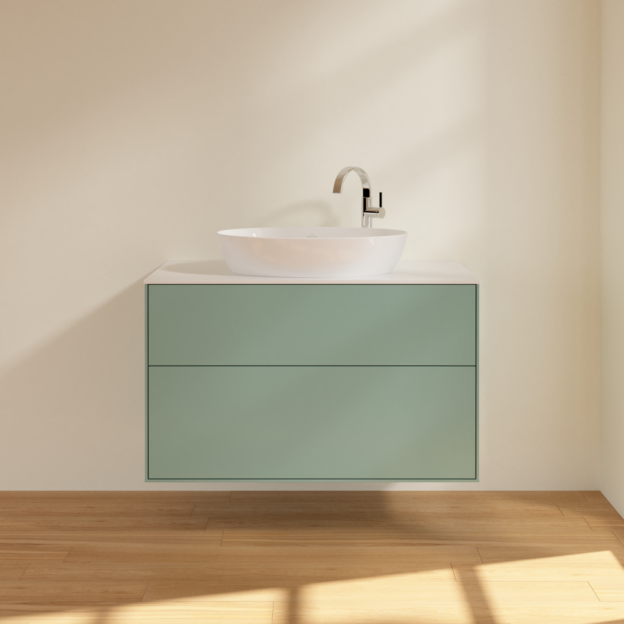 Finion Vanity unit, 2 pull-out compartments, 1000x603x501mm, Body: Olive Matt Lacquer, Front: Olive Matt Lacquer, Cover plate: Glass White Matt