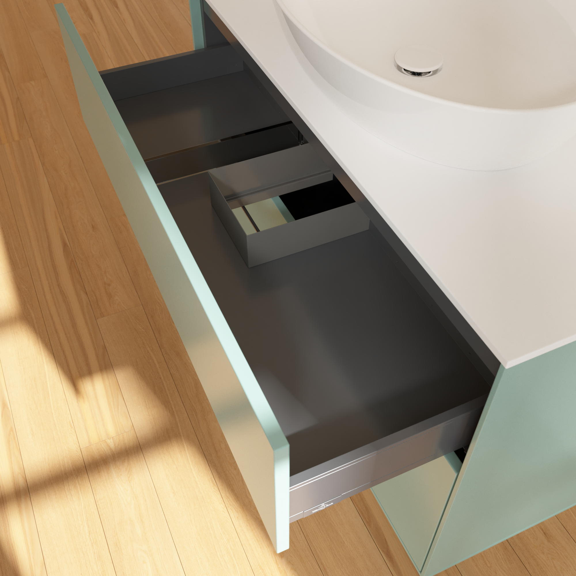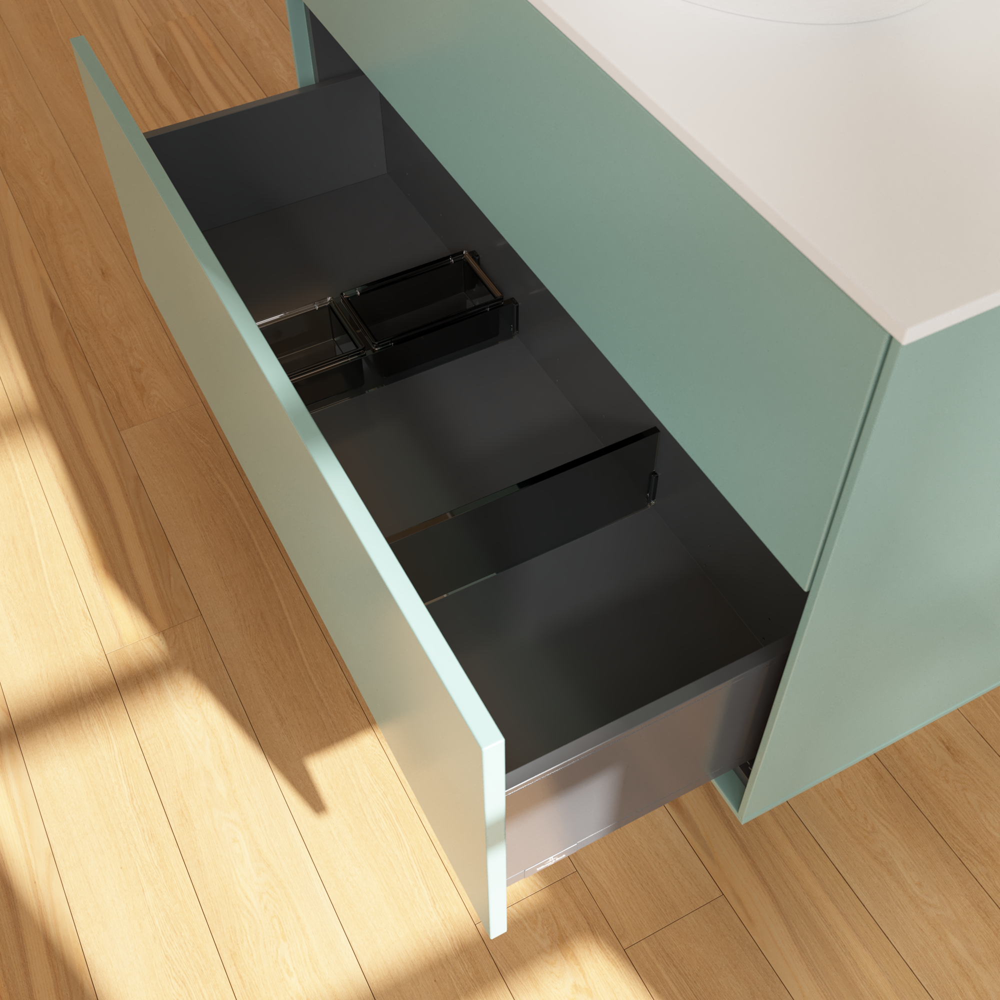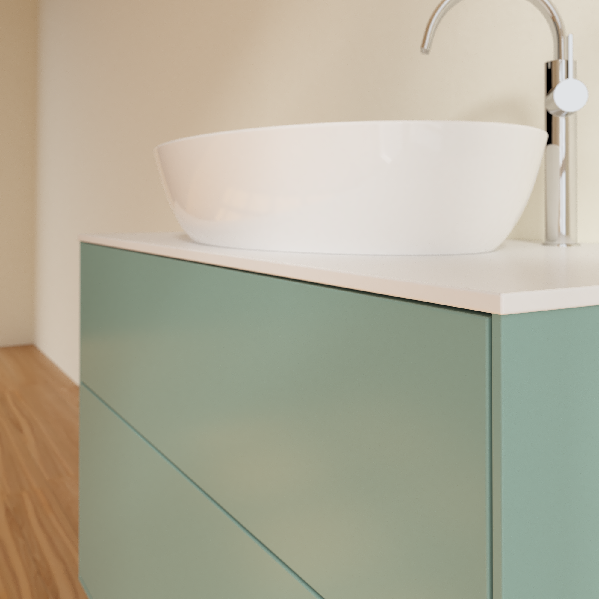 Finion Vanity unit, 2 pull-out compartments, 1000x603x501mm, Body: Olive Matt Lacquer, Front: Olive Matt Lacquer, Cover plate: Glass White Matt