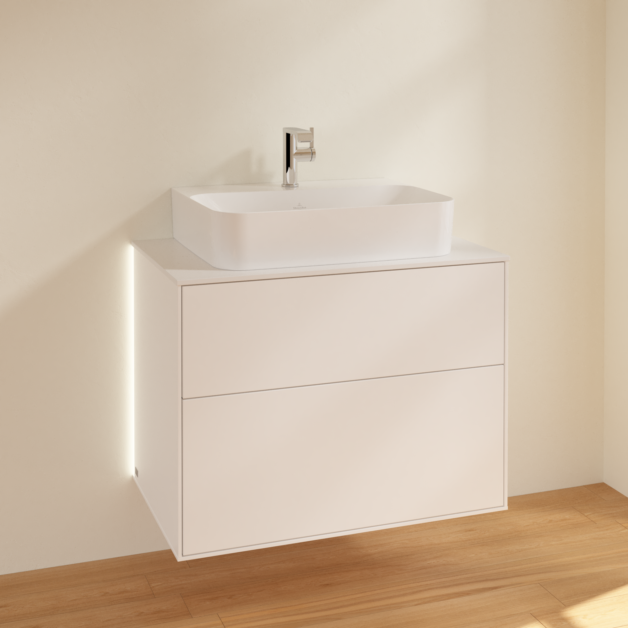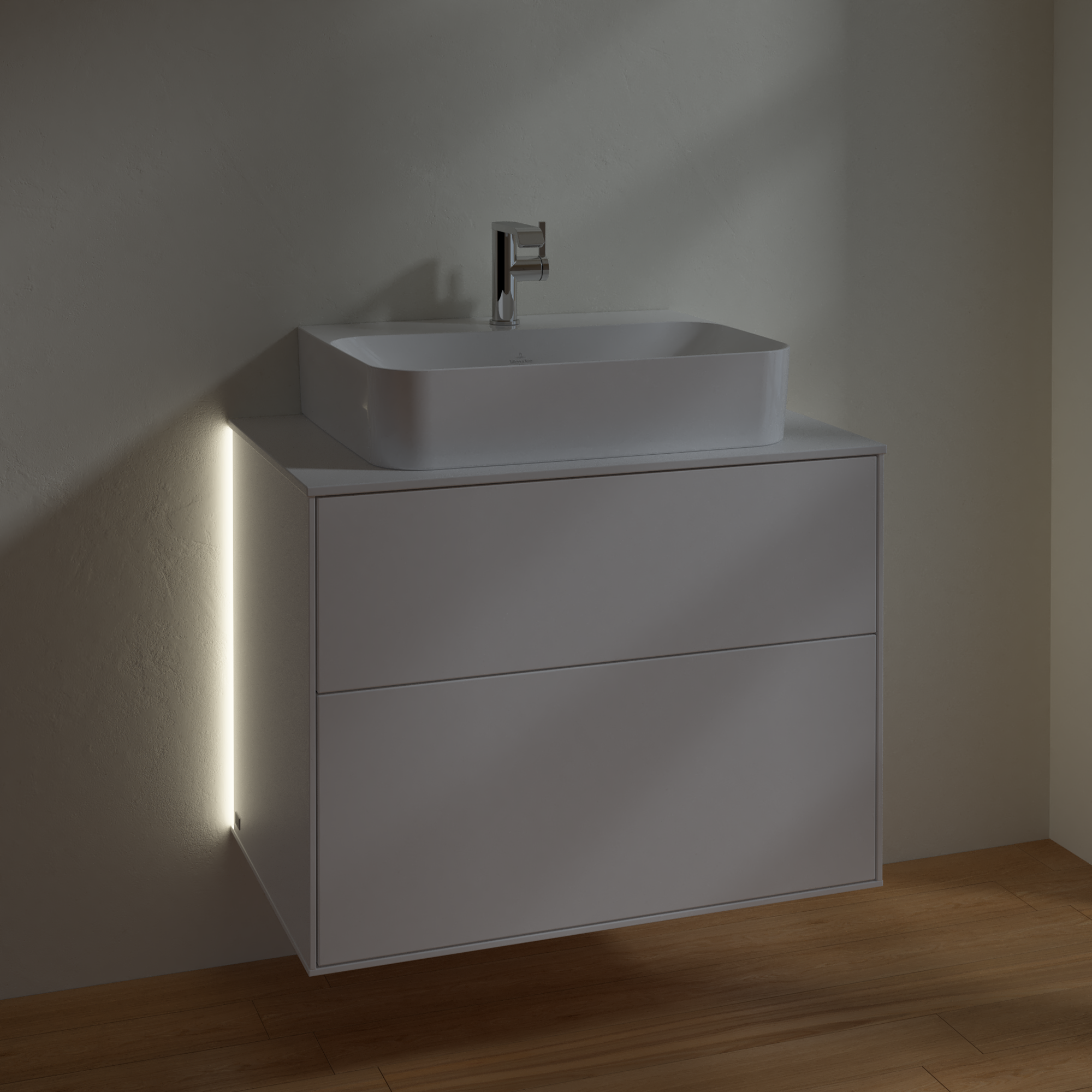 Finion Vanity unit, with lighting, 2 pull-out compartments, 800x603x501mm, Body: White Matt Lacquer, Front: White Matt Lacquer, Cover plate: Glass White Matt