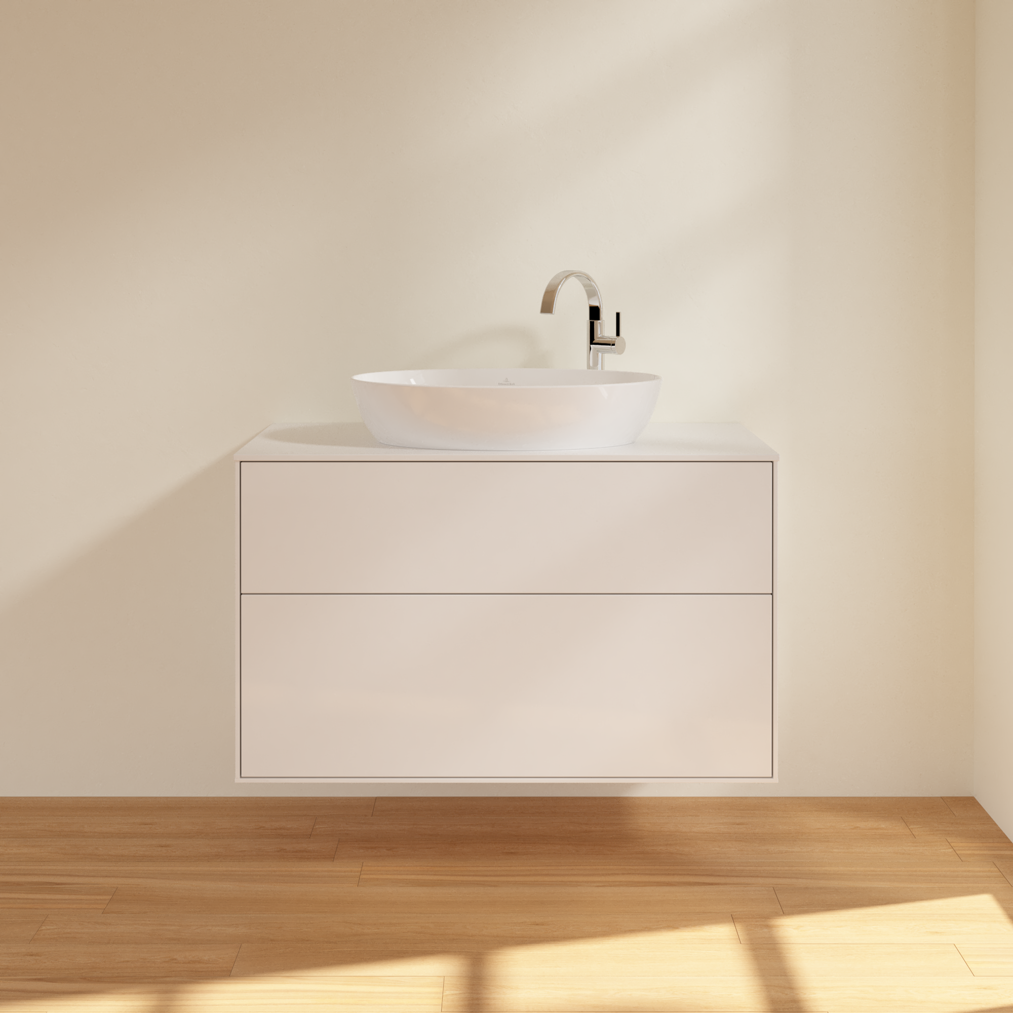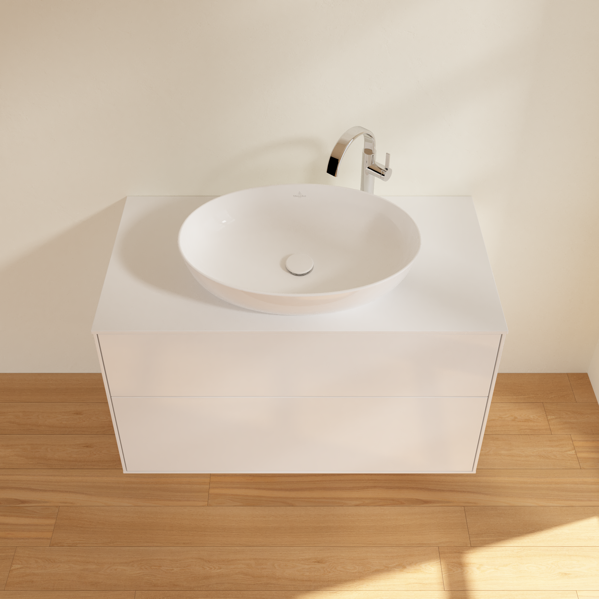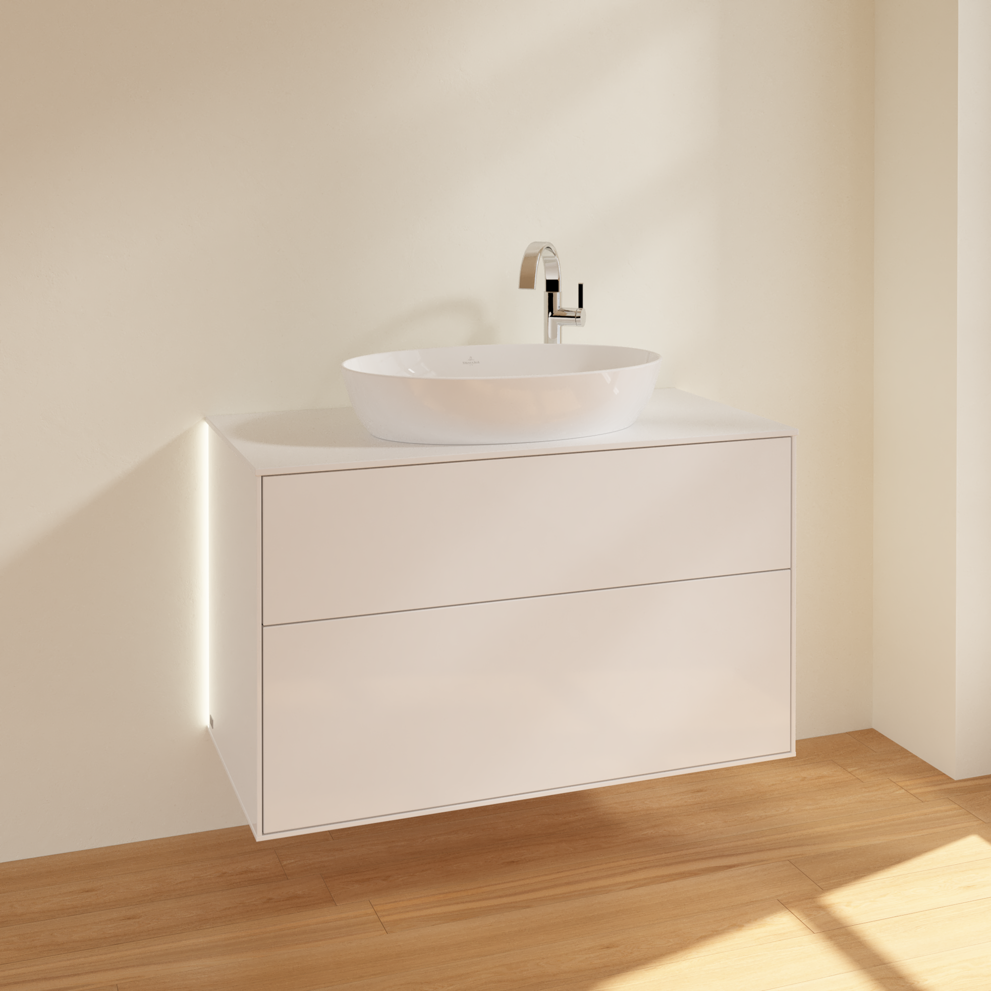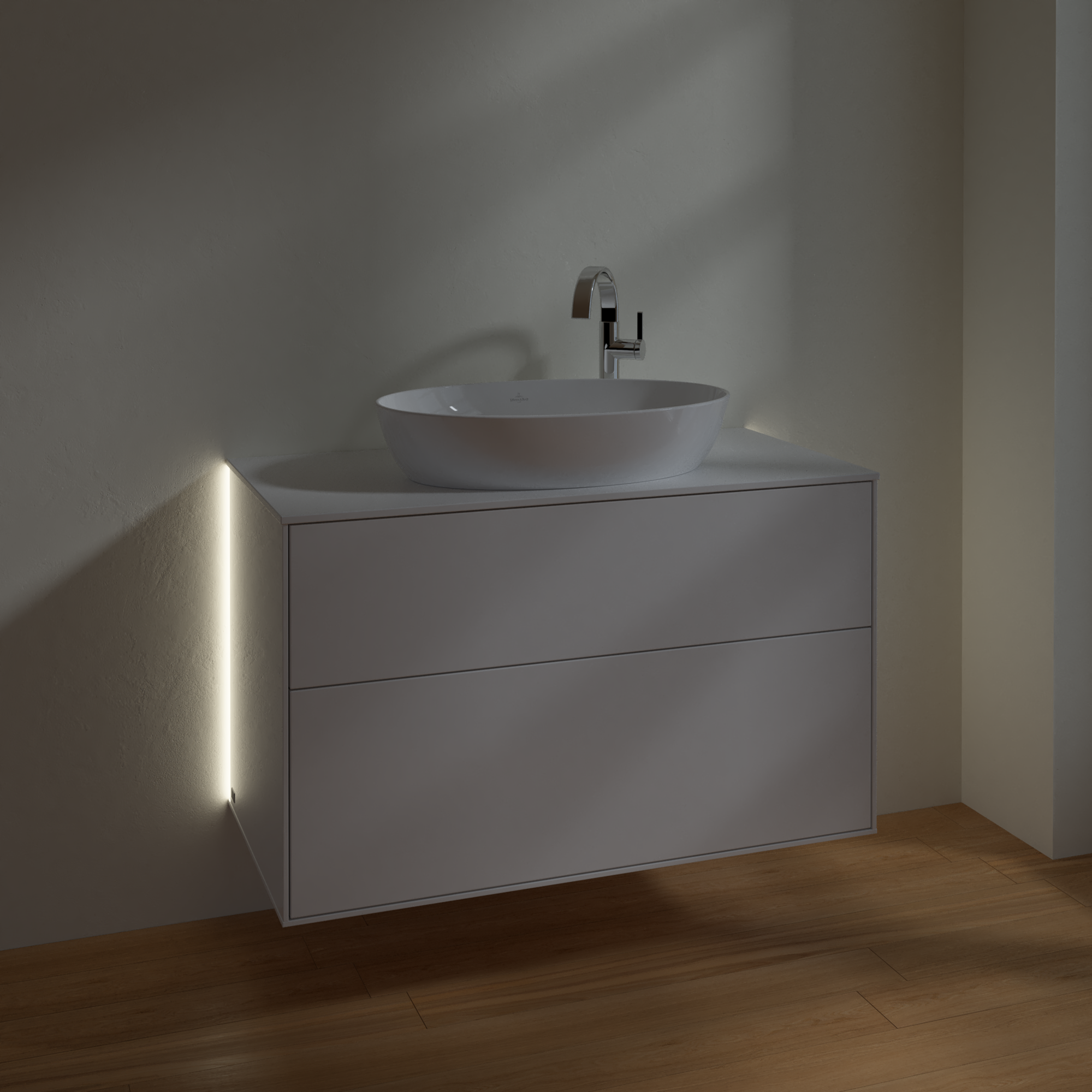 Finion Vanity unit, with lighting, 2 pull-out compartments, 1000x603x501mm, Body: Glossy White Lacquer, Front: Glossy White Lacquer, Cover plate: Glass White Matt