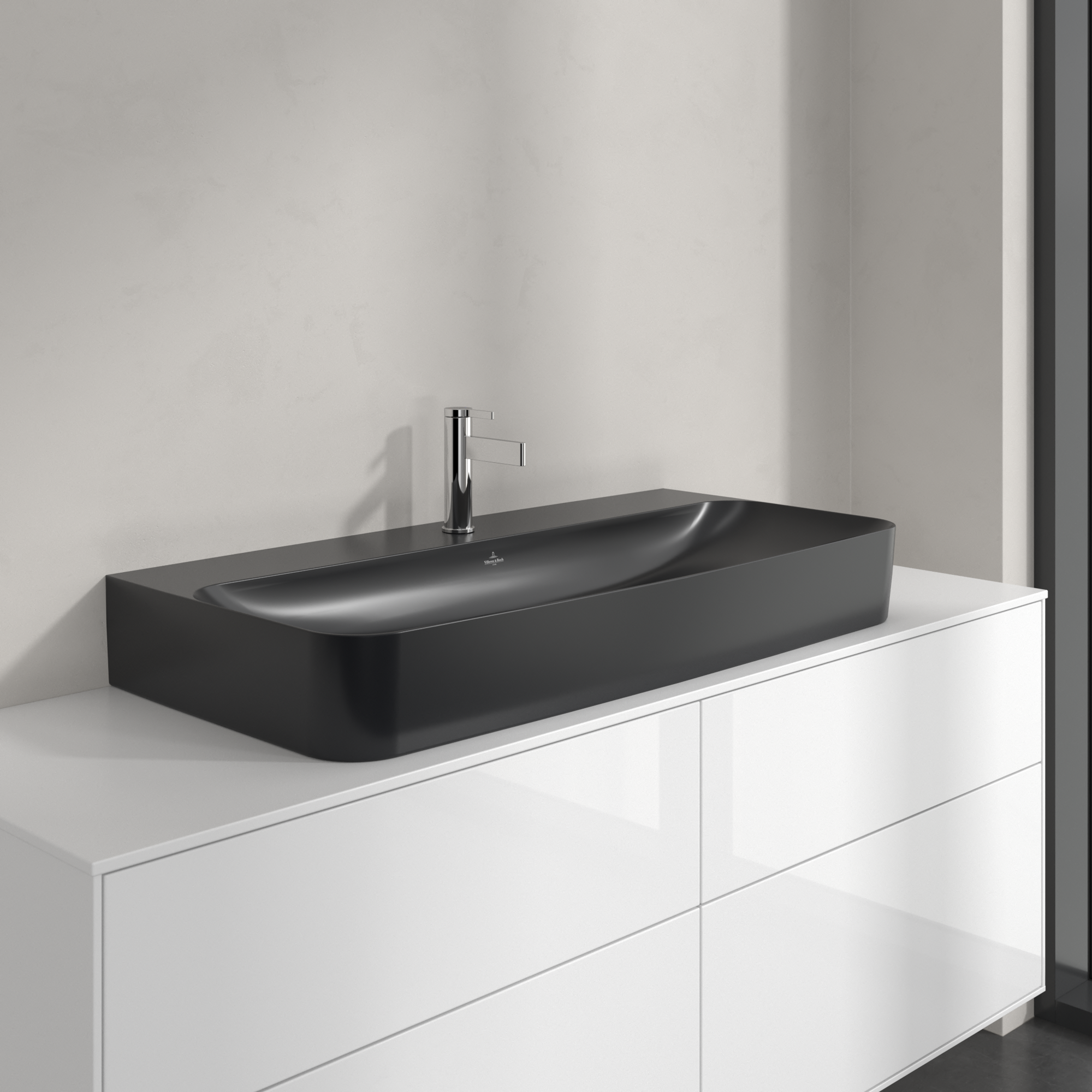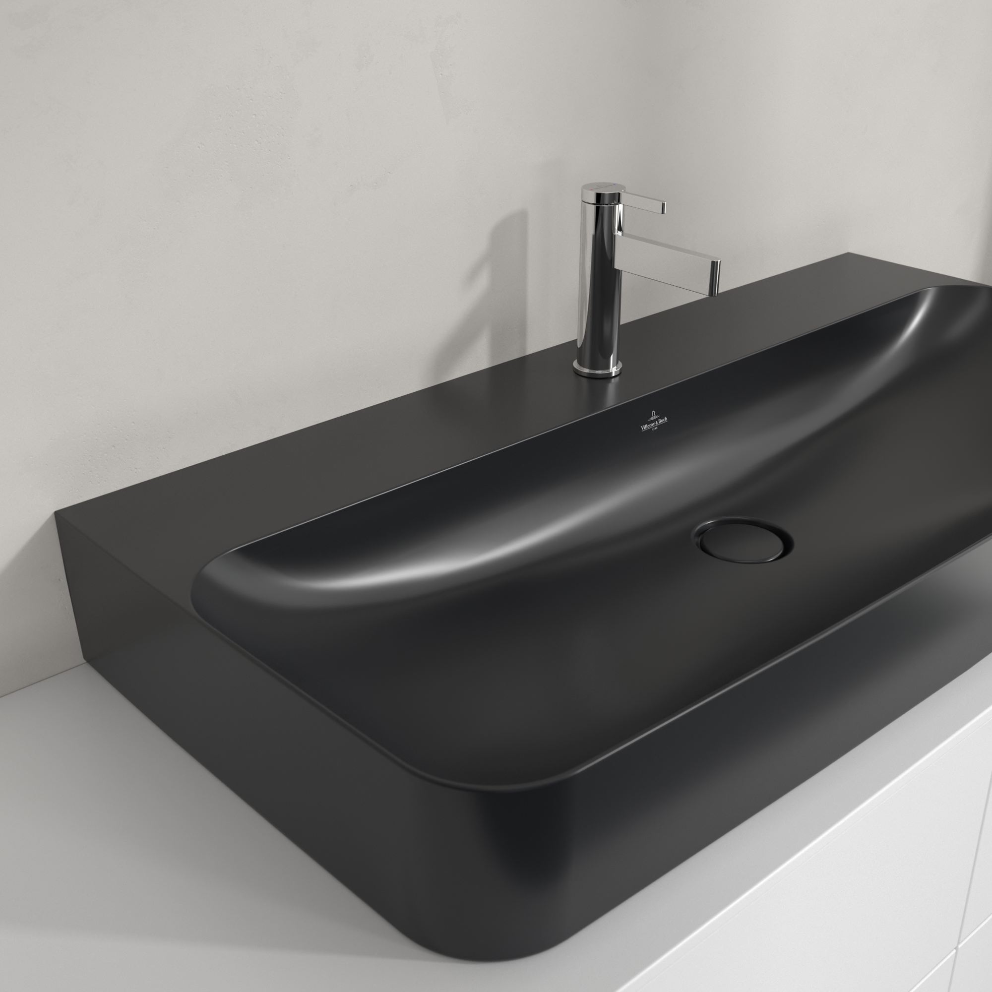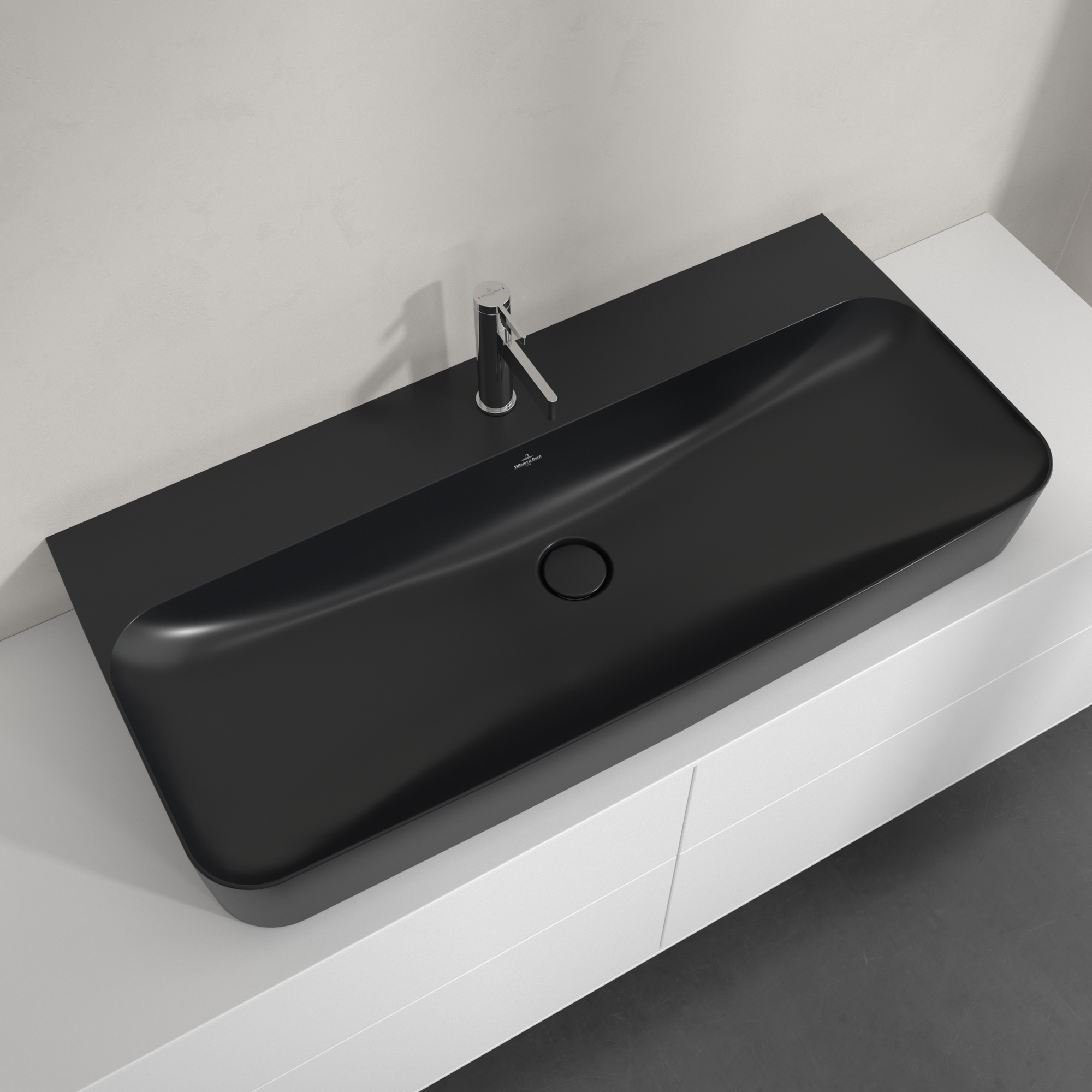 Finion Washbasin, 1000x470x165mm, with concealed overflow, Pure Black CeramicPlus