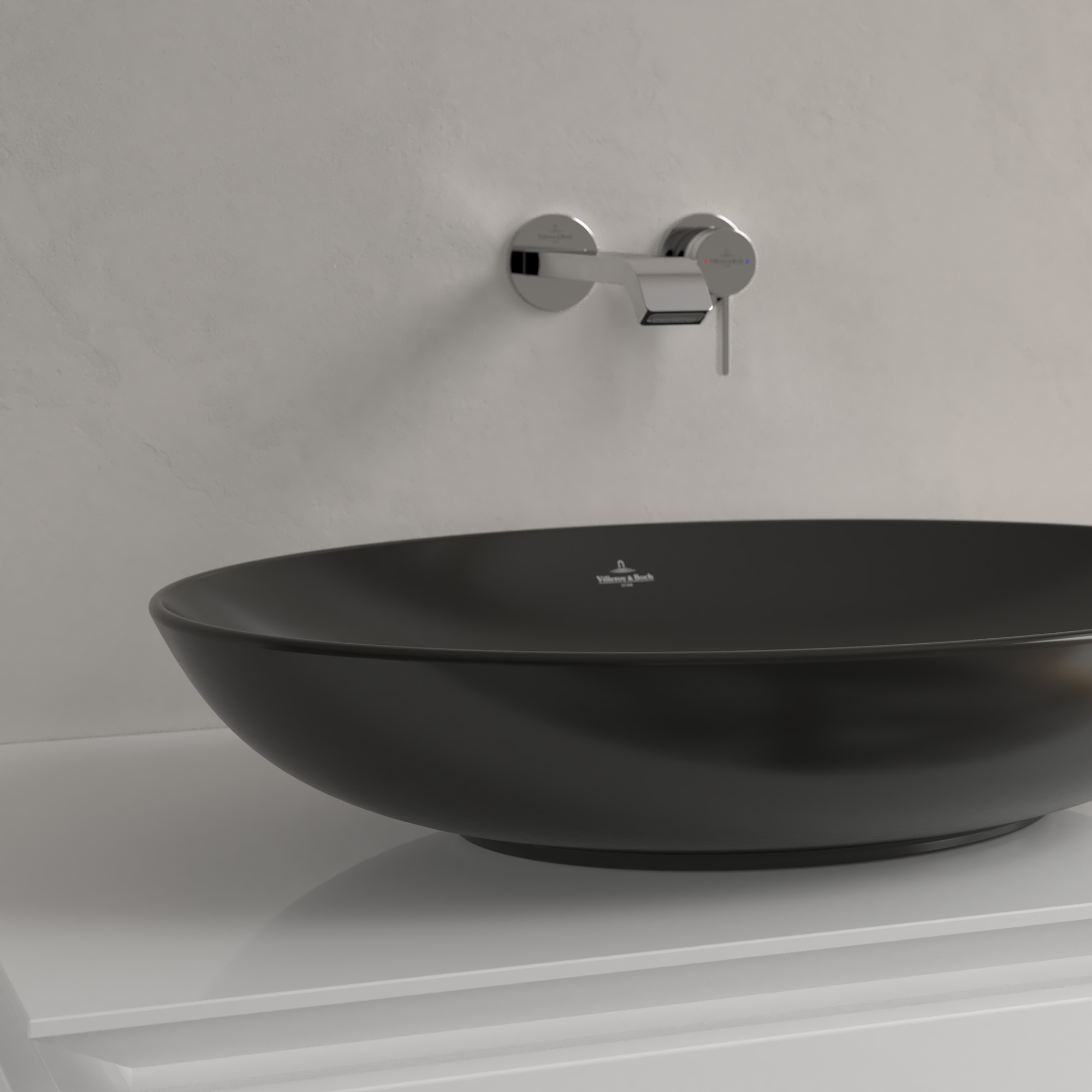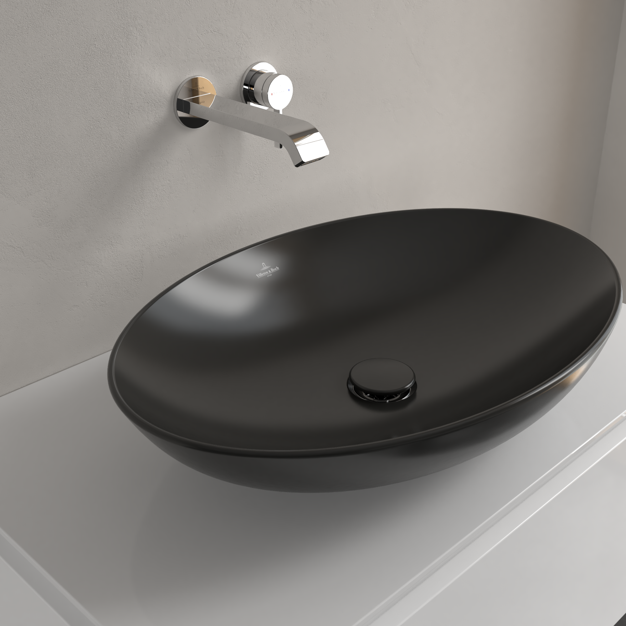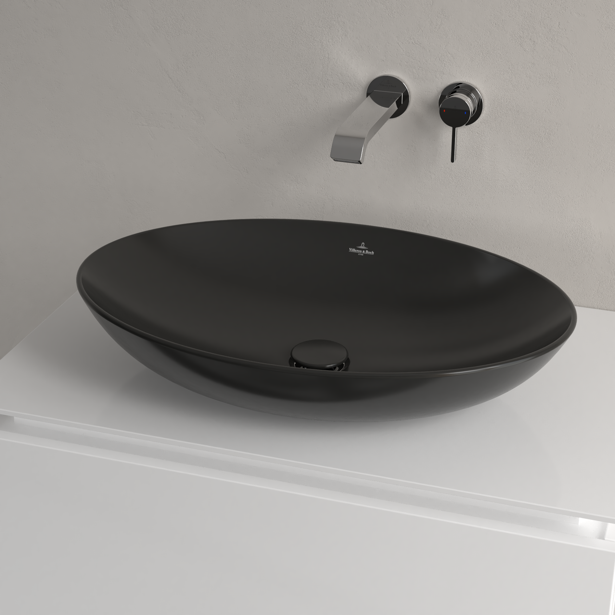 Loop & Friends Surface-mounted washbasin, 620x420x150mm, without overflow, Pure Black CeramicPlus