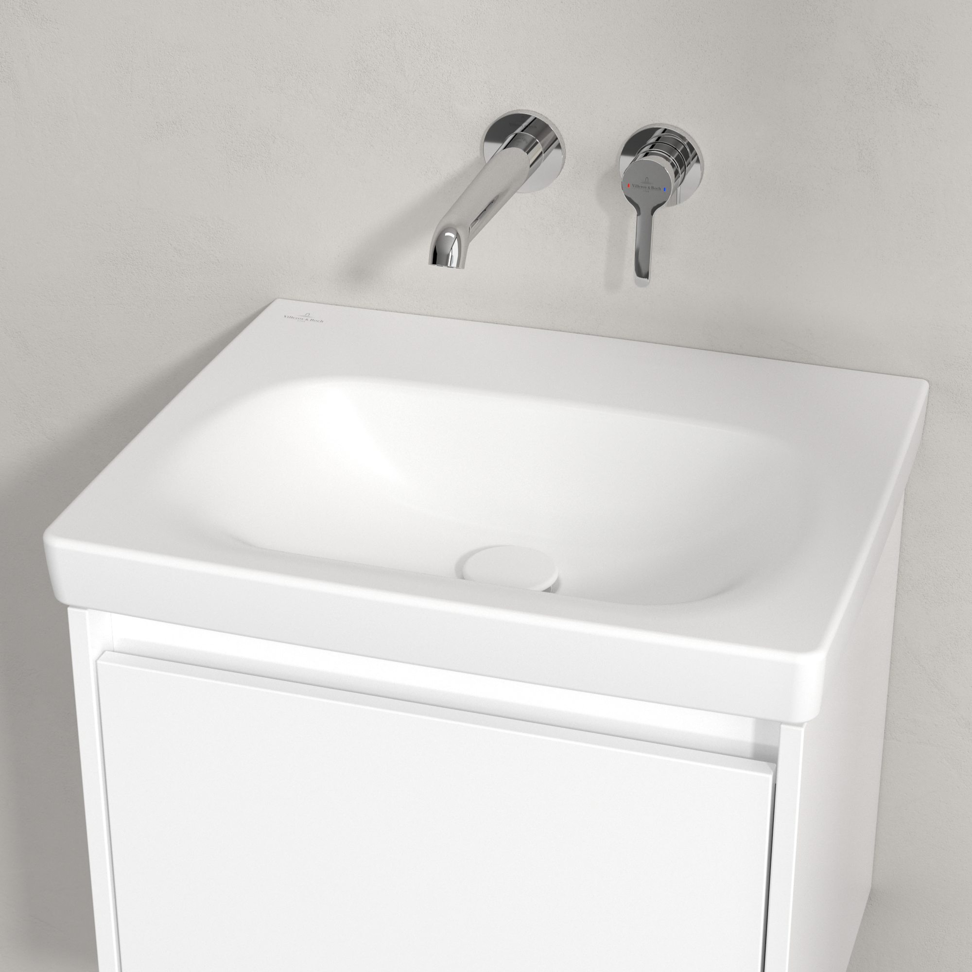Skyla Washbasin, 445x550x150mm, without overflow, Stone White CeramicPlus