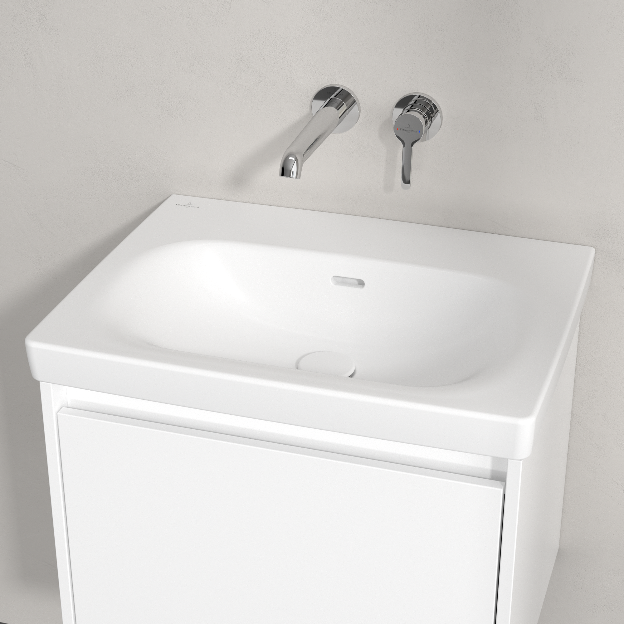 Skyla Washbasin, 600x460x163mm, with overflow, Stone White CeramicPlus