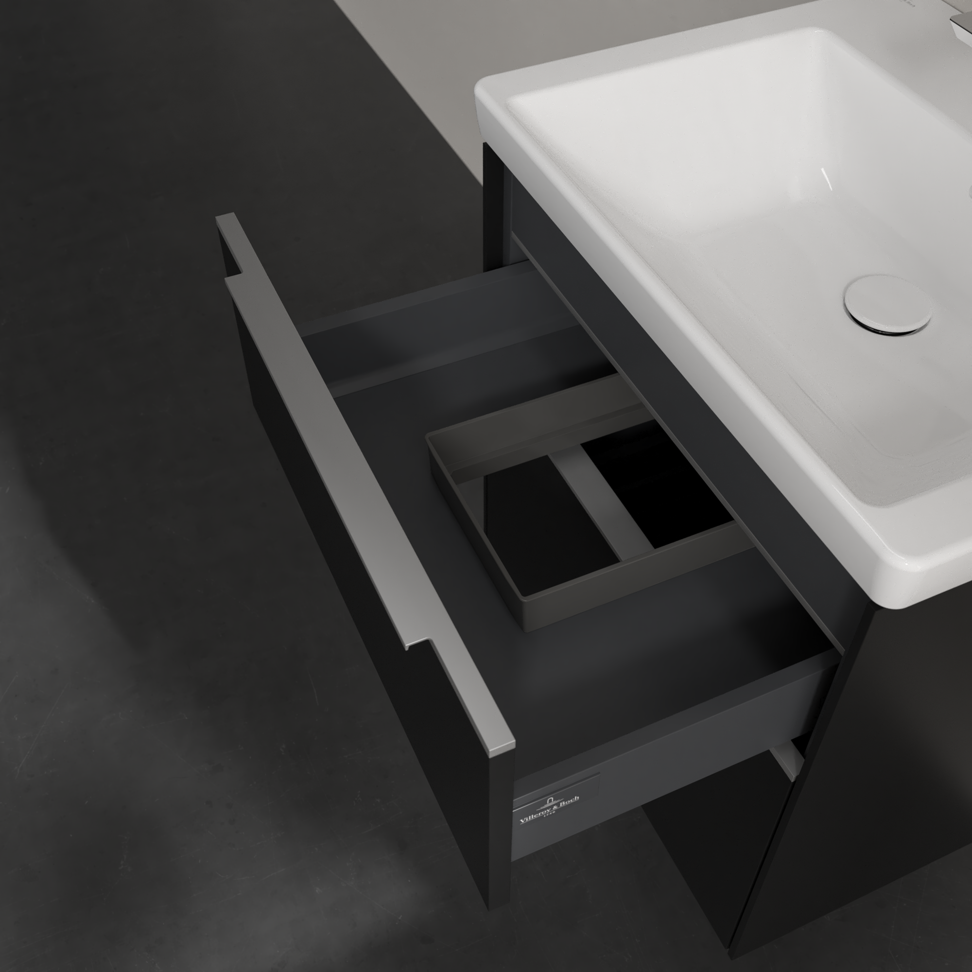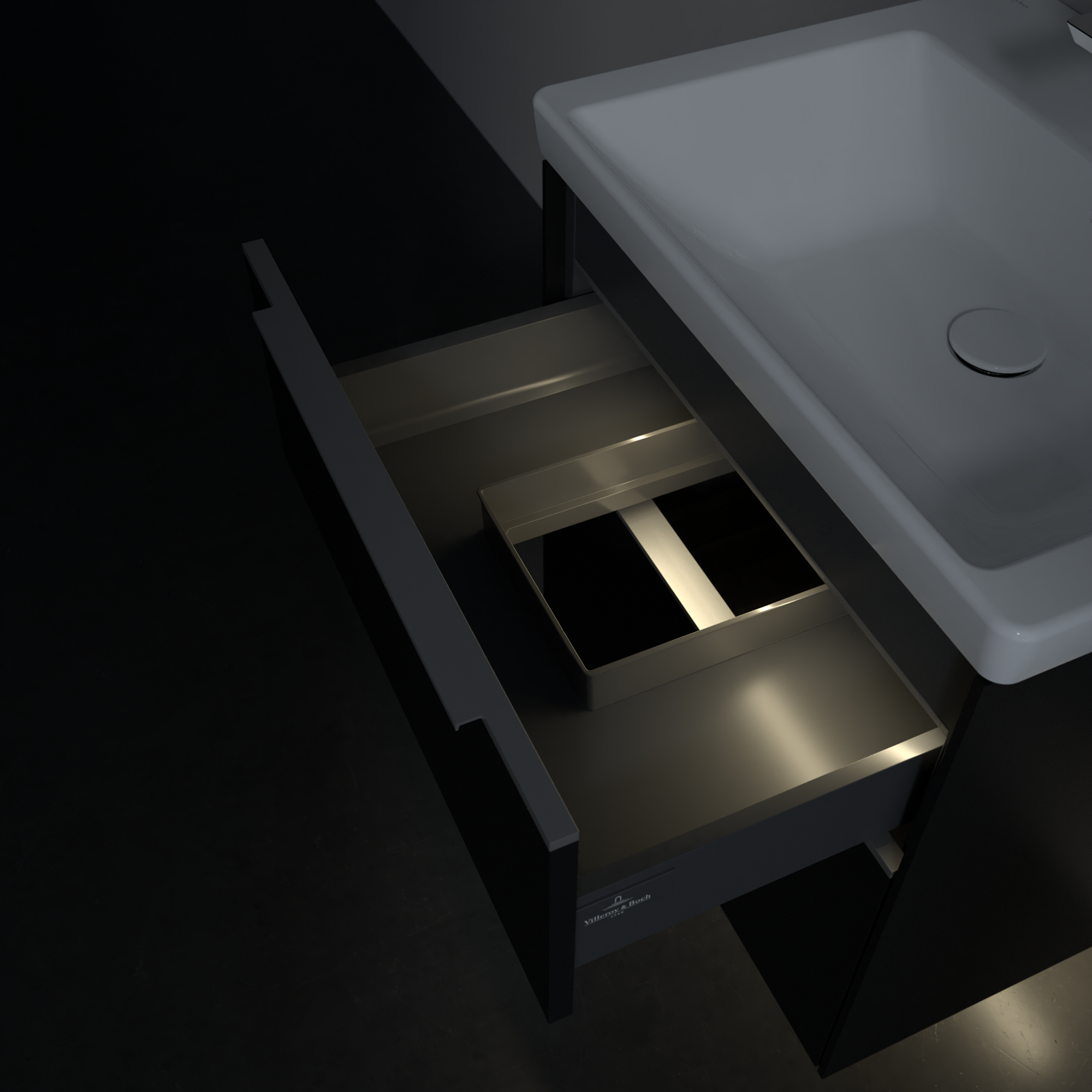 Subway 3.0 Vanity unit, with lighting, 2 pull-out compartments, 572x576x462mm, Body: Volcano Black, Front: Volcano Black