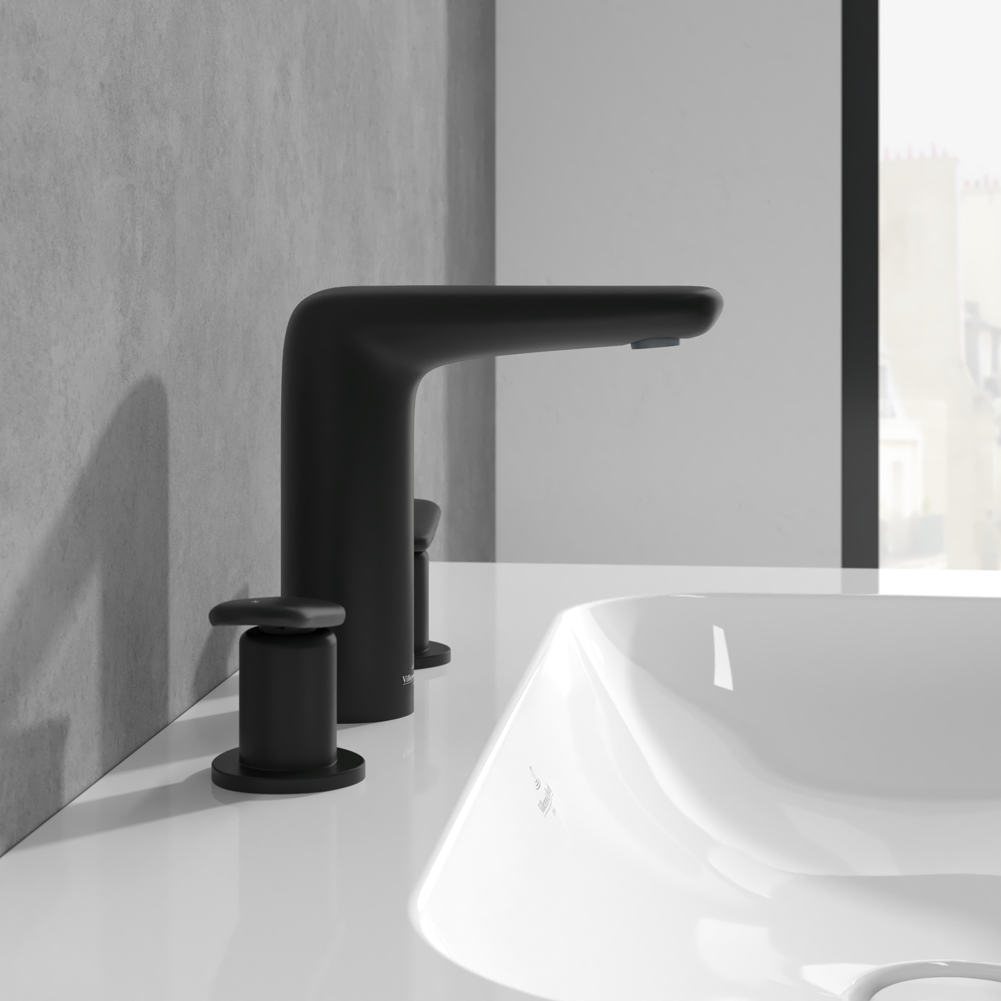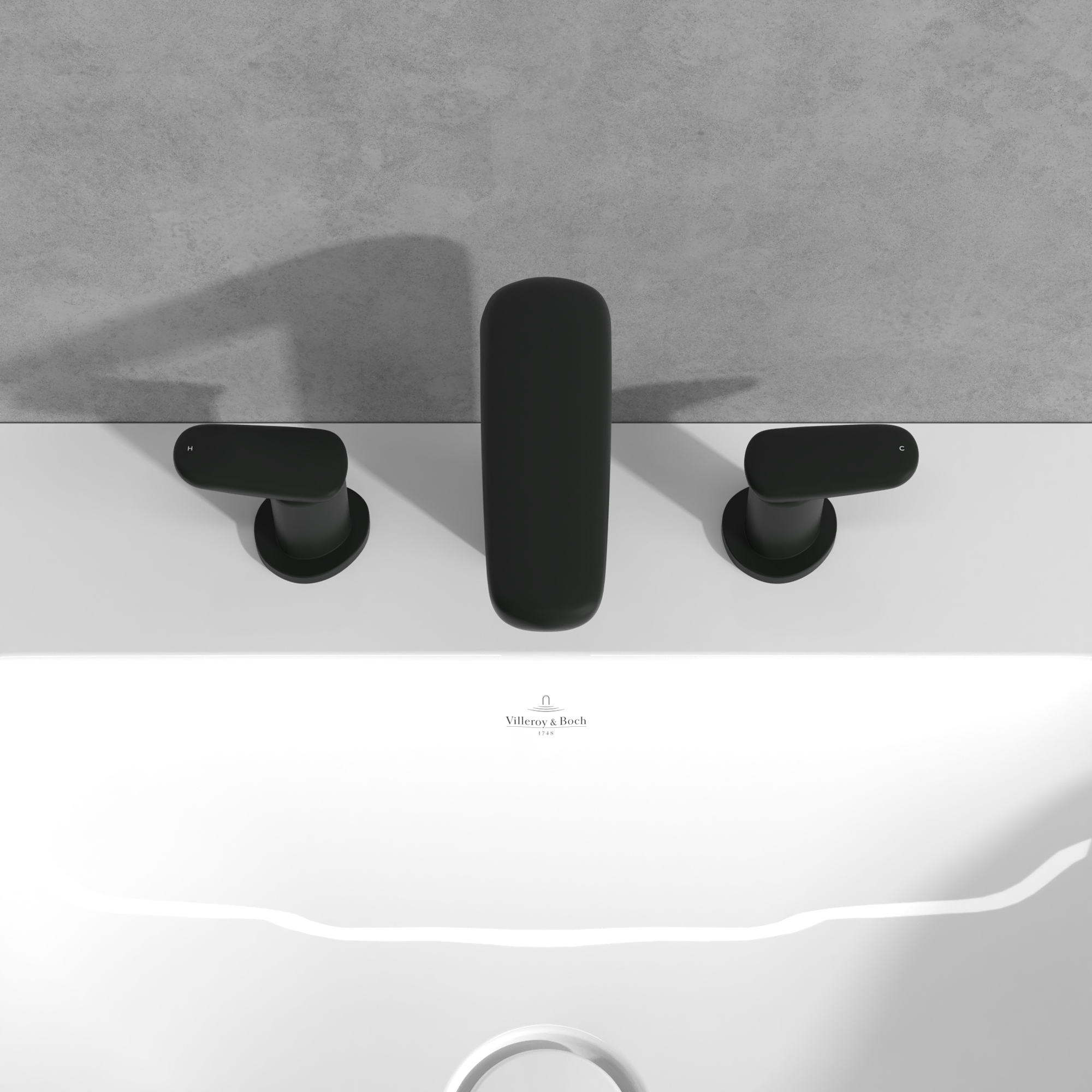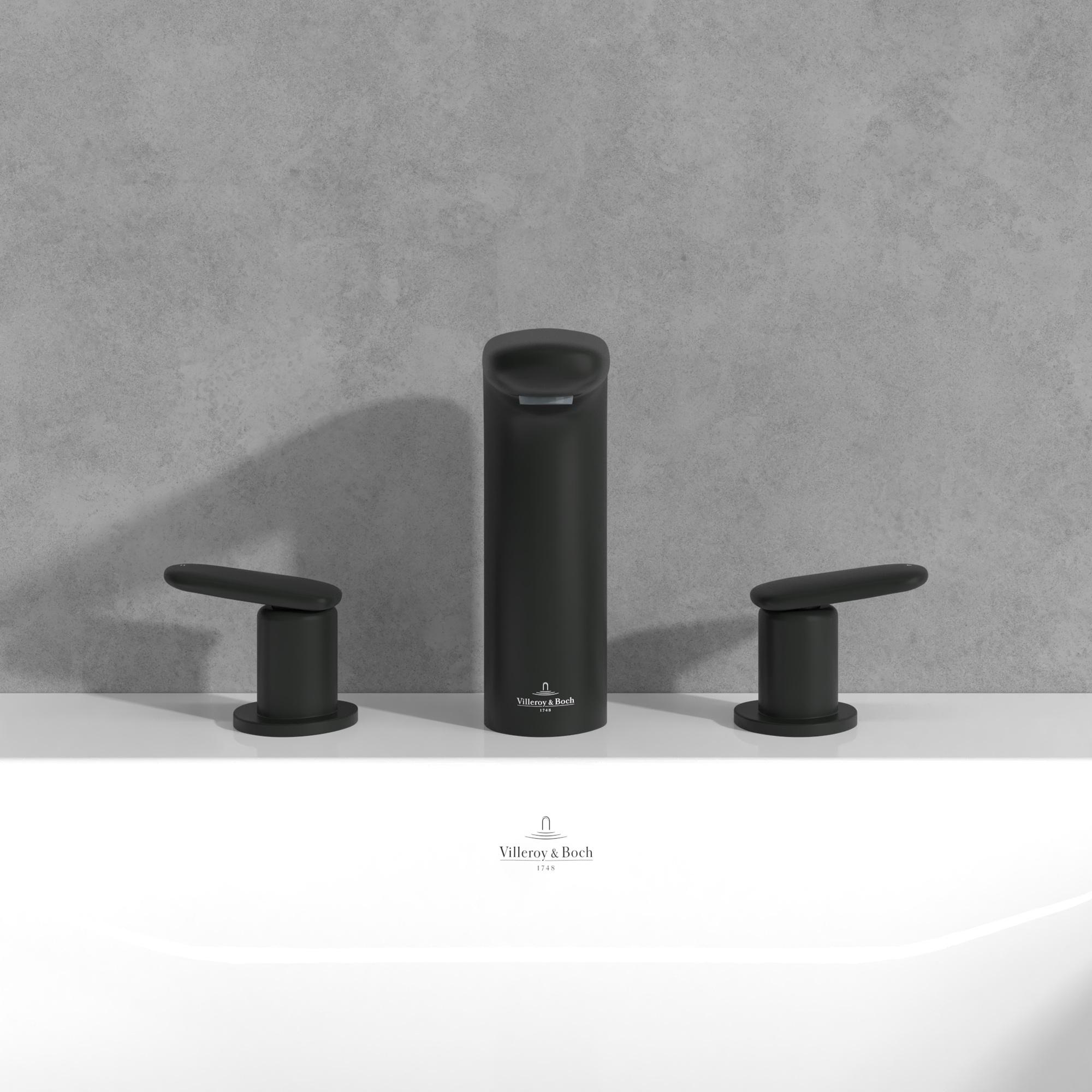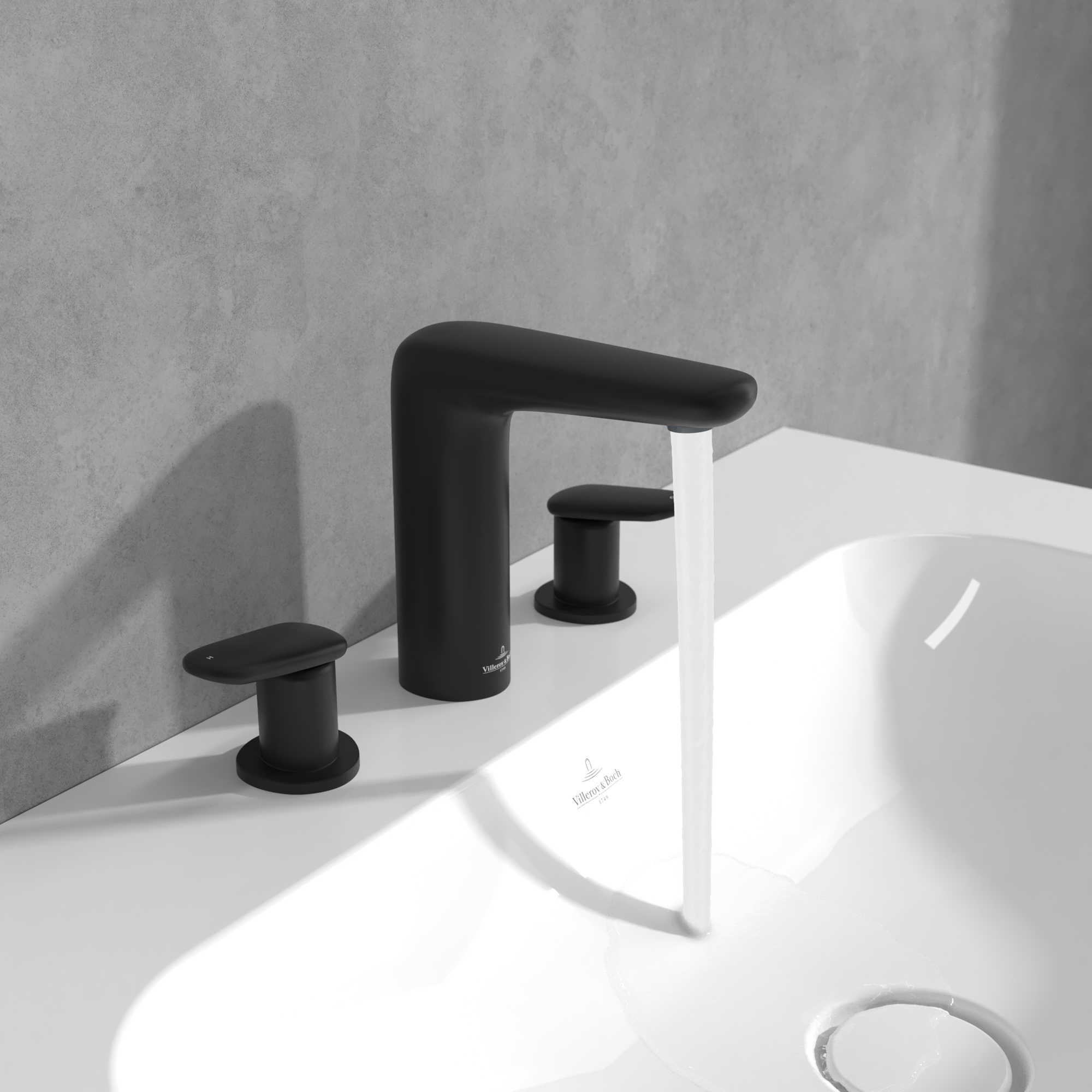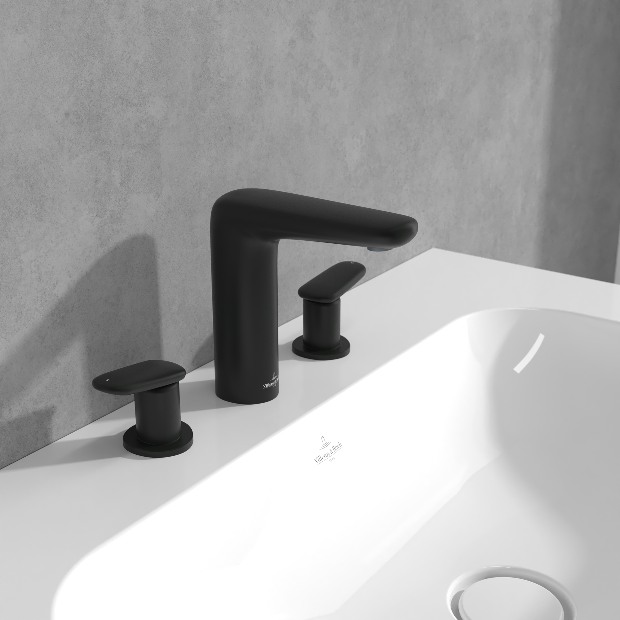 Antao Three-hole basin mixer, With push-open waste, Matt Black
