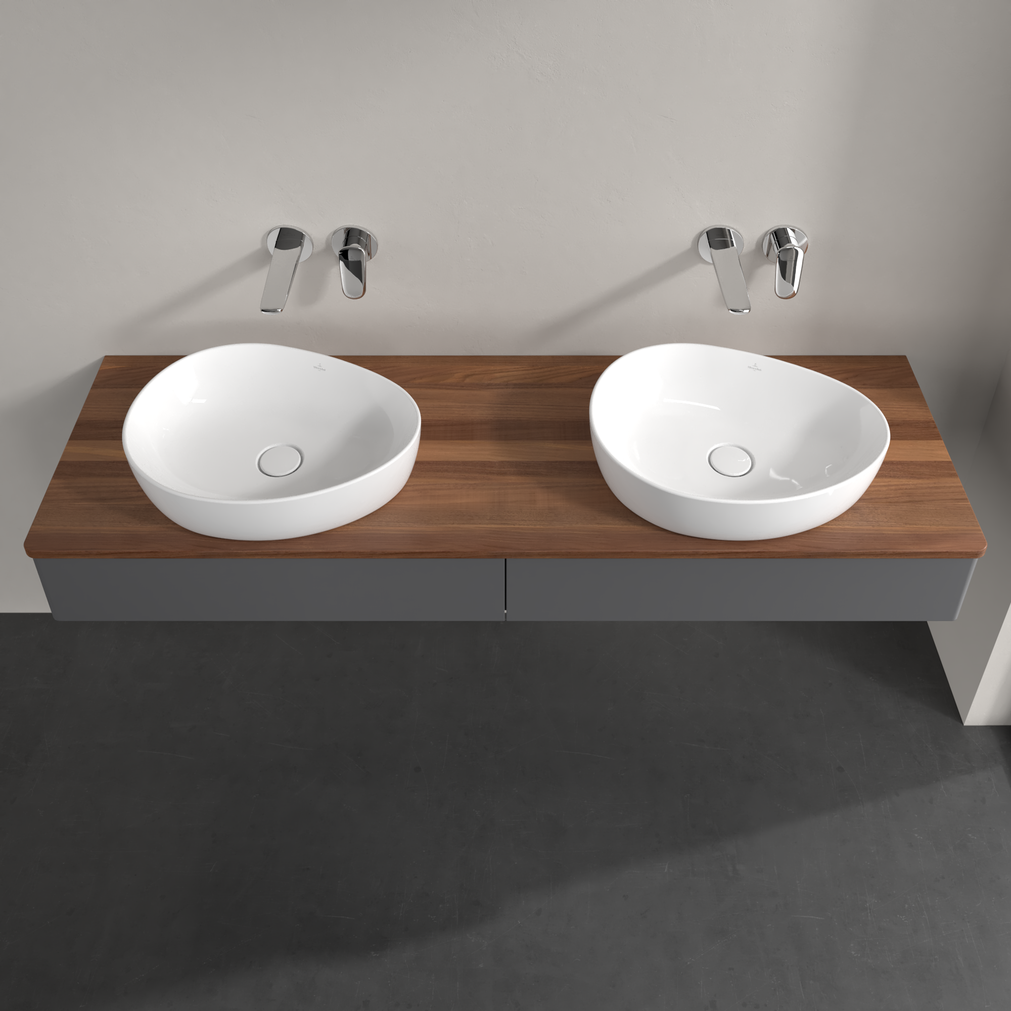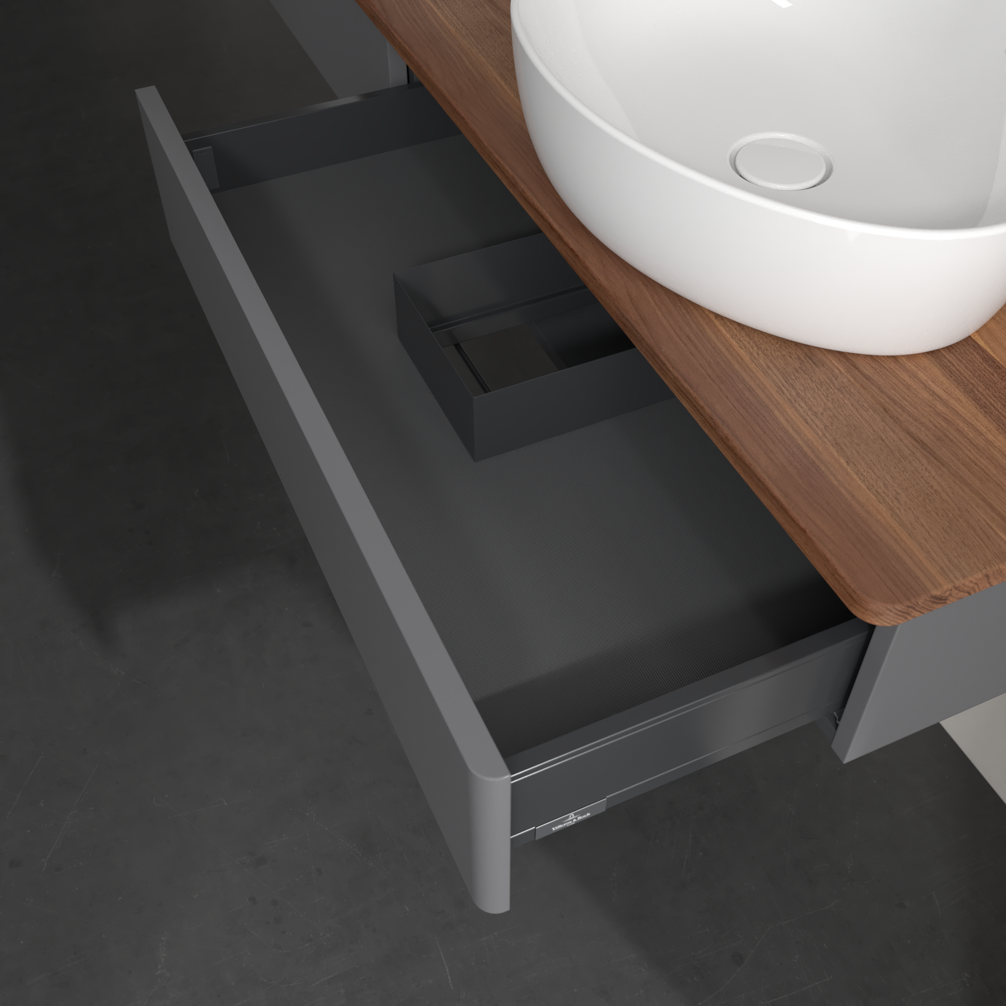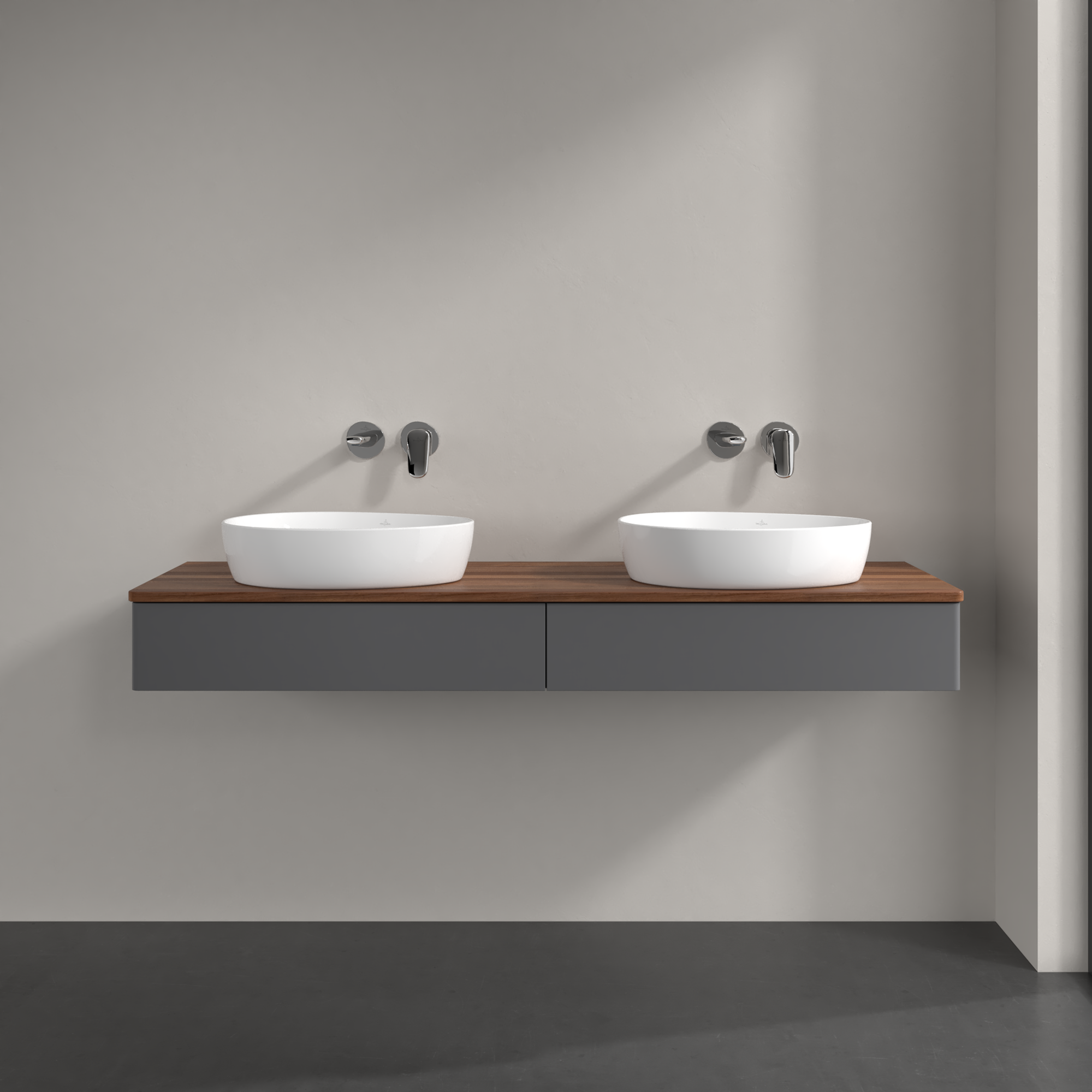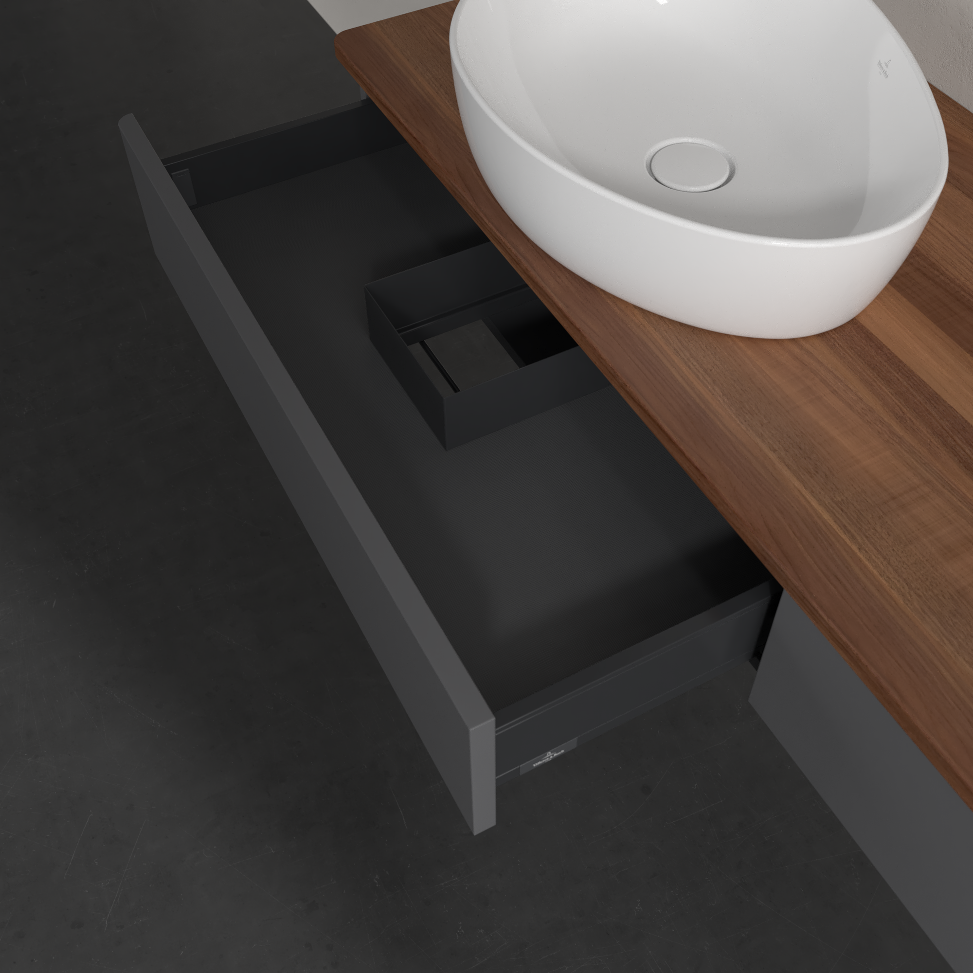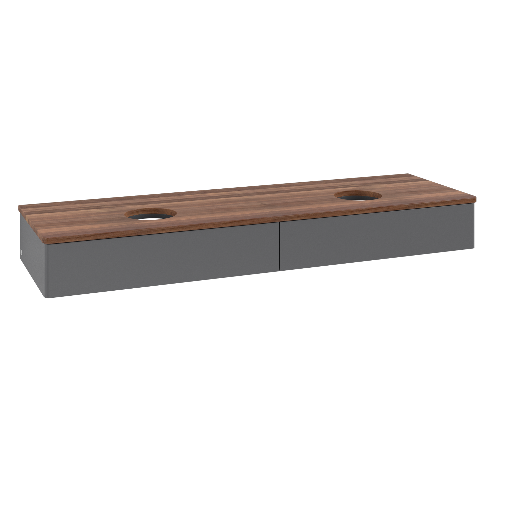 Antao Vanity unit, 2 pull-out compartments, 1600x190x500mm, Front without structure, Body: Anthracite Matt Lacquer, Front: Anthracite Matt Lacquer, Cover plate: Warm Walnut