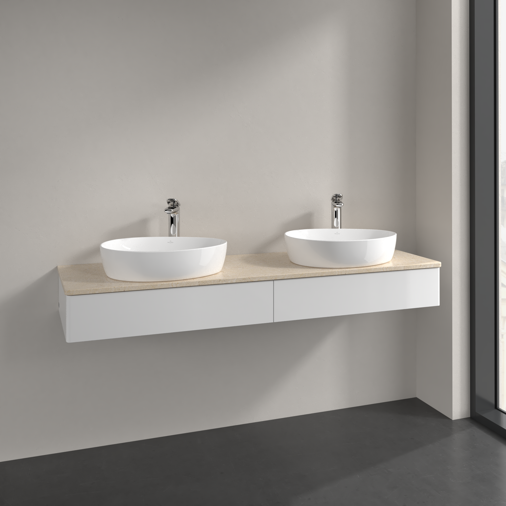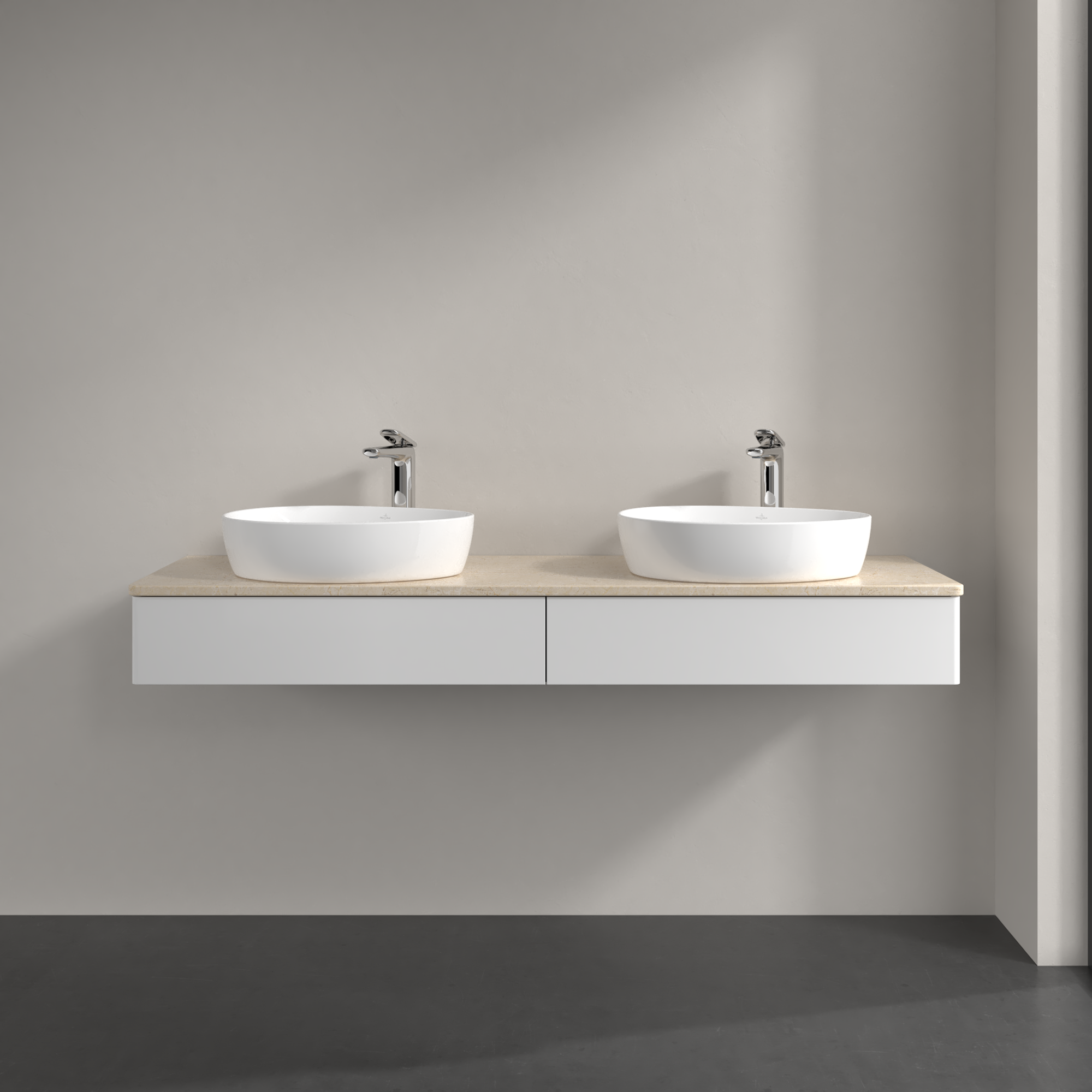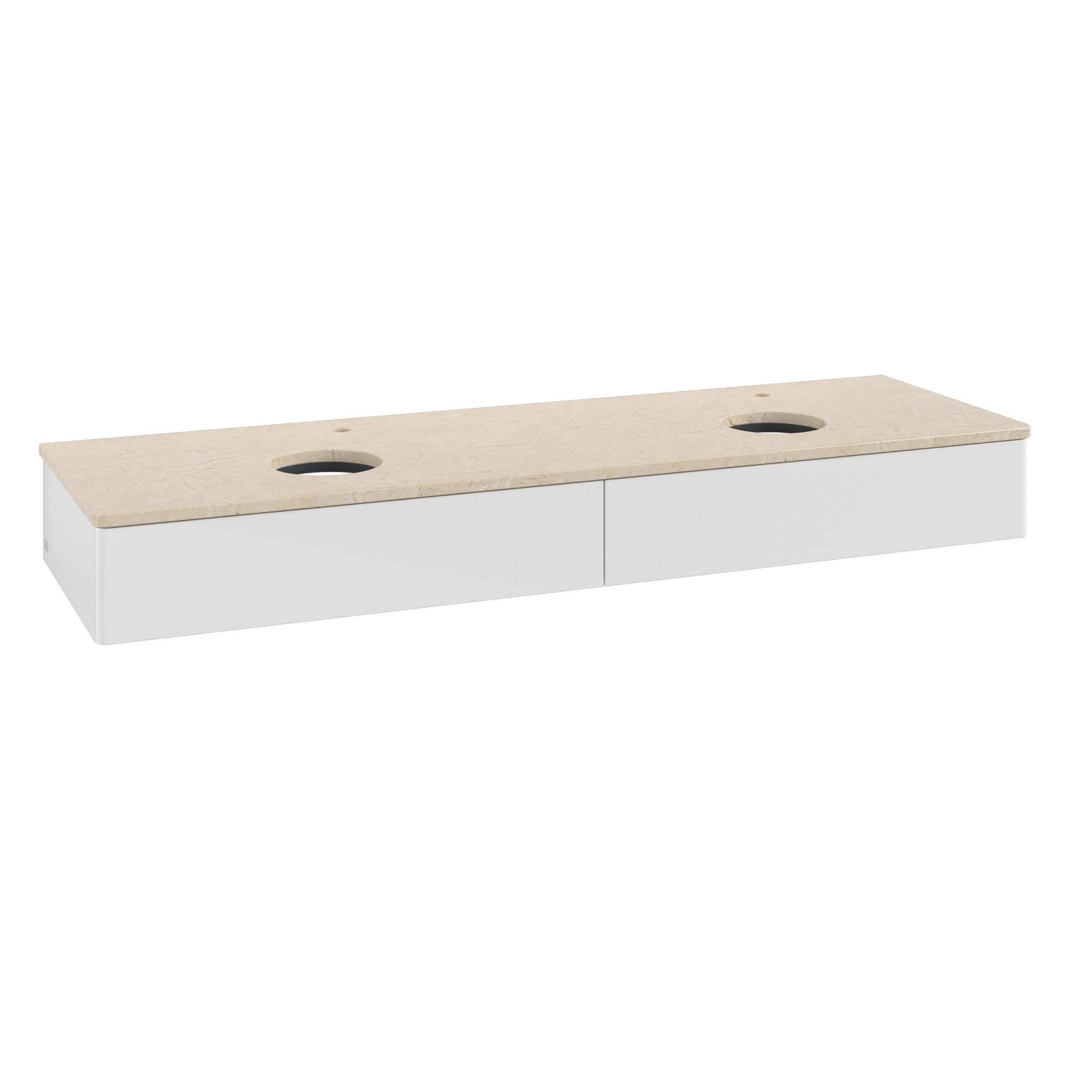 Antao Vanity unit, with lighting, 2 pull-out compartments, 1600x190x500mm, Front without structure, Body: Glossy White Lacquer, Front: Glossy White Lacquer, Cover plate: Botticino