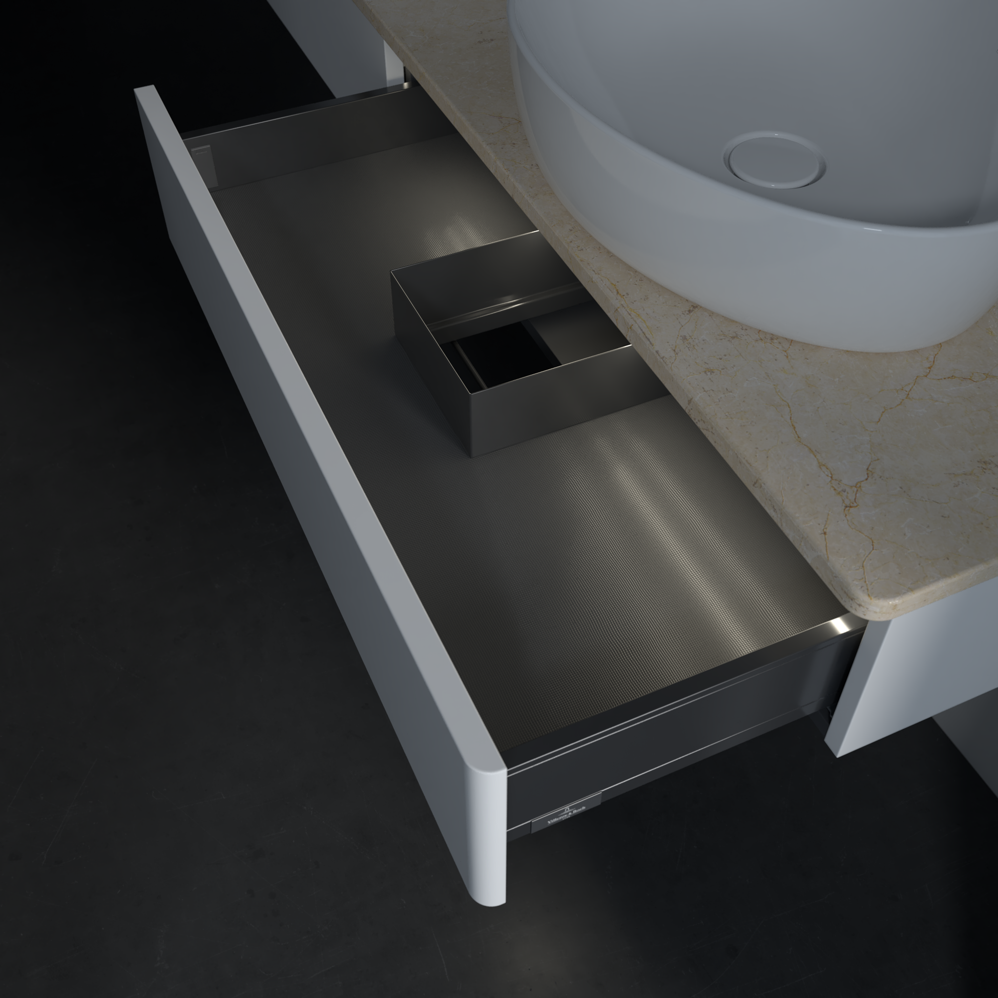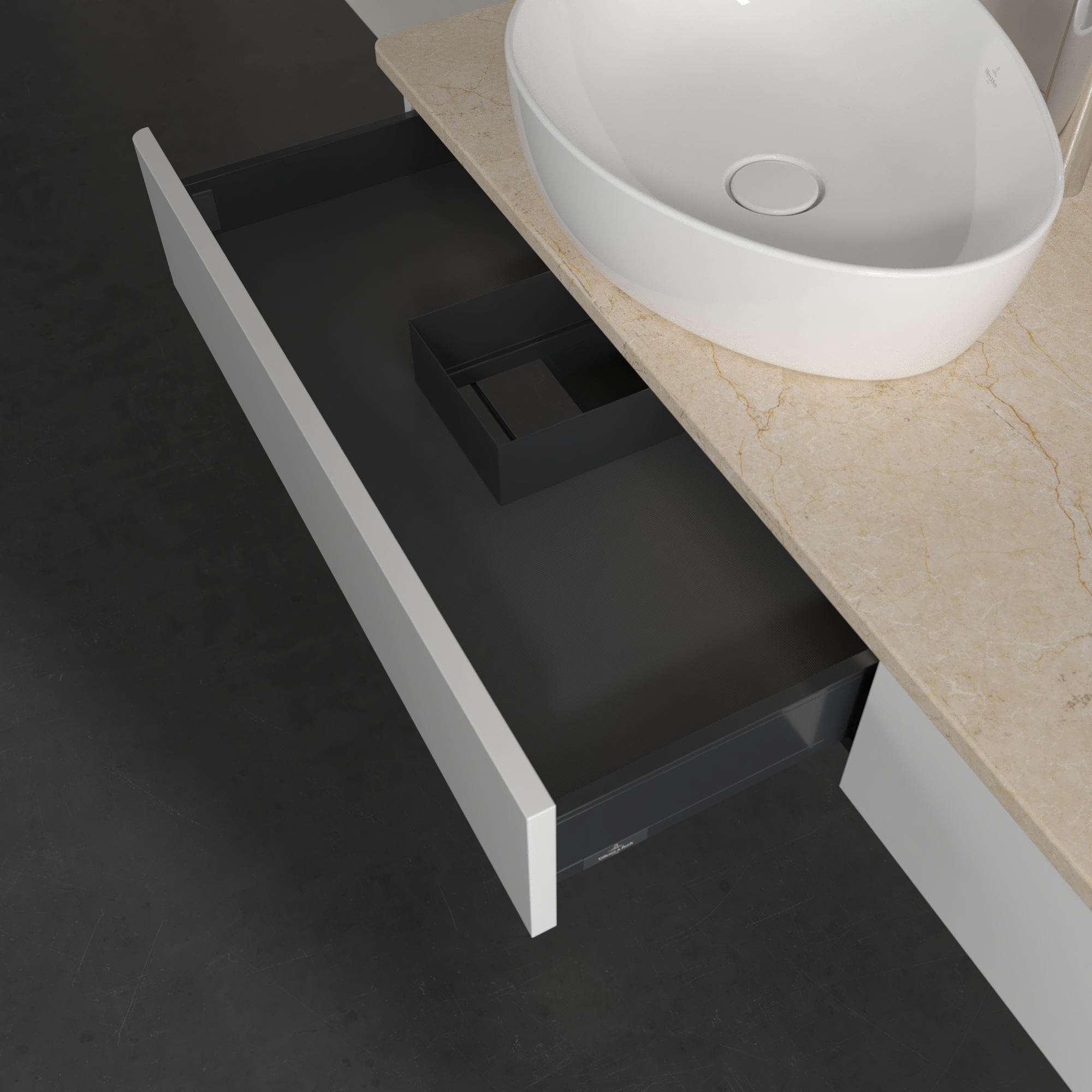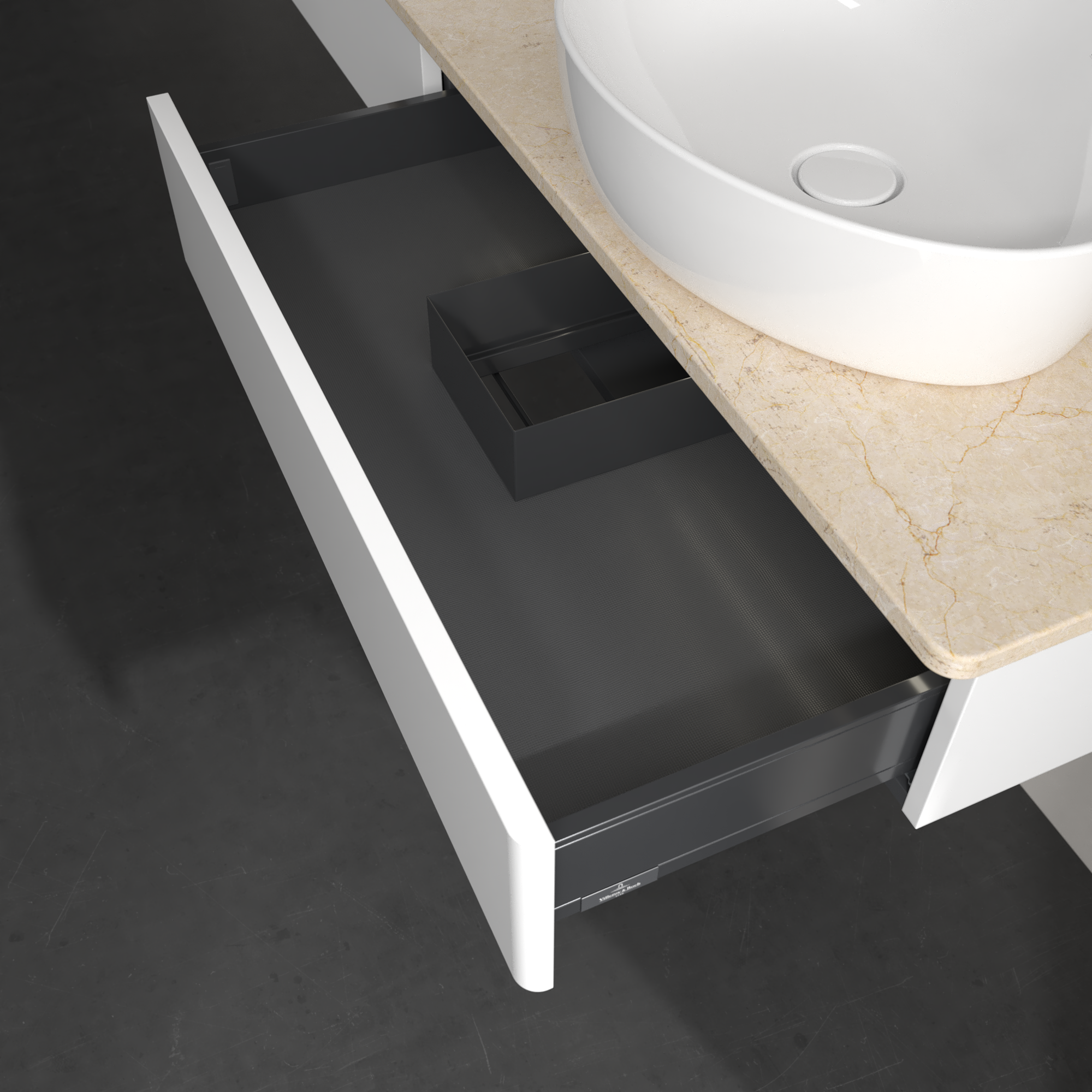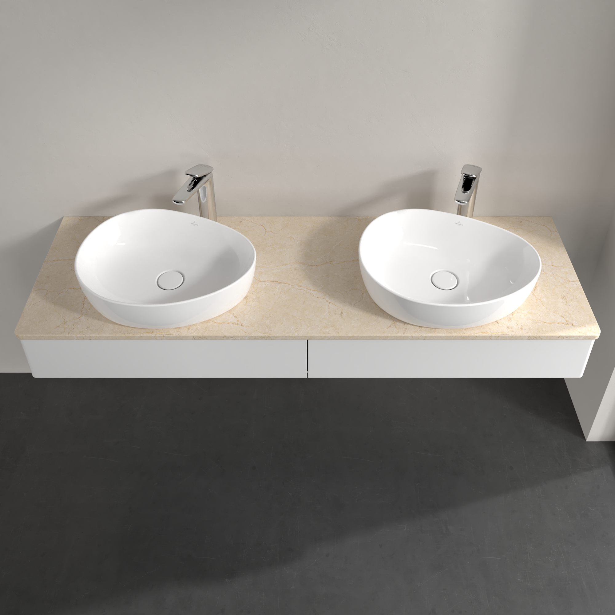 Antao Vanity unit, with lighting, 2 pull-out compartments, 1600x190x500mm, Front without structure, Body: Glossy White Lacquer, Front: Glossy White Lacquer, Cover plate: Botticino