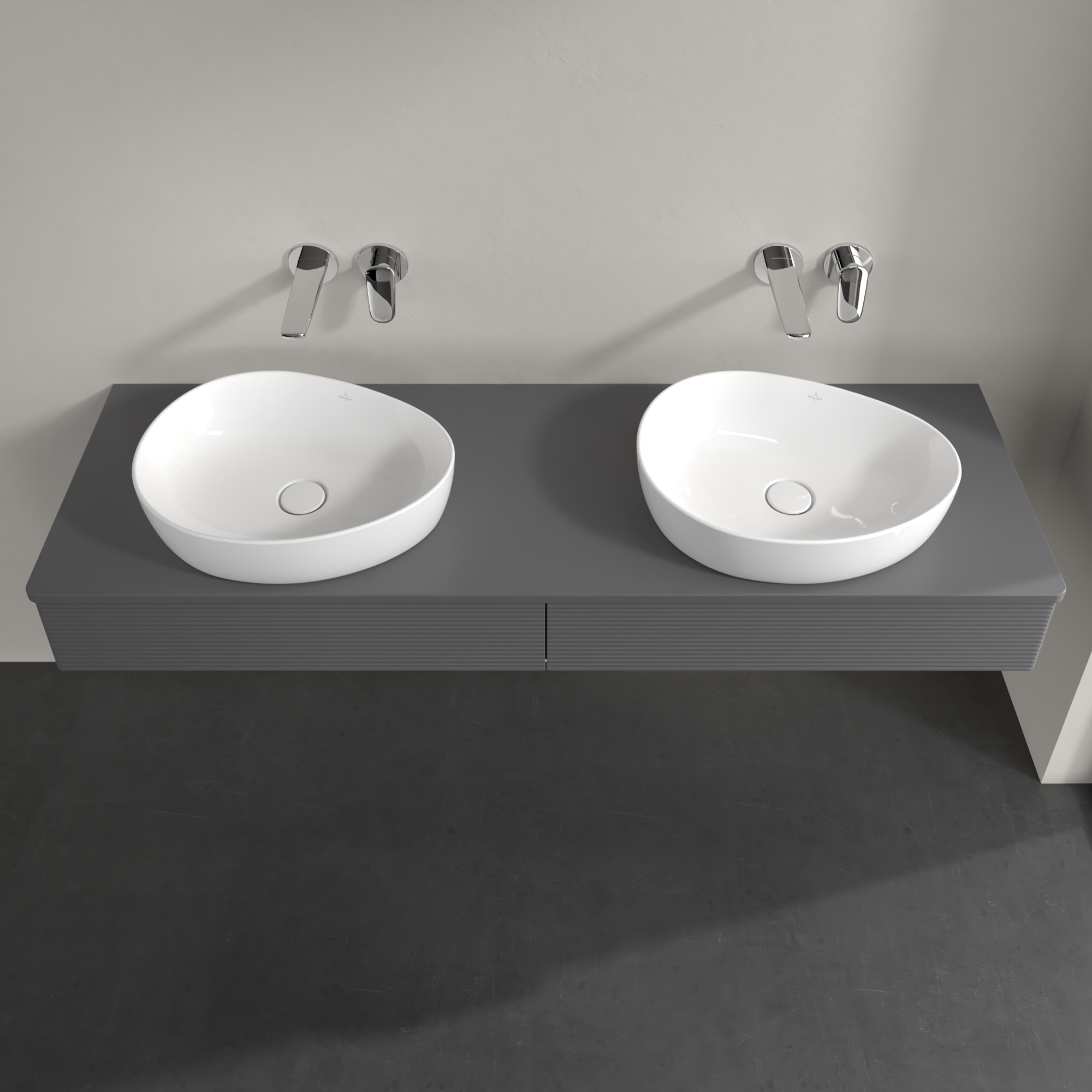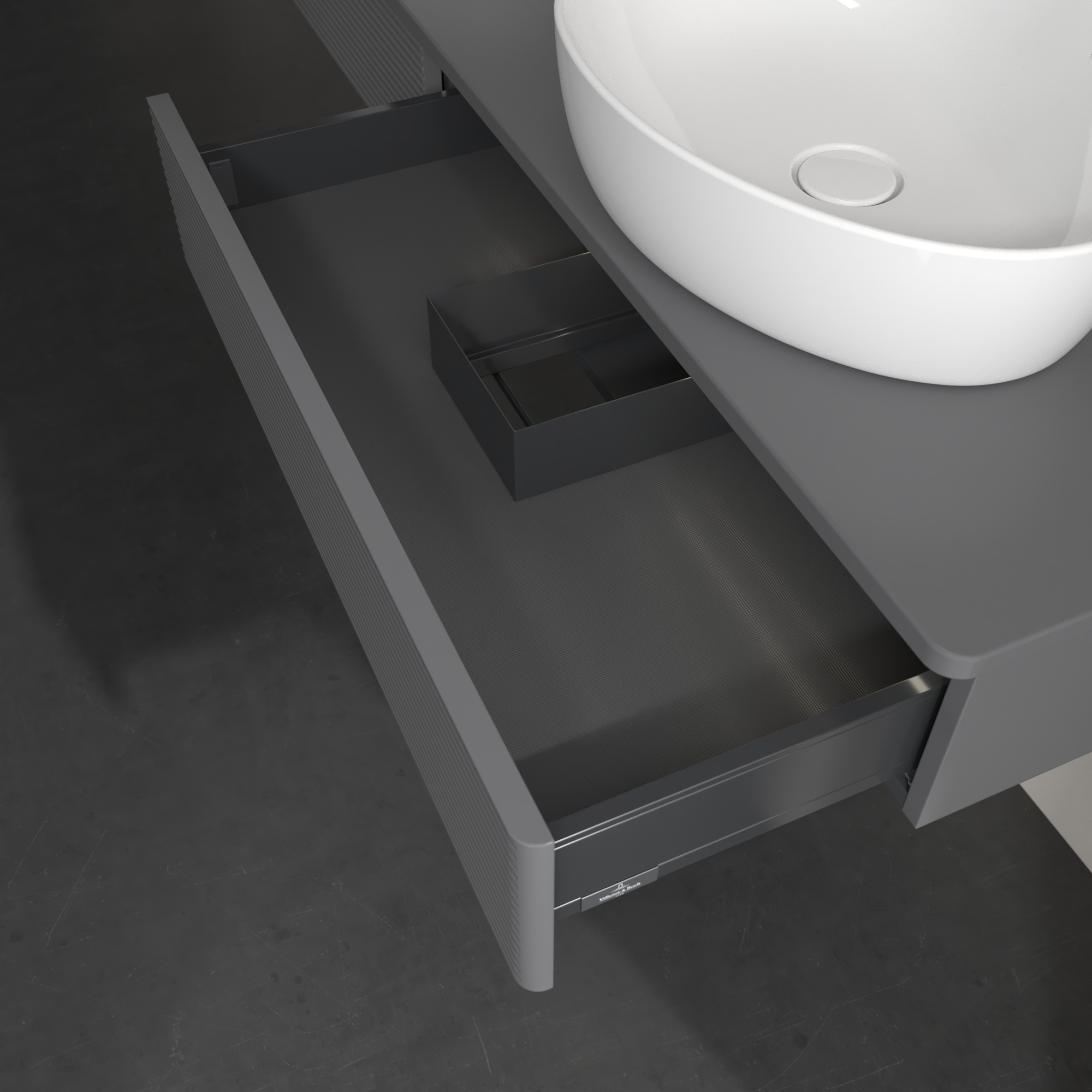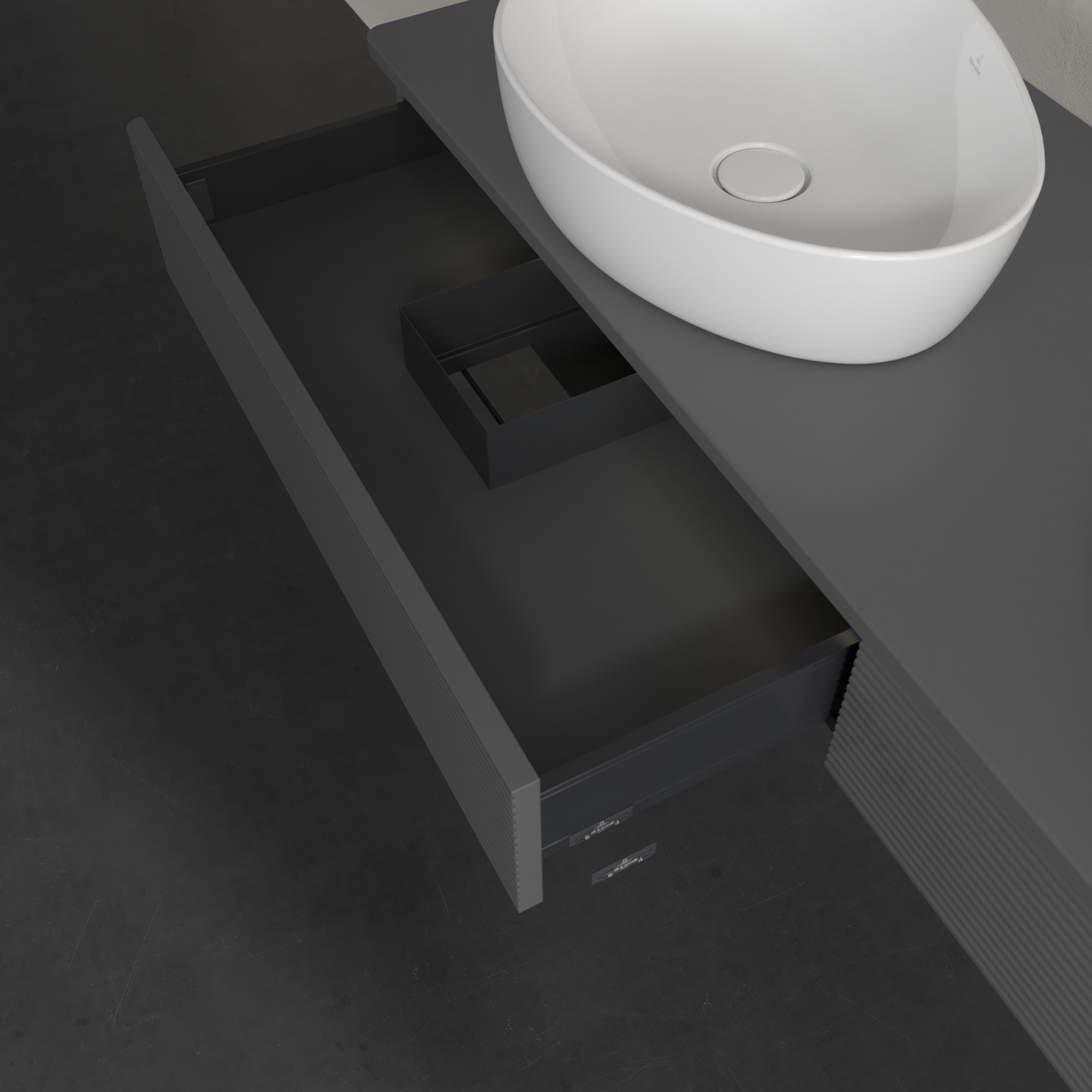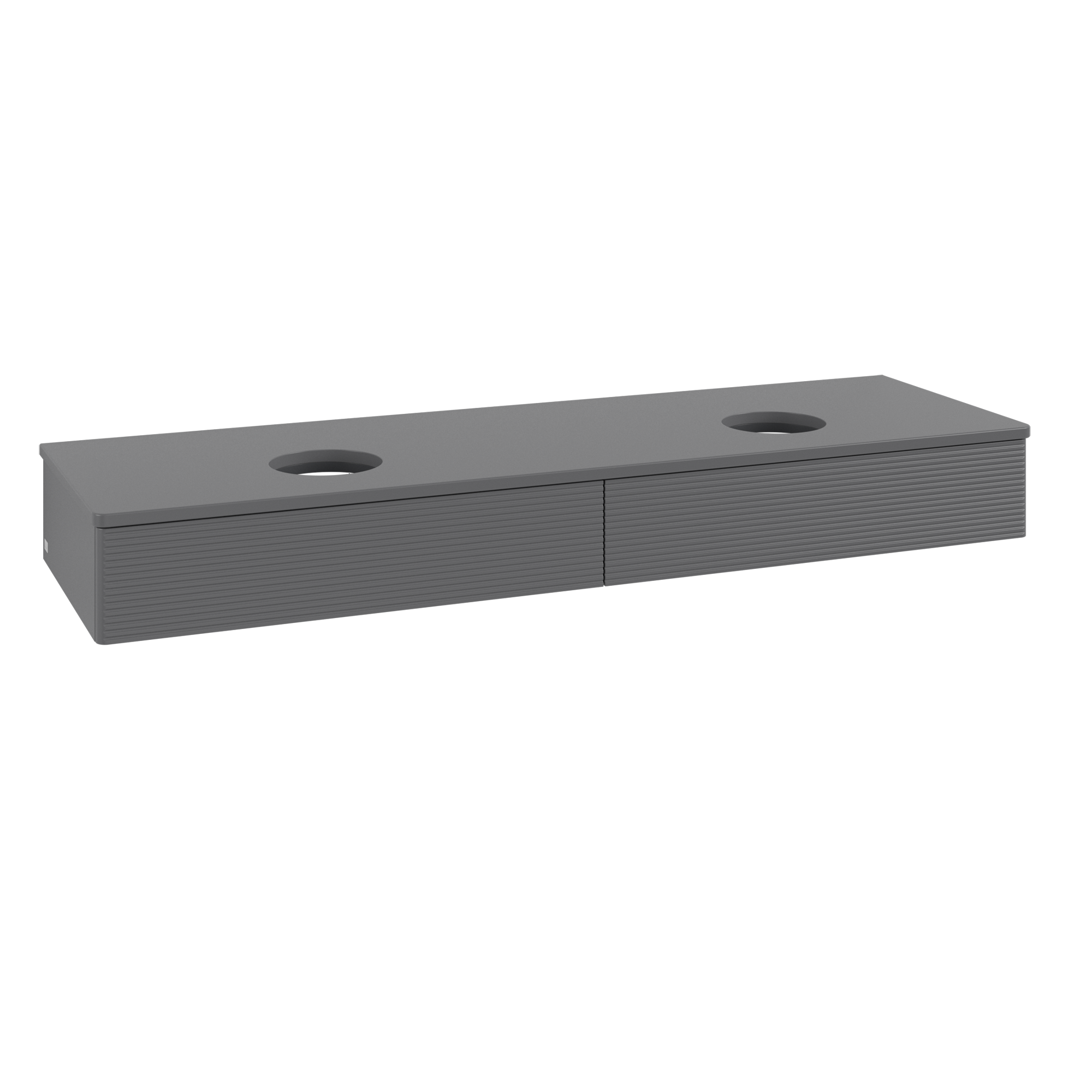 Antao Vanity unit, with lighting, 2 pull-out compartments, 1600x190x500mm, Front with grain texture, Body: Anthracite Matt Lacquer, Front: Anthracite Matt Lacquer, Cover plate: Anthracite Matt Lacquer