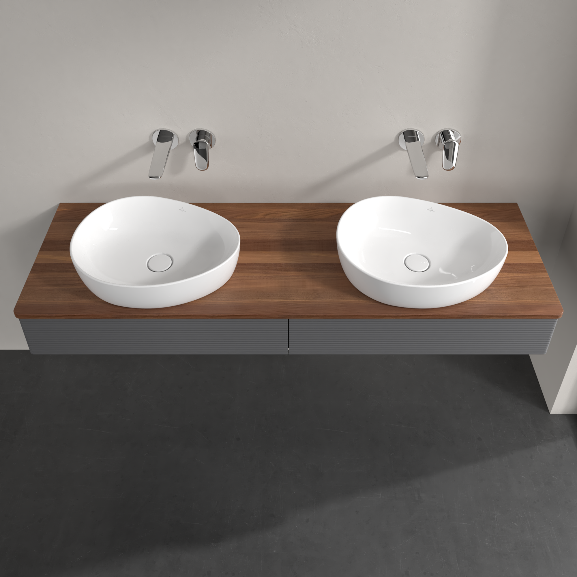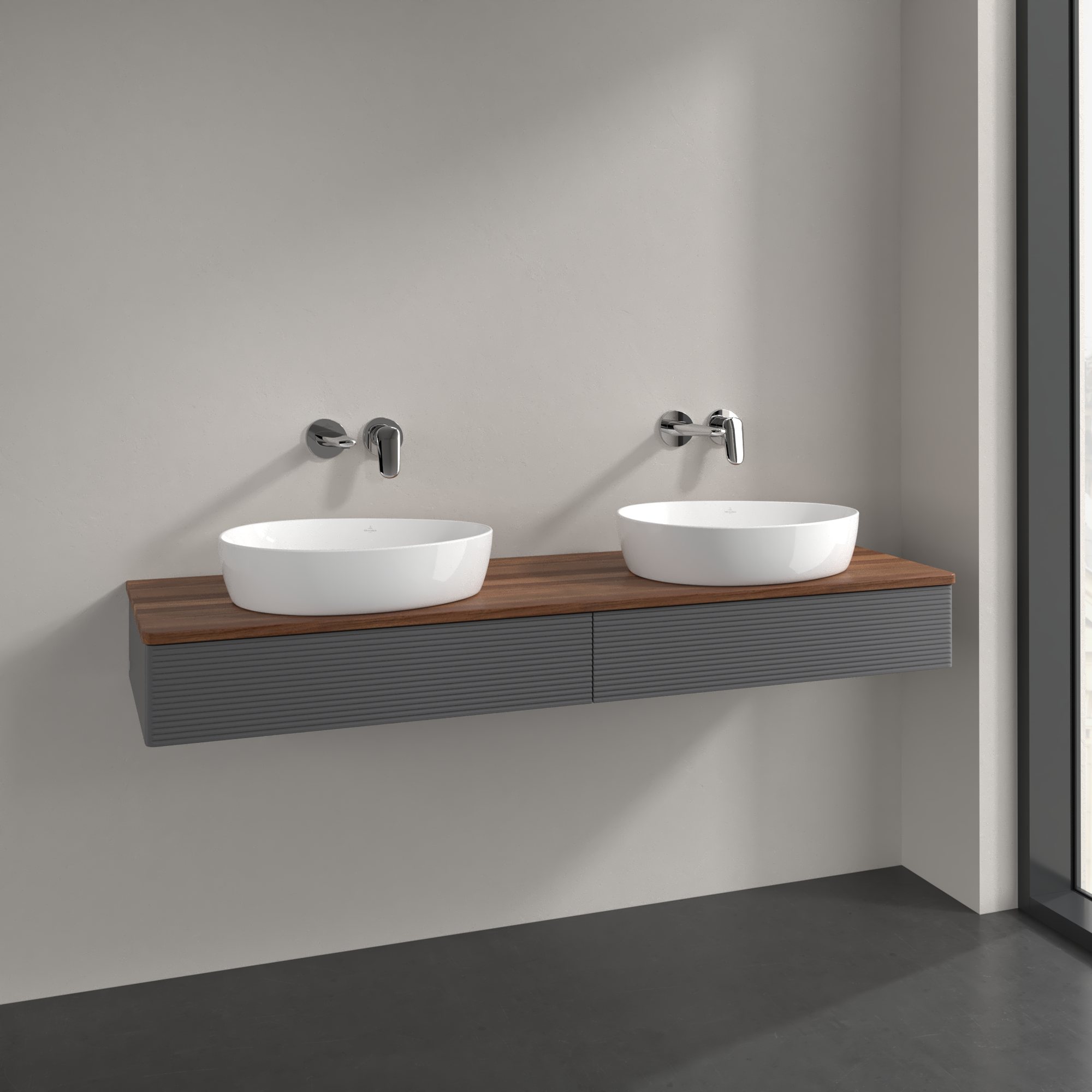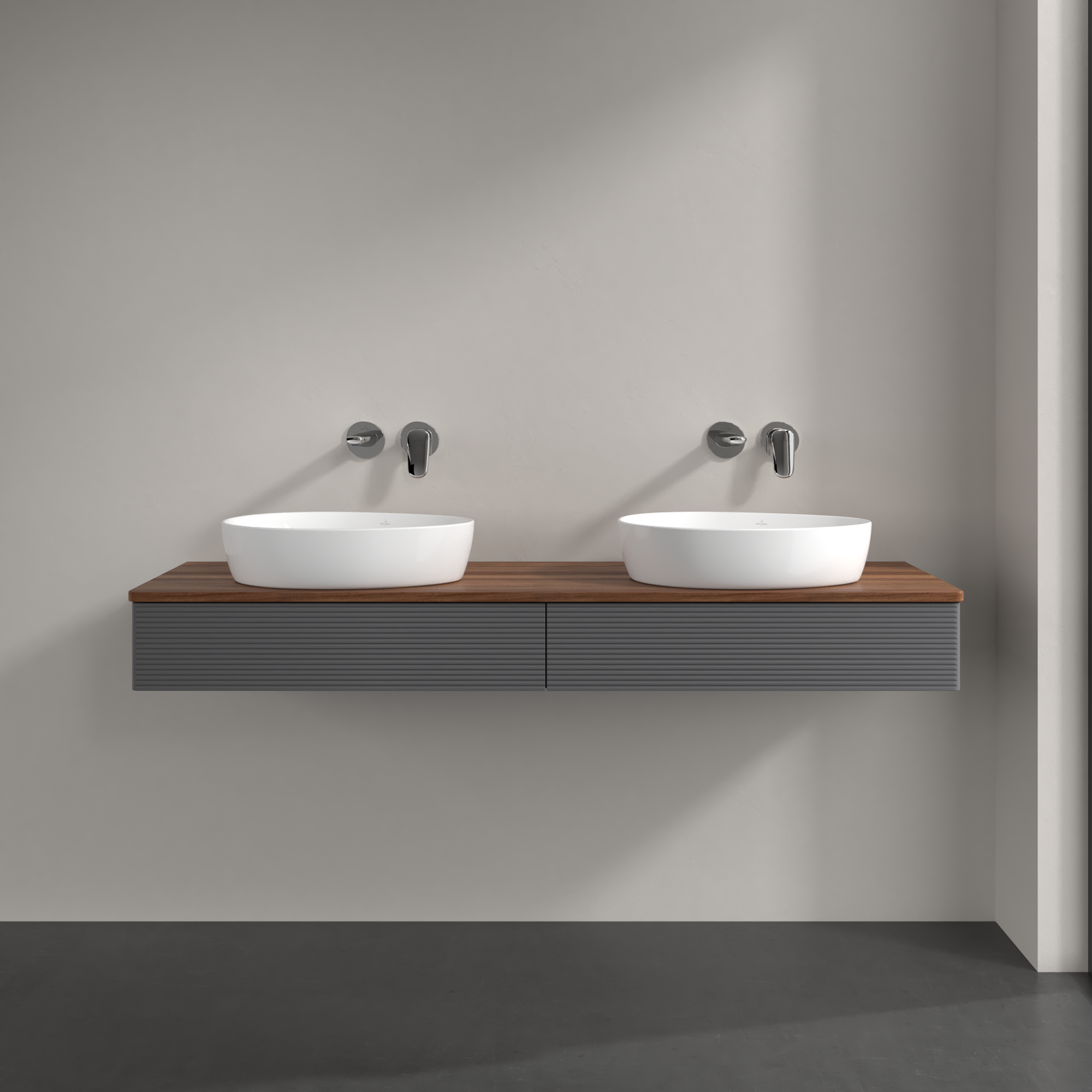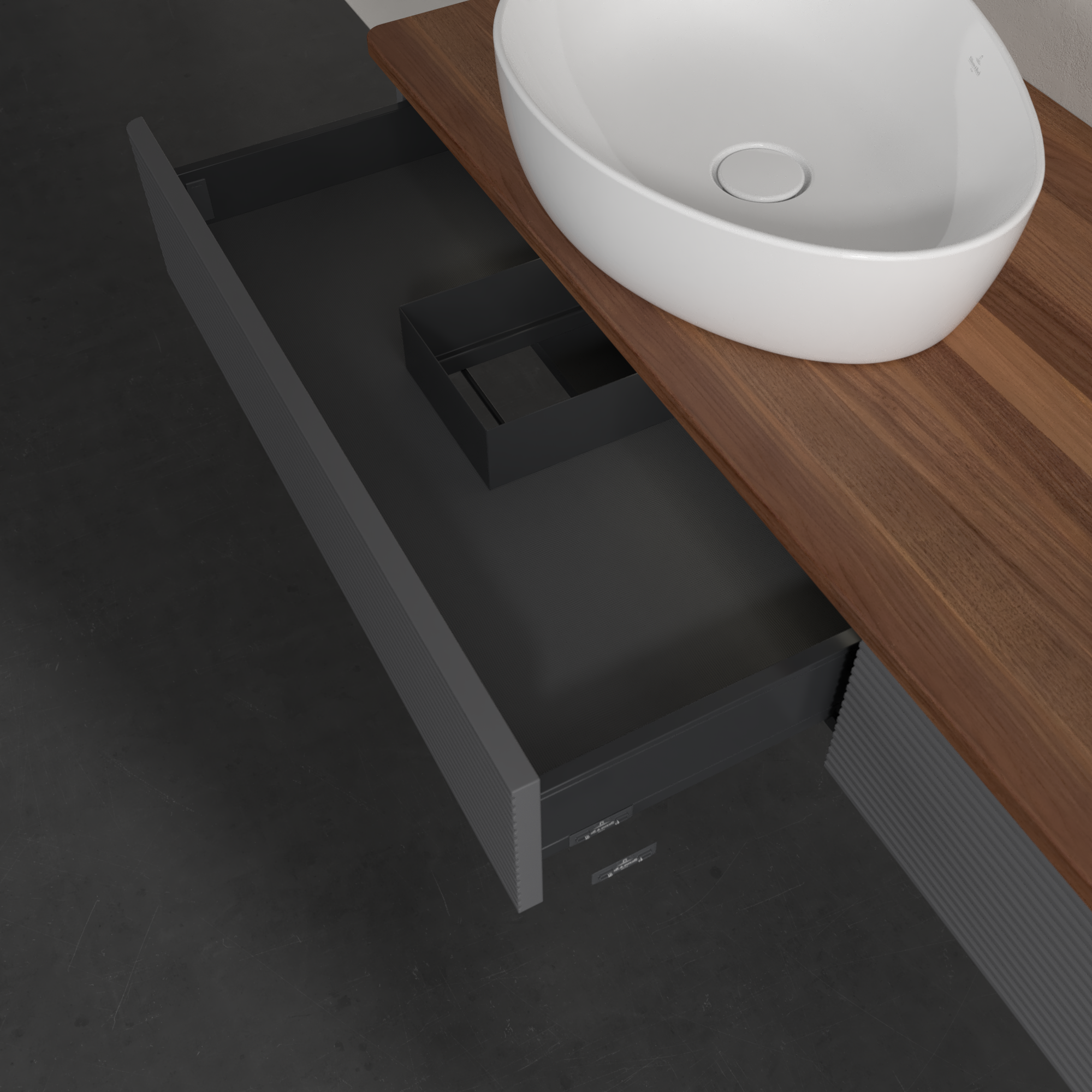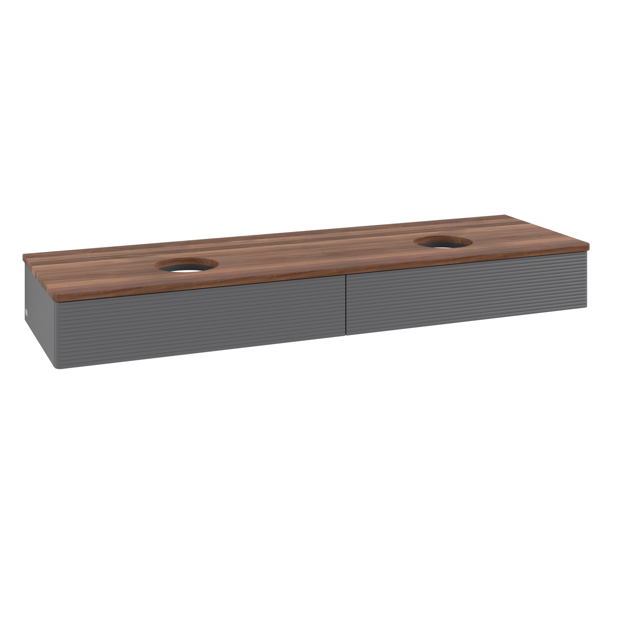 Antao Vanity unit, with lighting, 2 pull-out compartments, 1600x190x500mm, Front with grain texture, Body: Anthracite Matt Lacquer, Front: Anthracite Matt Lacquer, Cover plate: Warm Walnut
