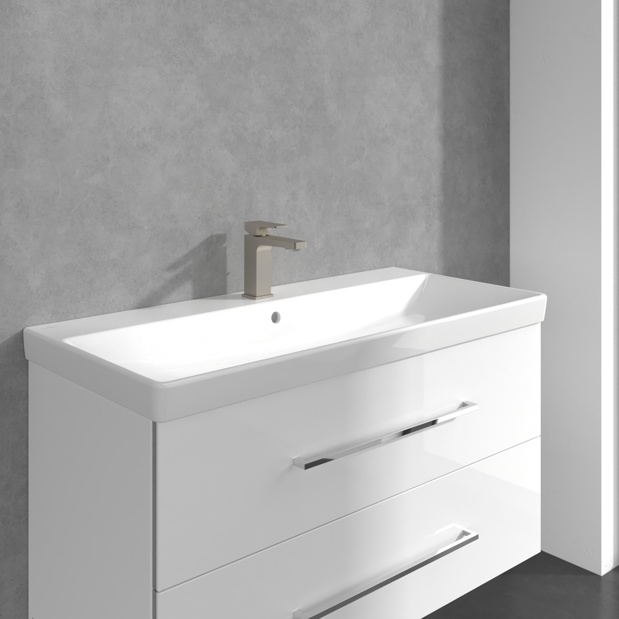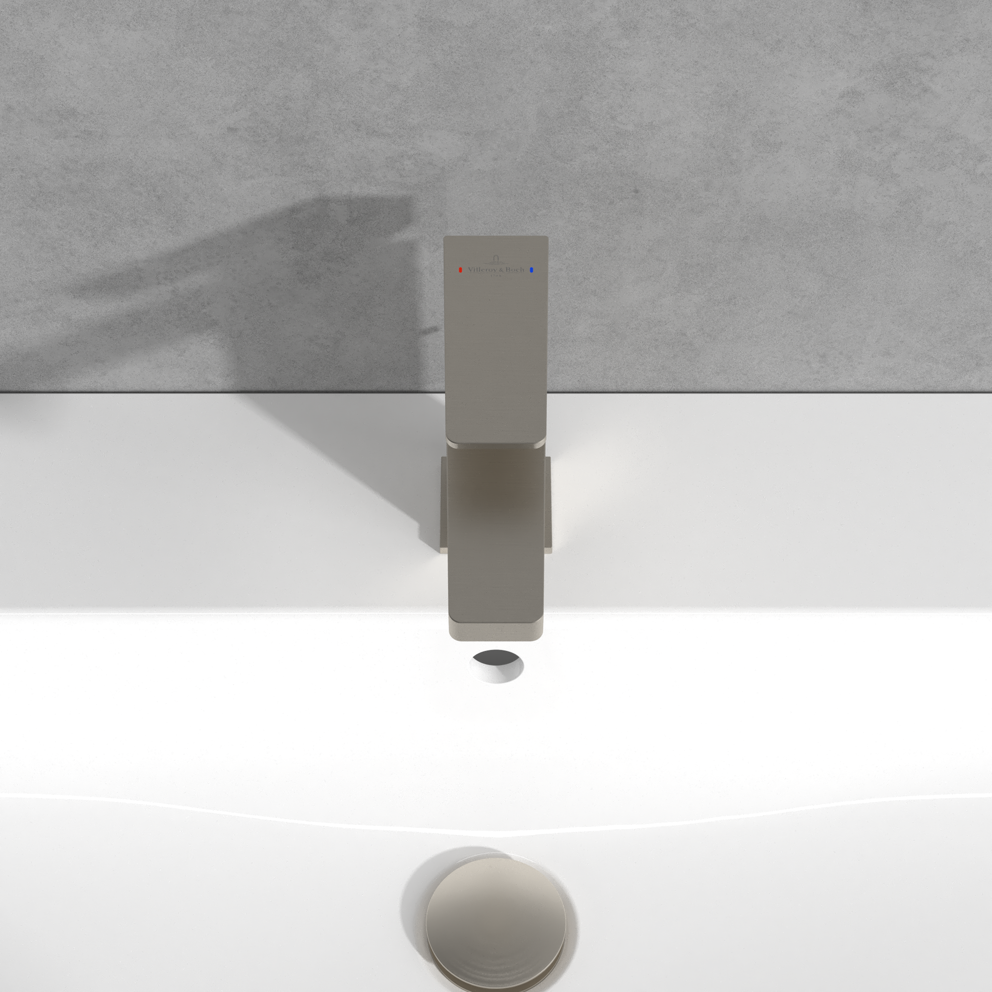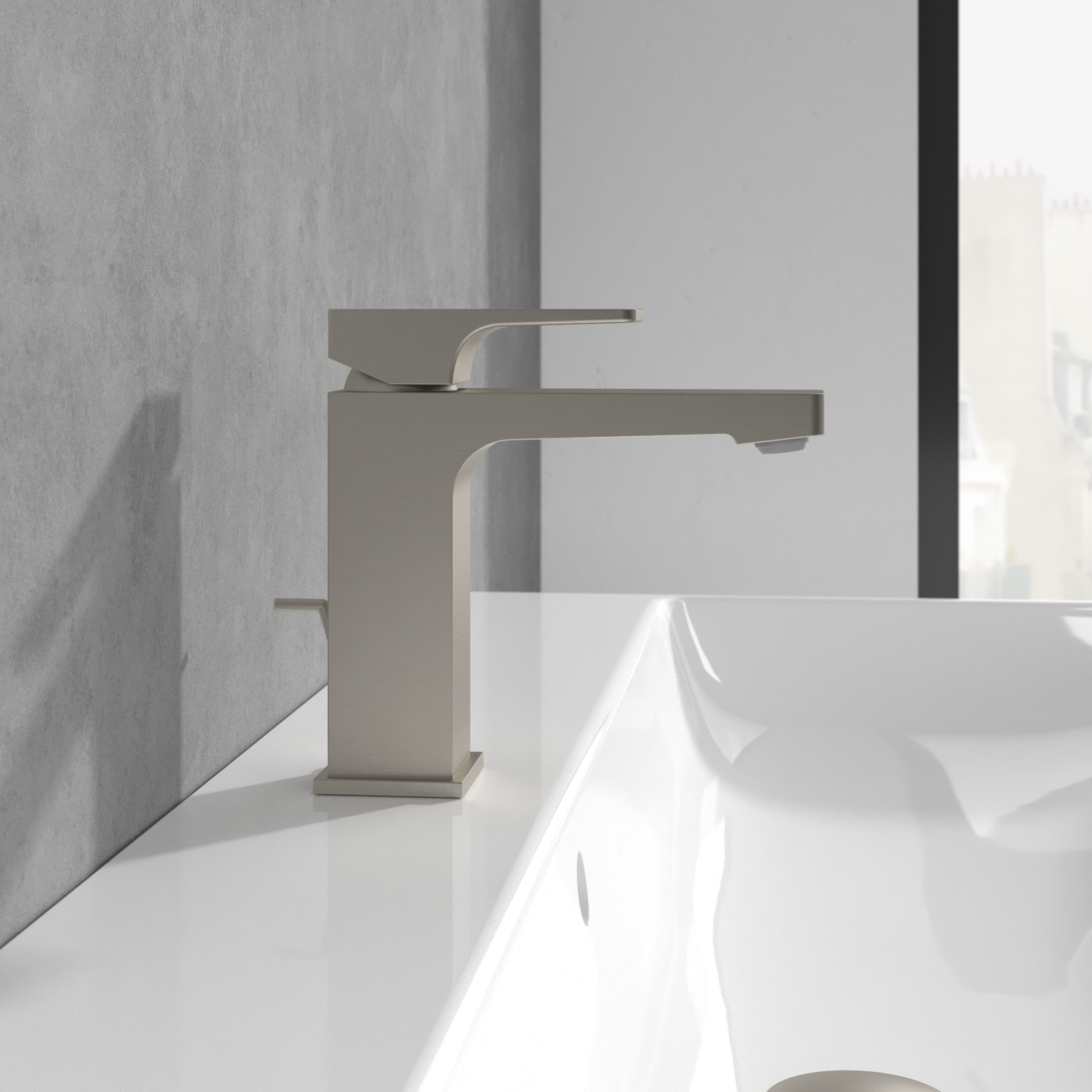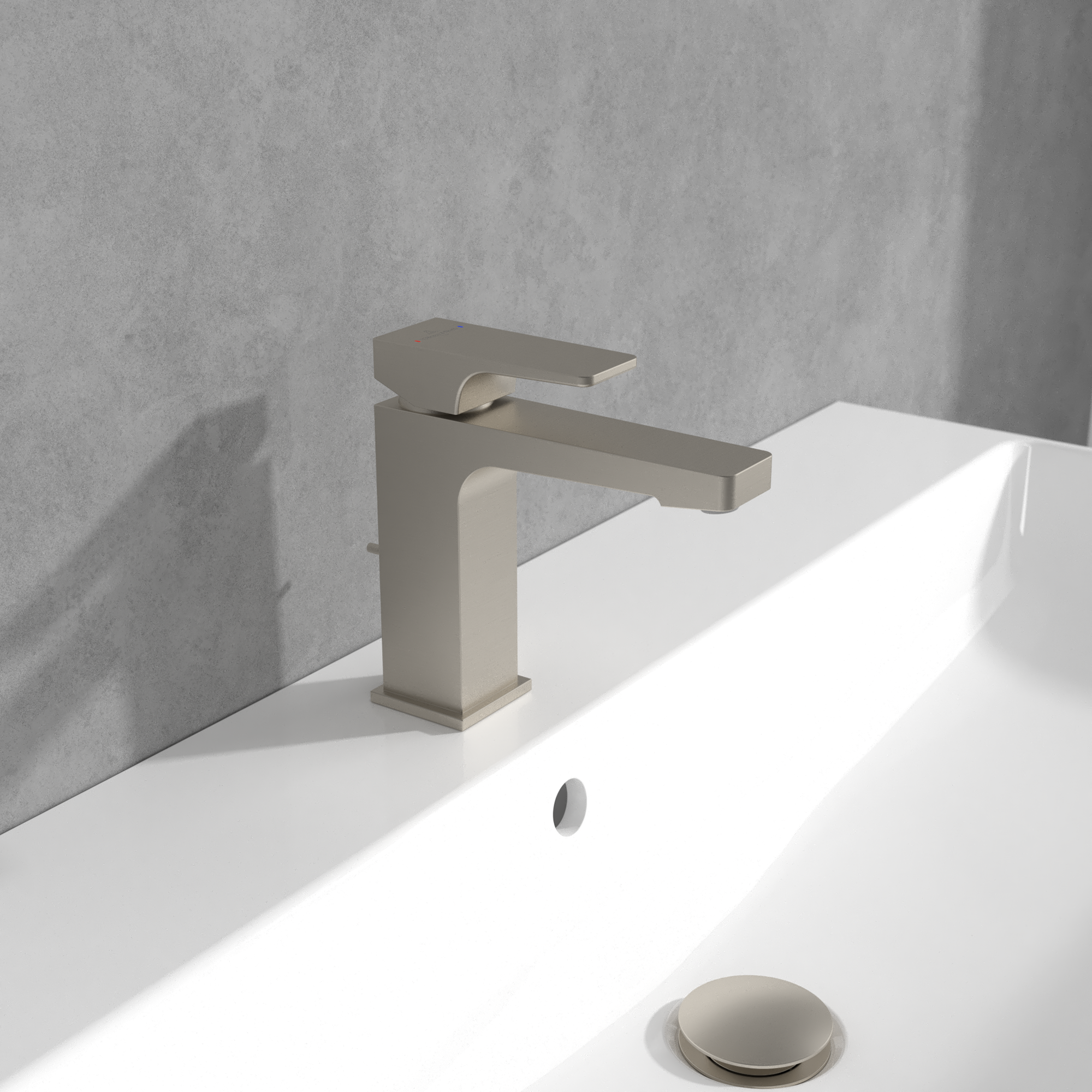 Architectura Square Single-lever basin mixer, With push/pull rod lever and pop-up waste, Brushed Nickel Matt
