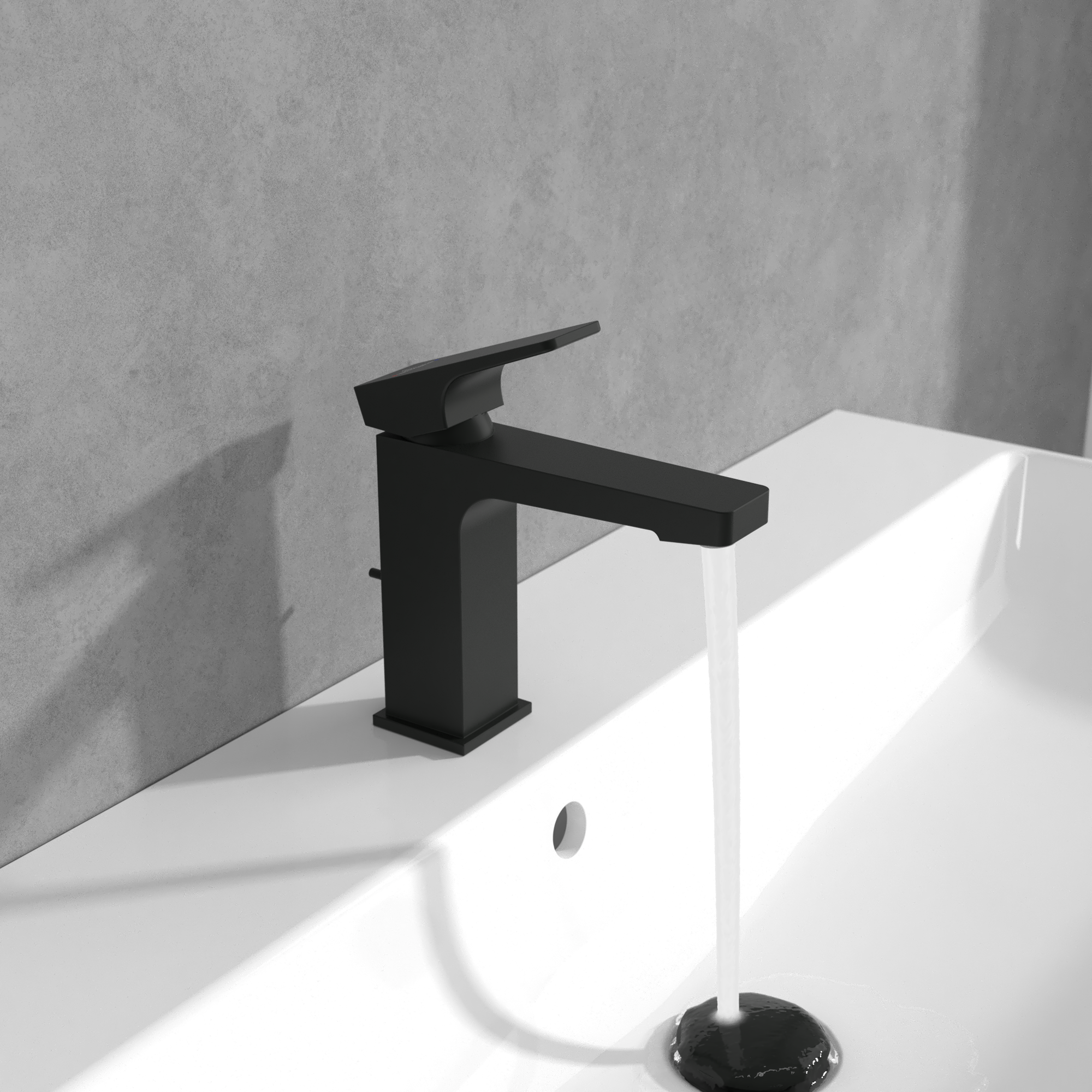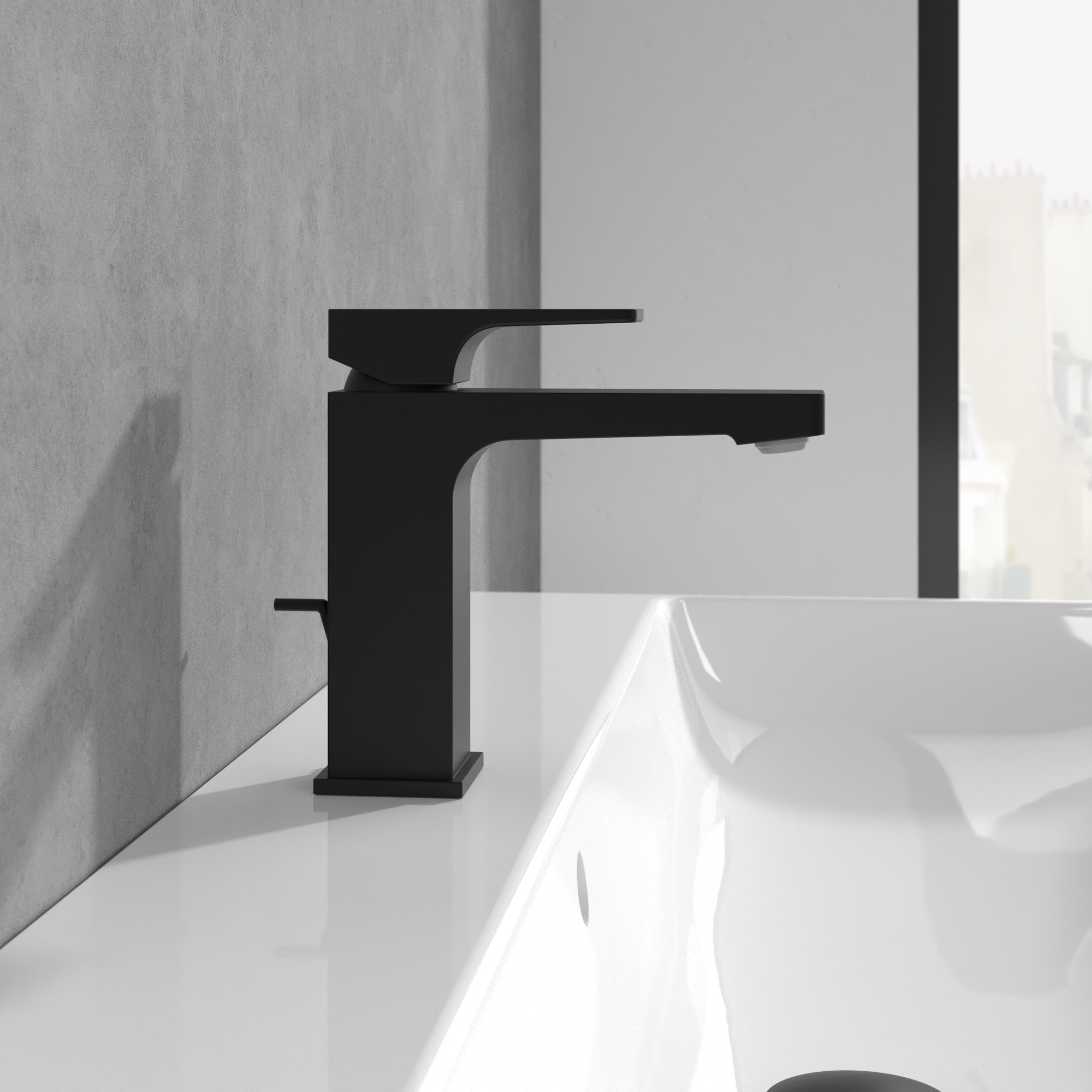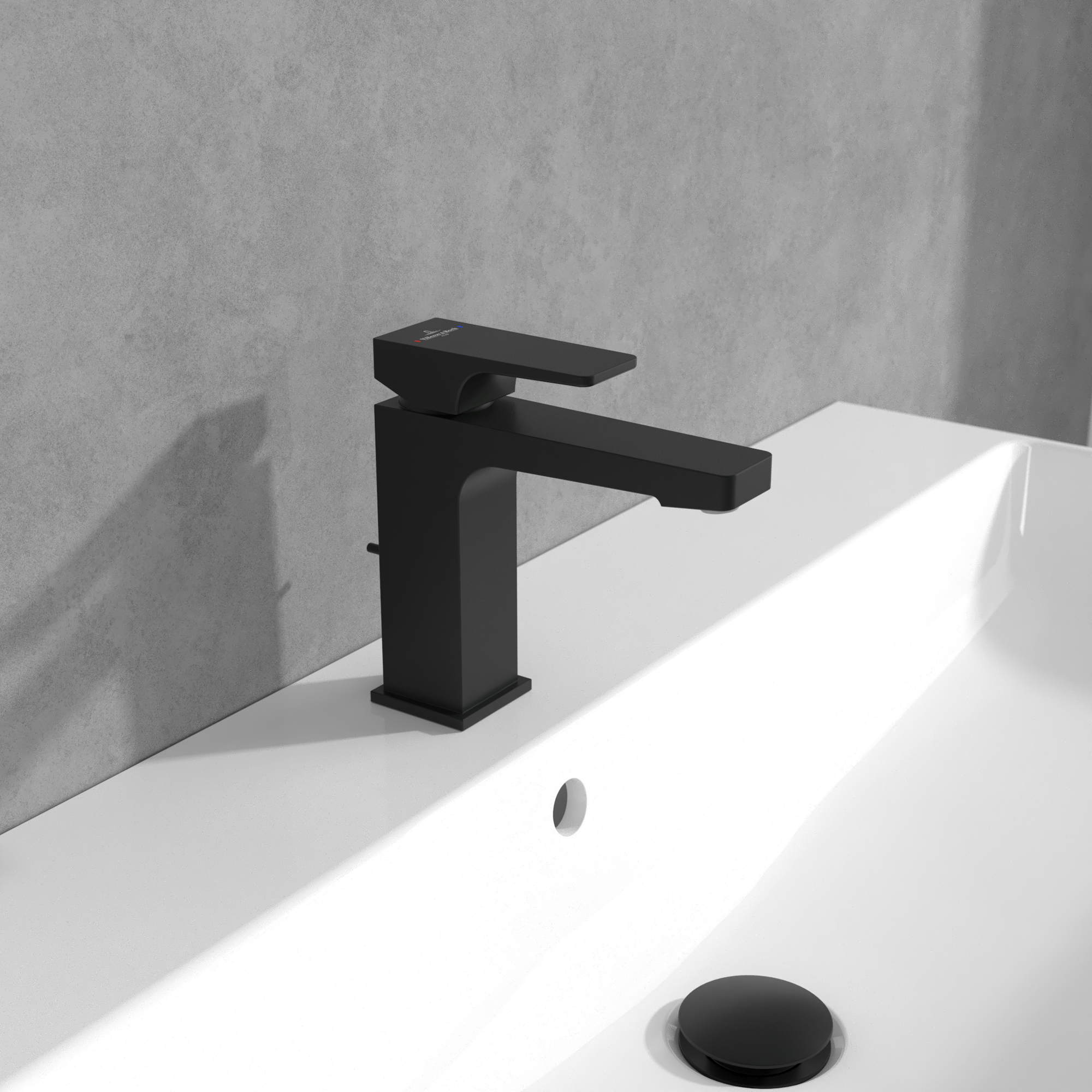 Architectura Square Single-lever basin mixer, With push/pull rod lever and pop-up waste, Matt Black