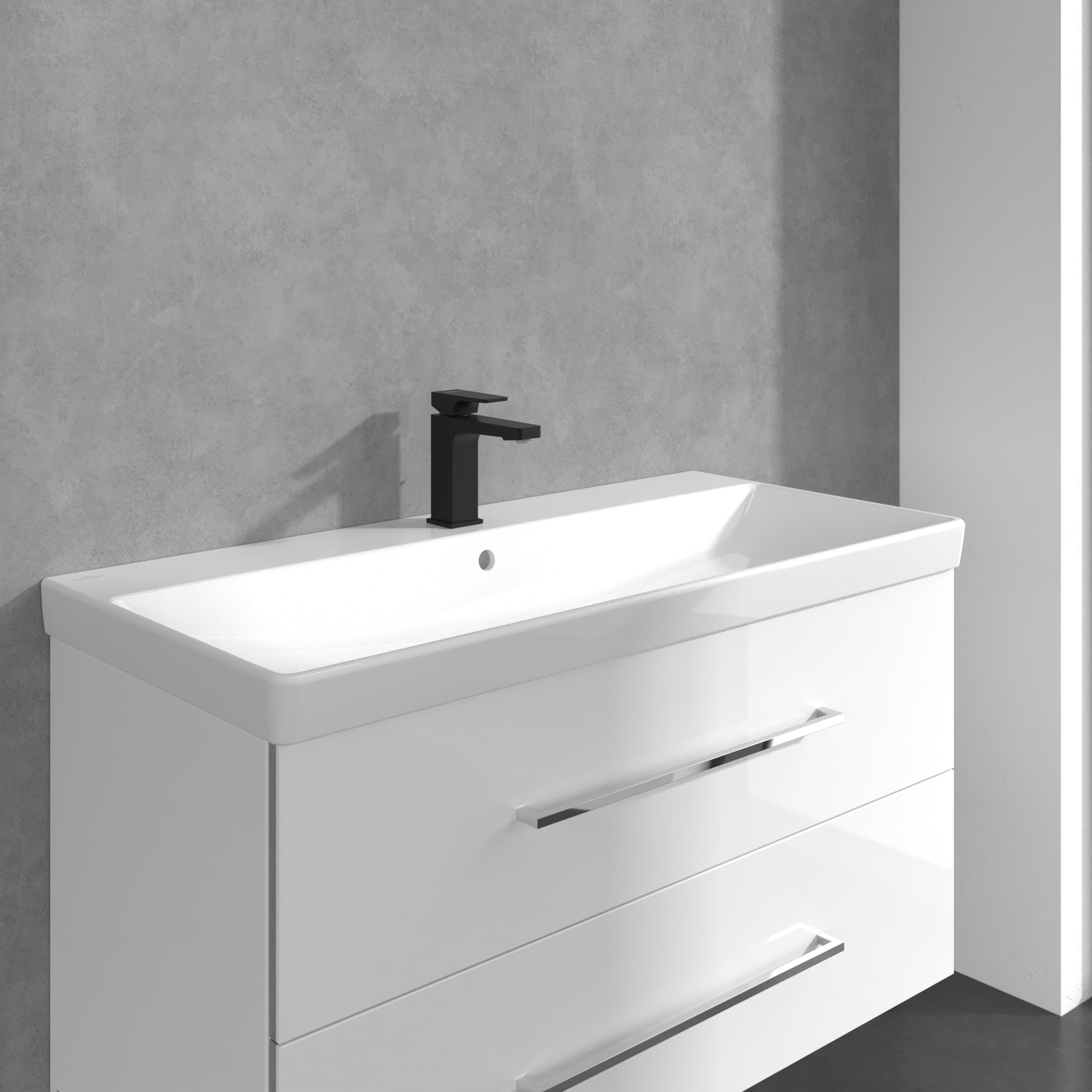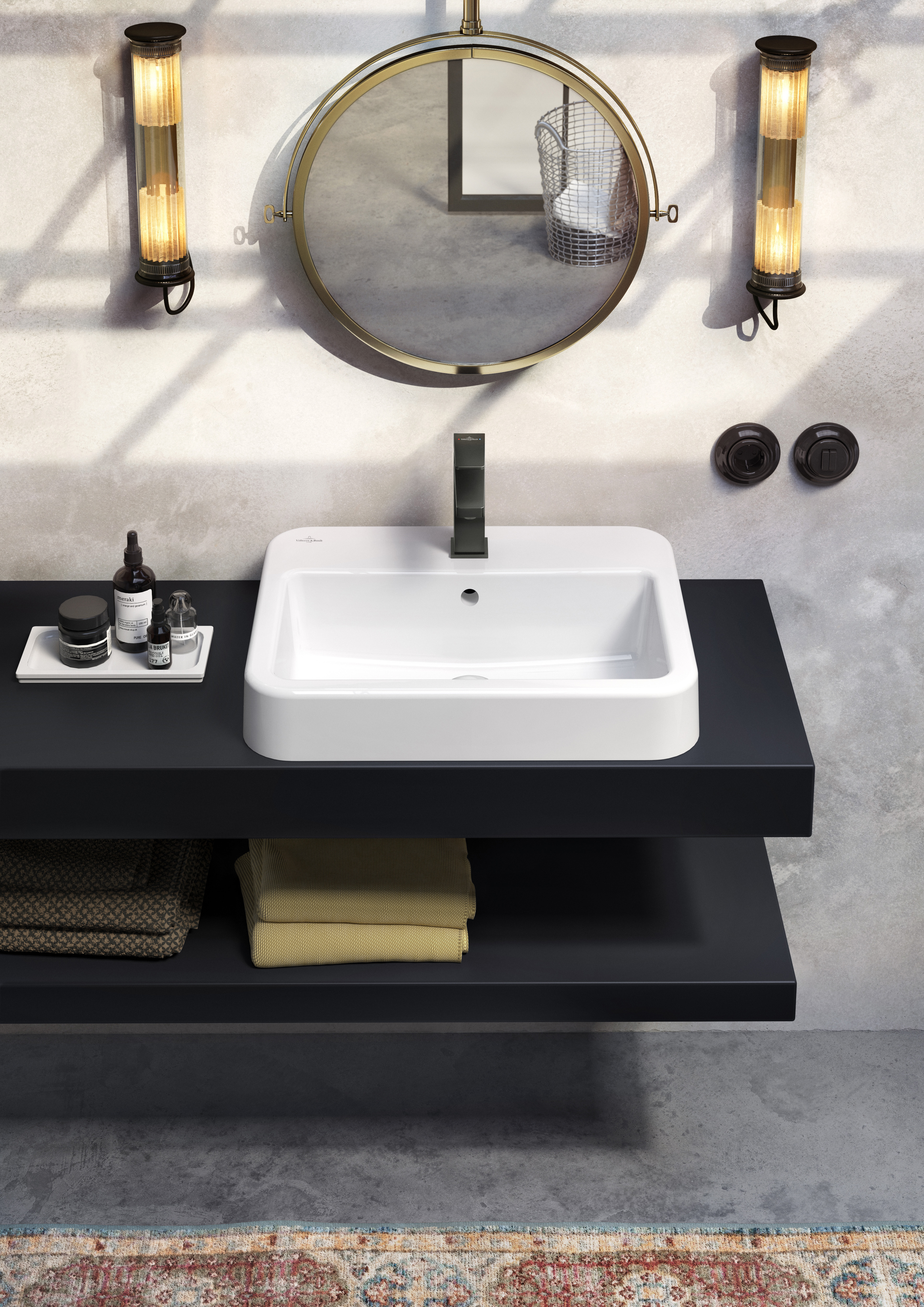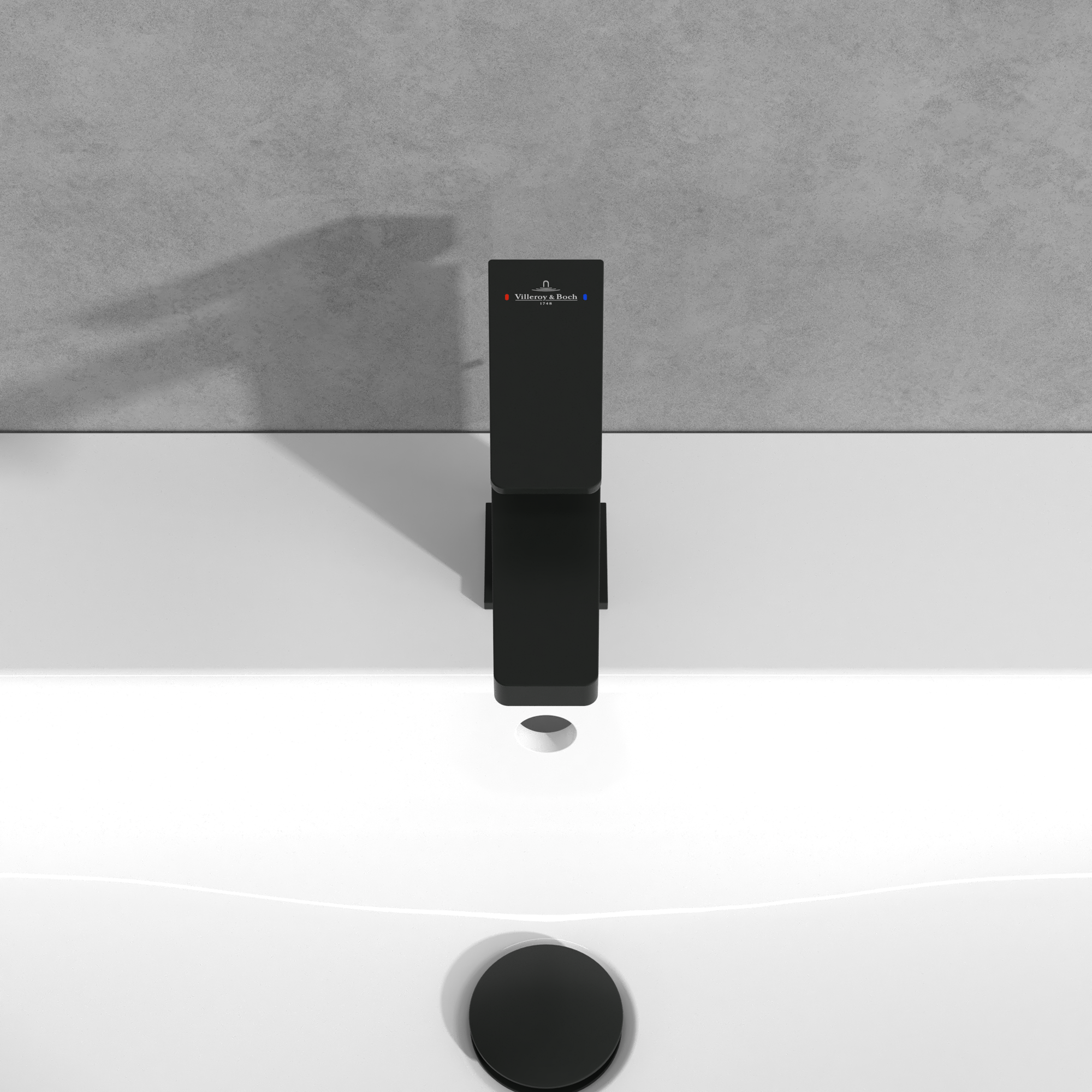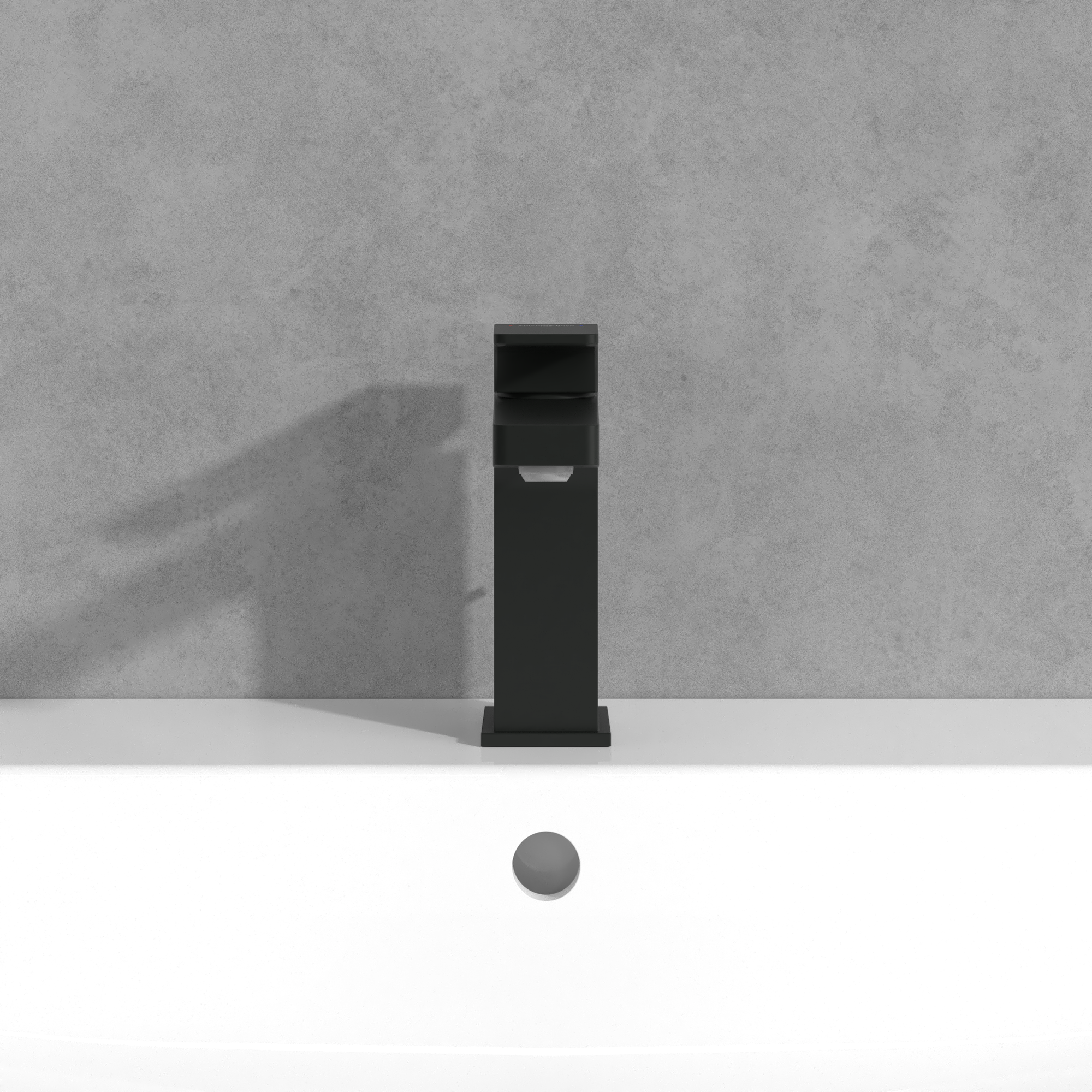 Architectura Square Single-lever basin mixer, With push/pull rod lever and pop-up waste, Matt Black