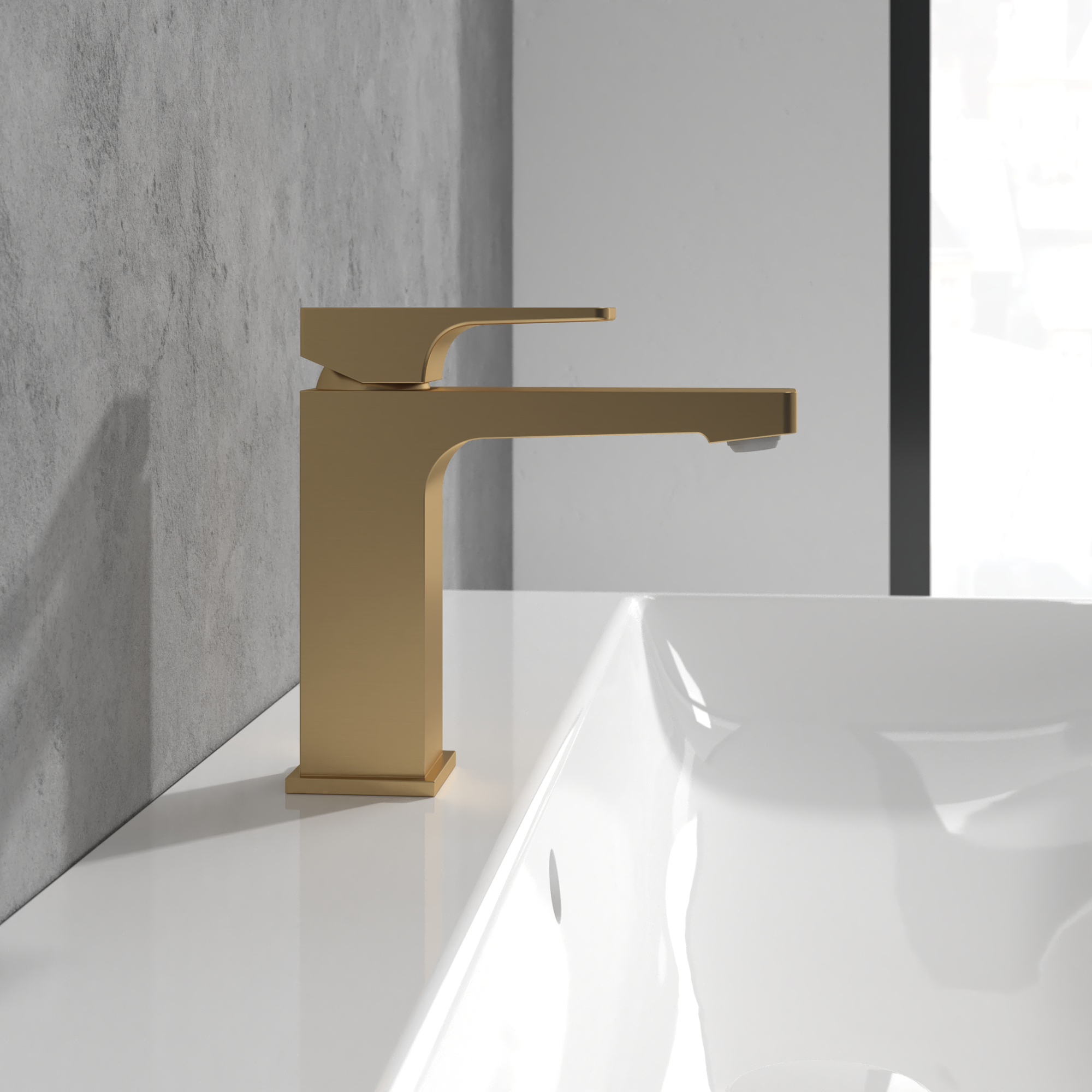 Architectura Square Single-lever basin mixer, Without waste, Brushed Gold