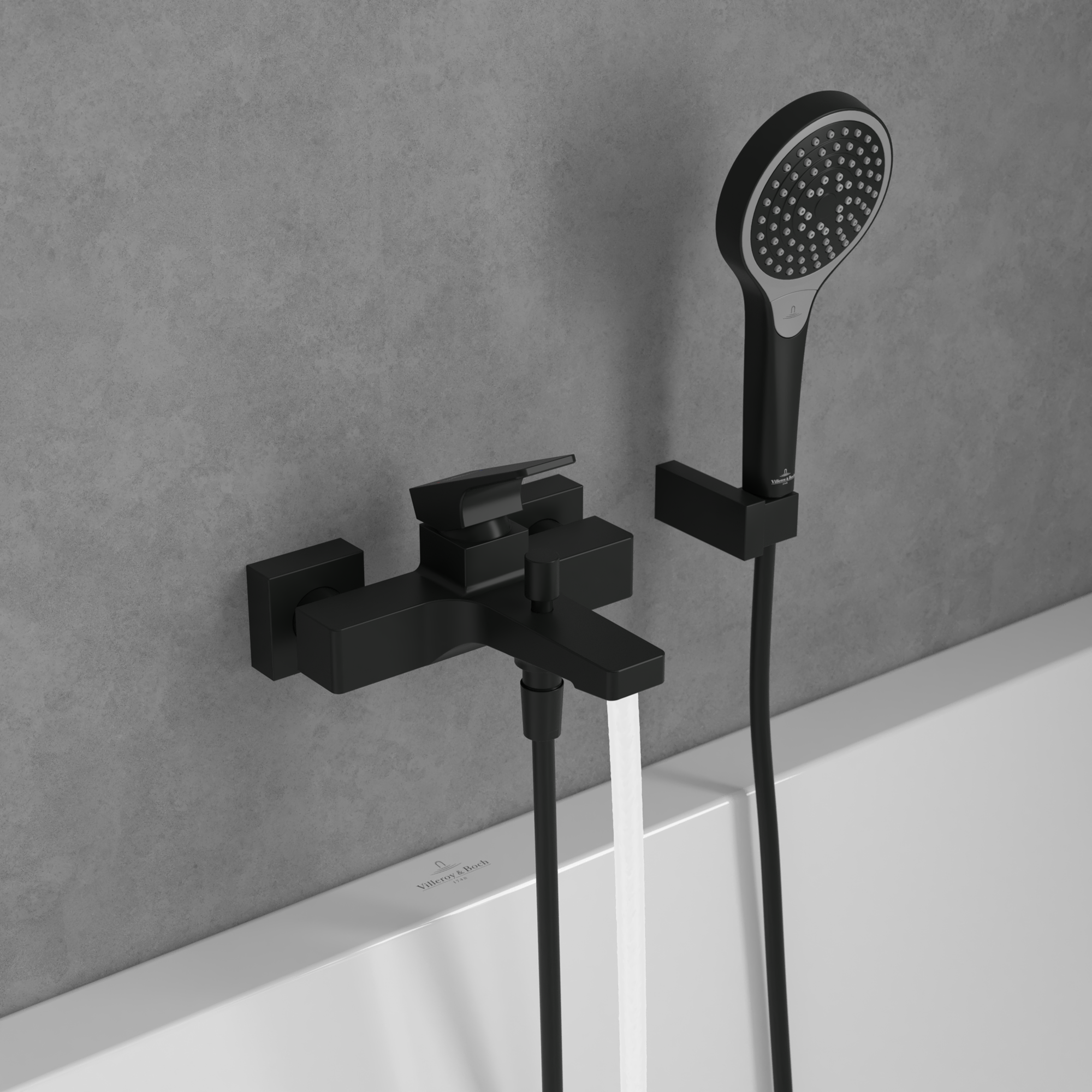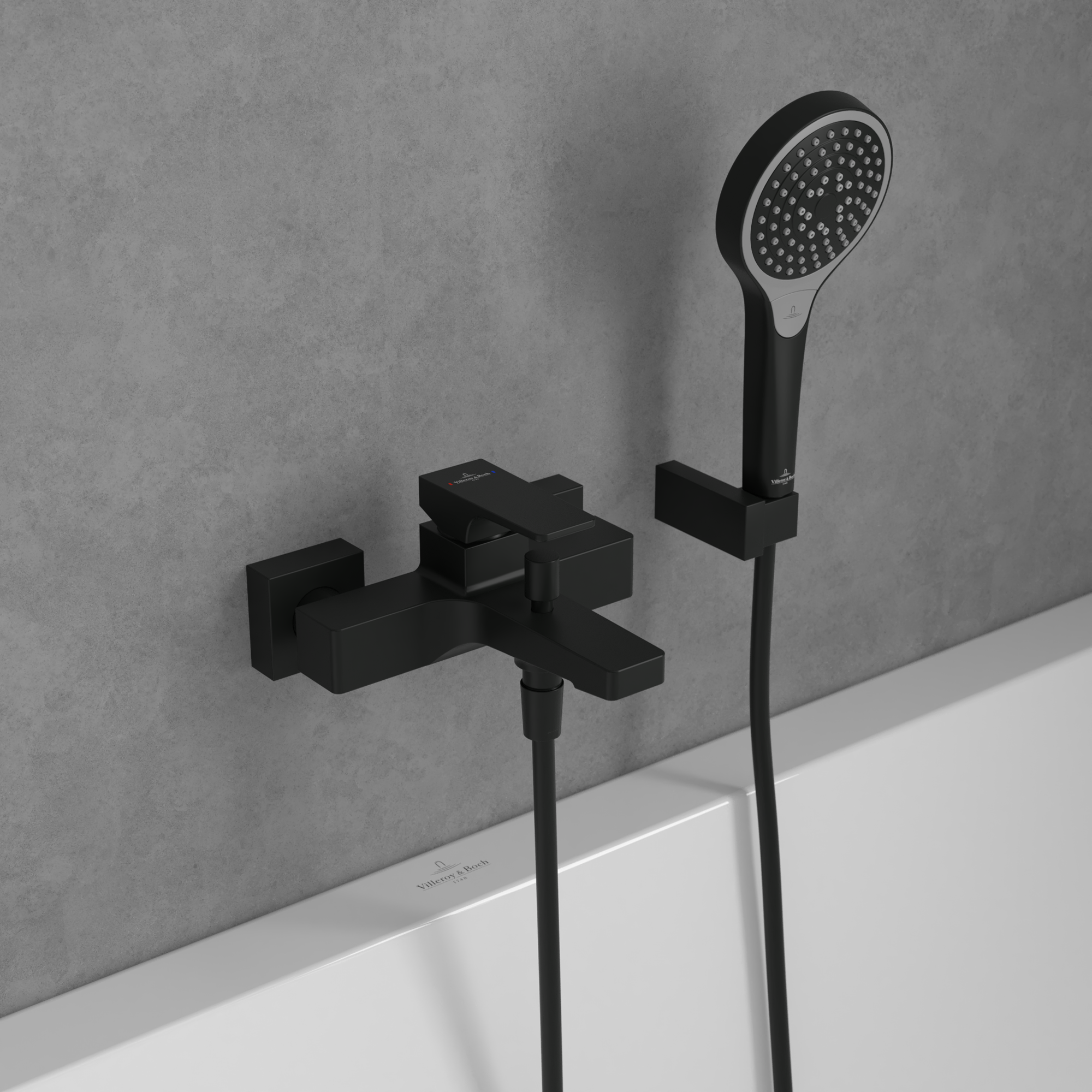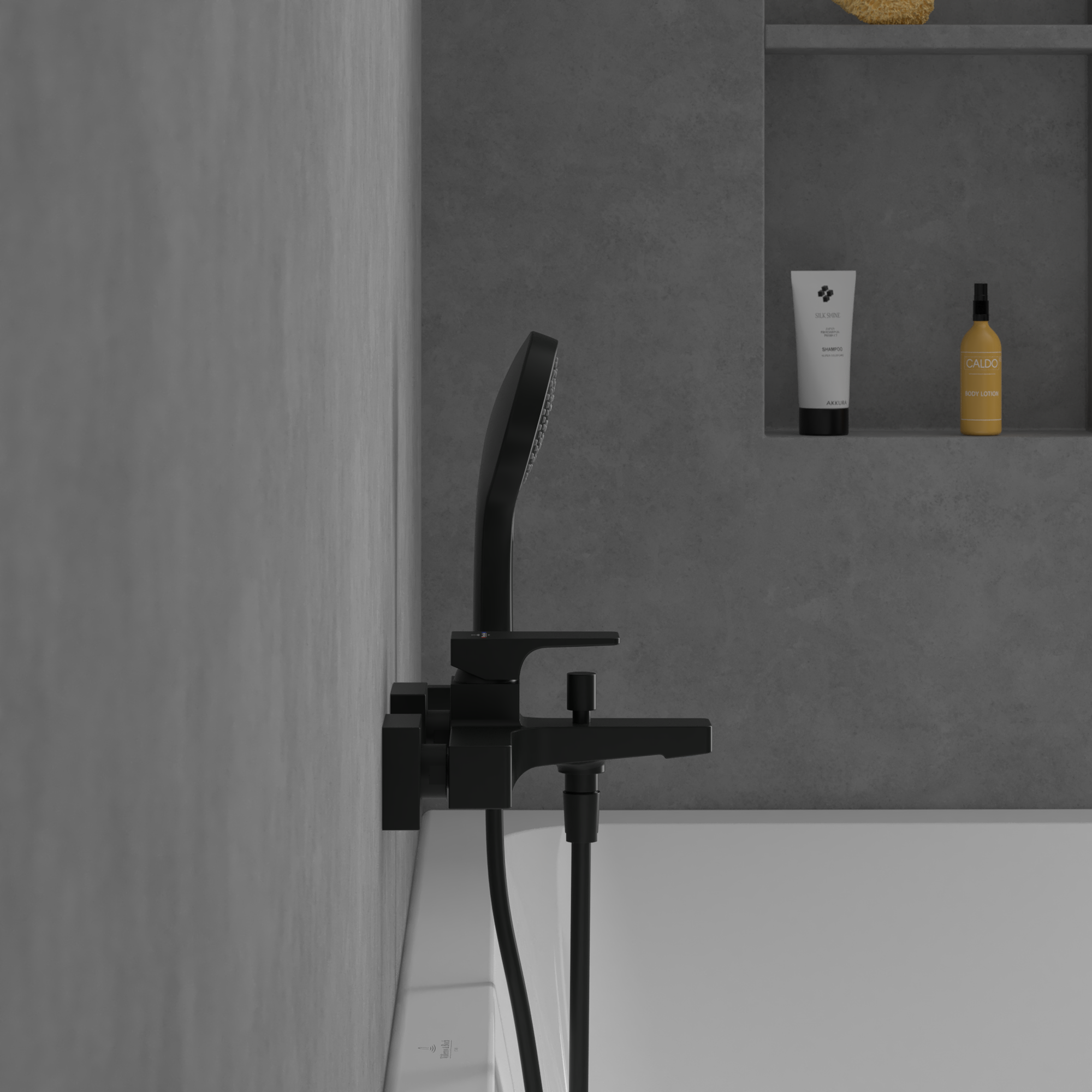 Architectura Square Single-lever bath & shower mixer, Matt Black