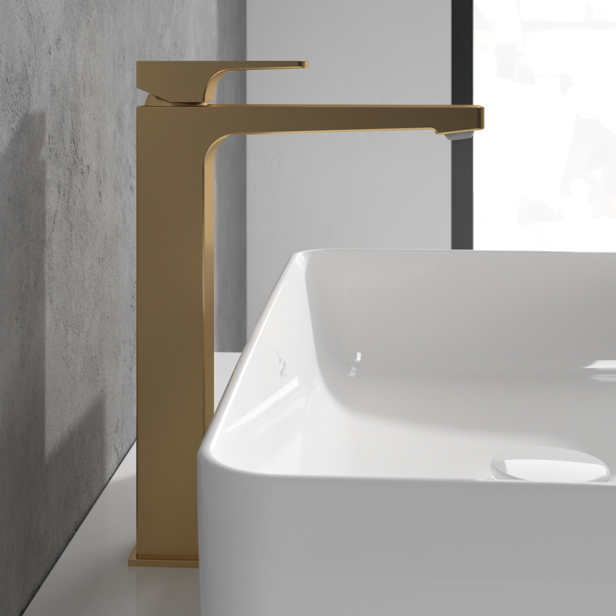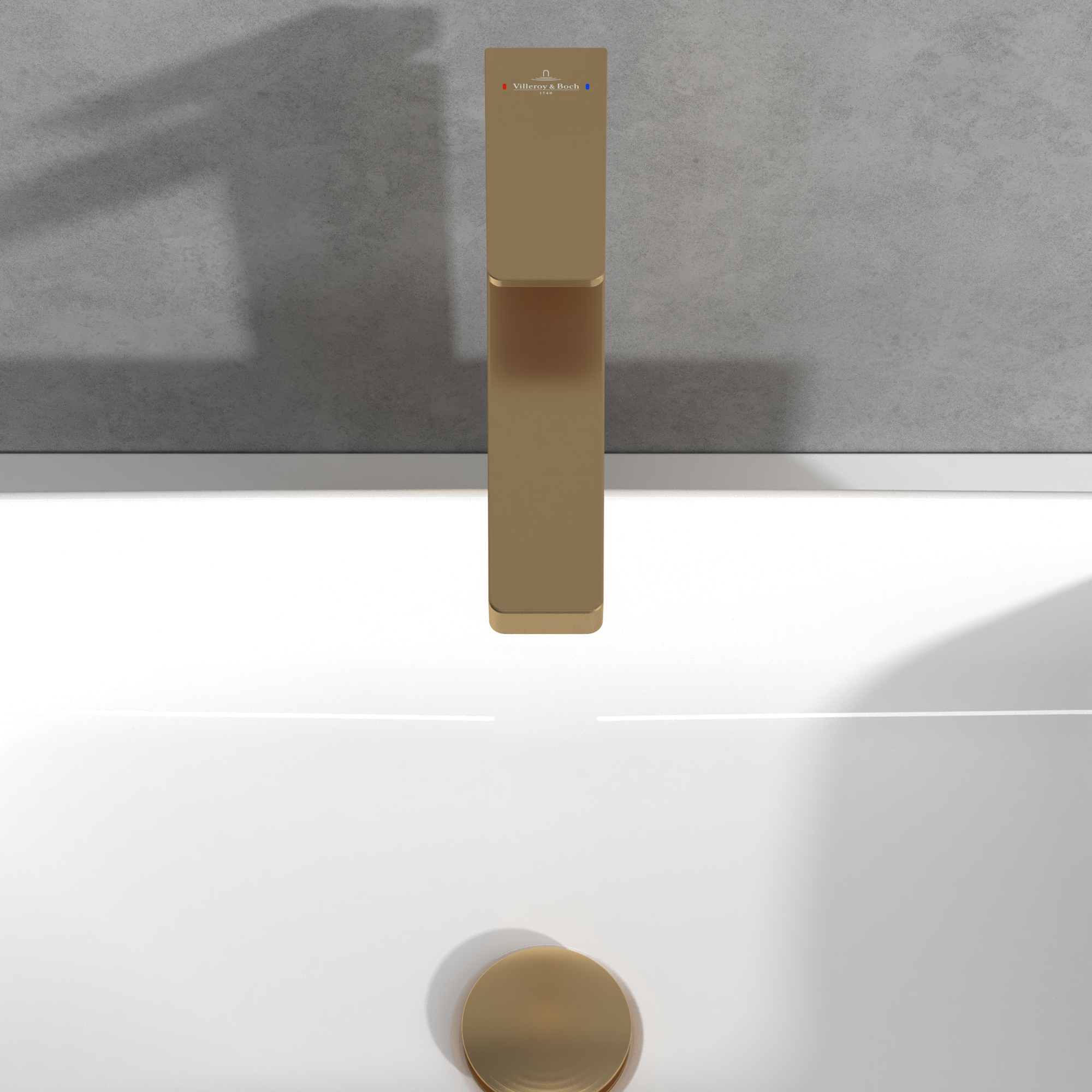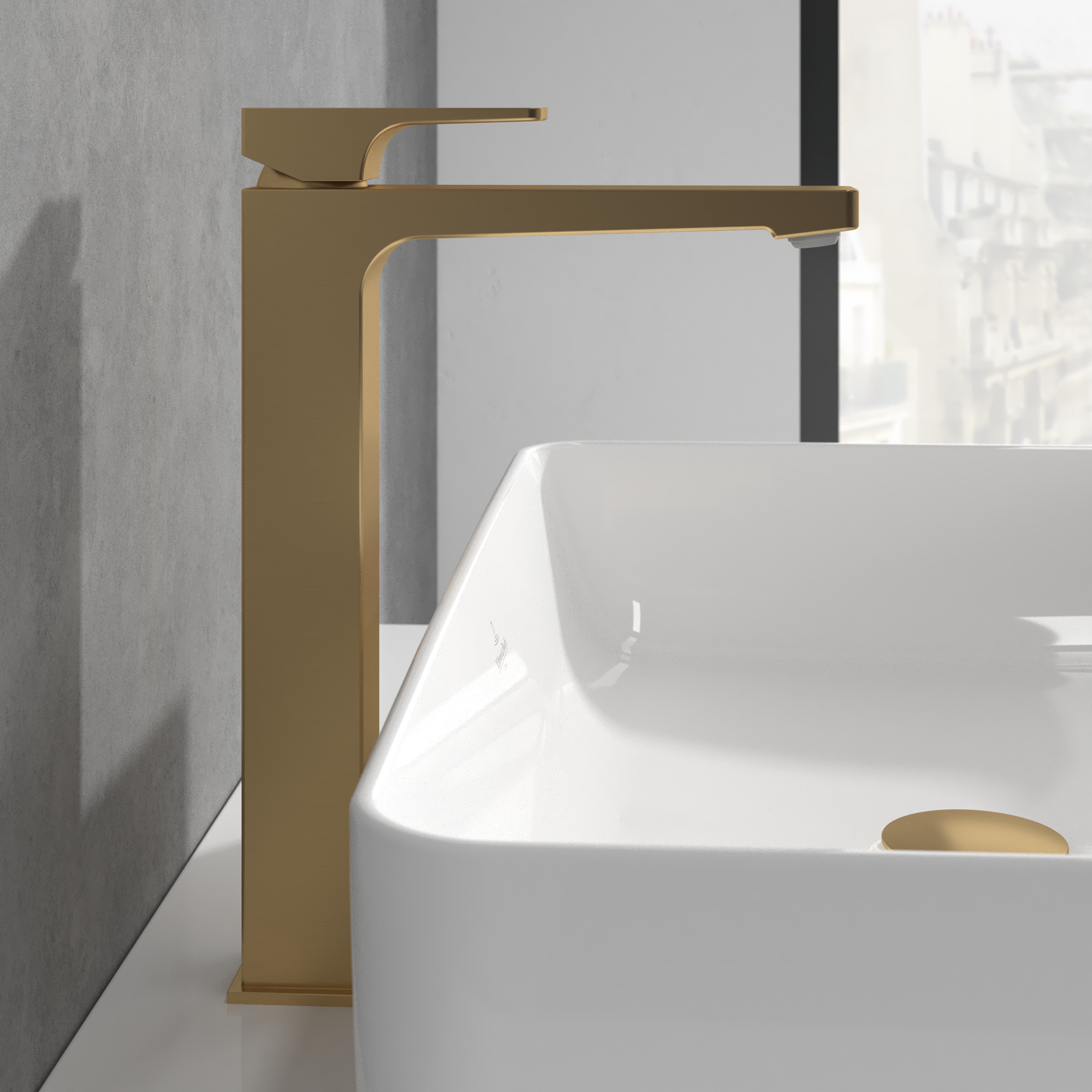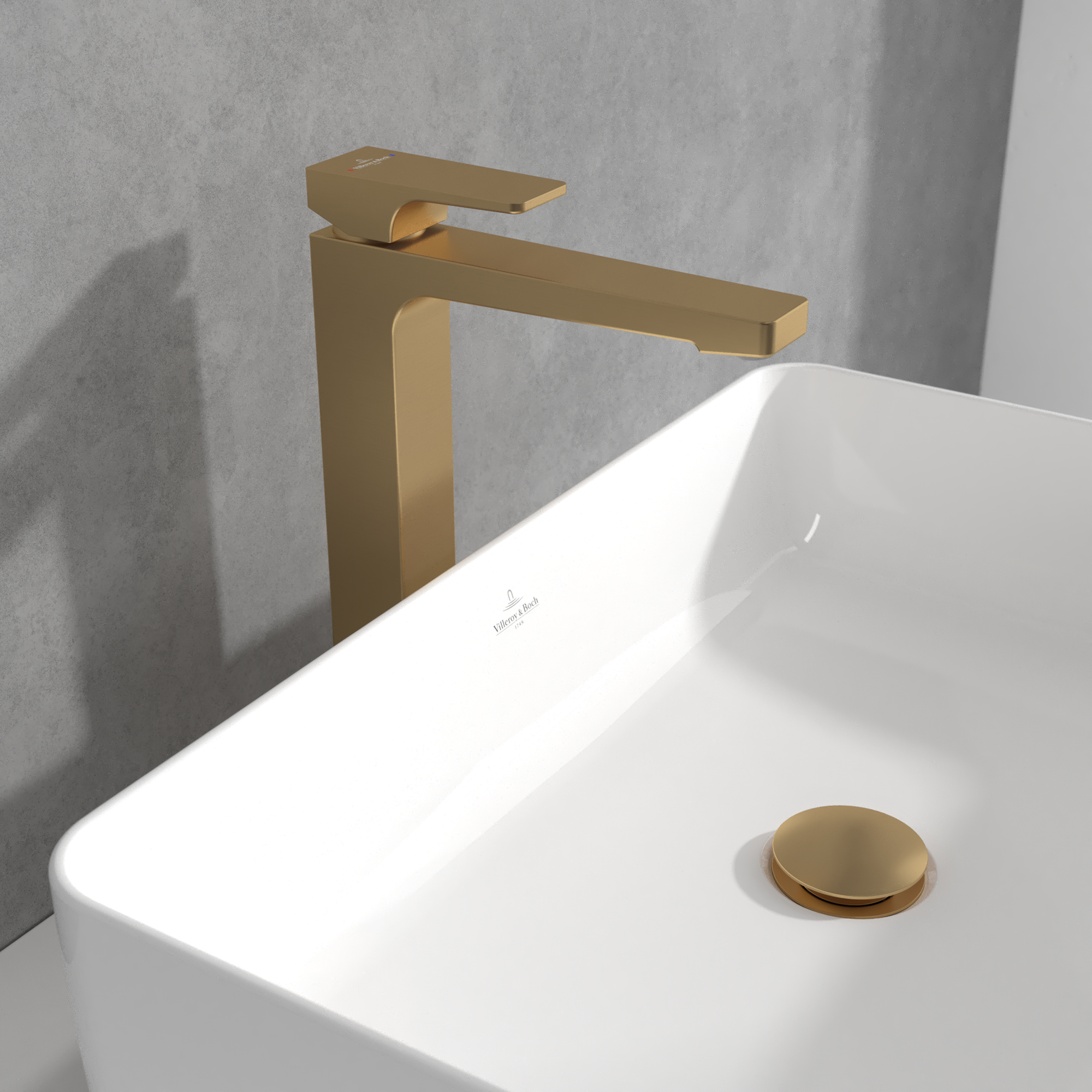 Architectura Square Tall single-lever basin mixer, With push-open waste, Brushed Gold