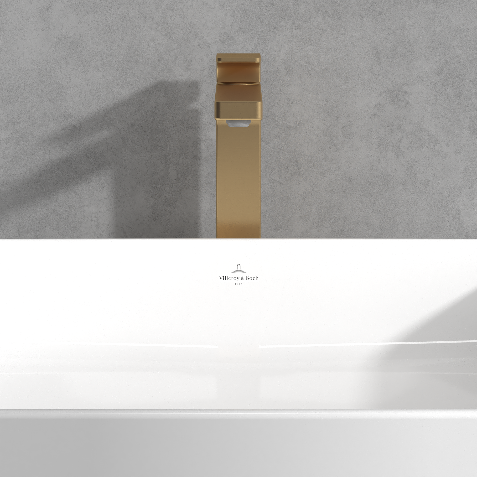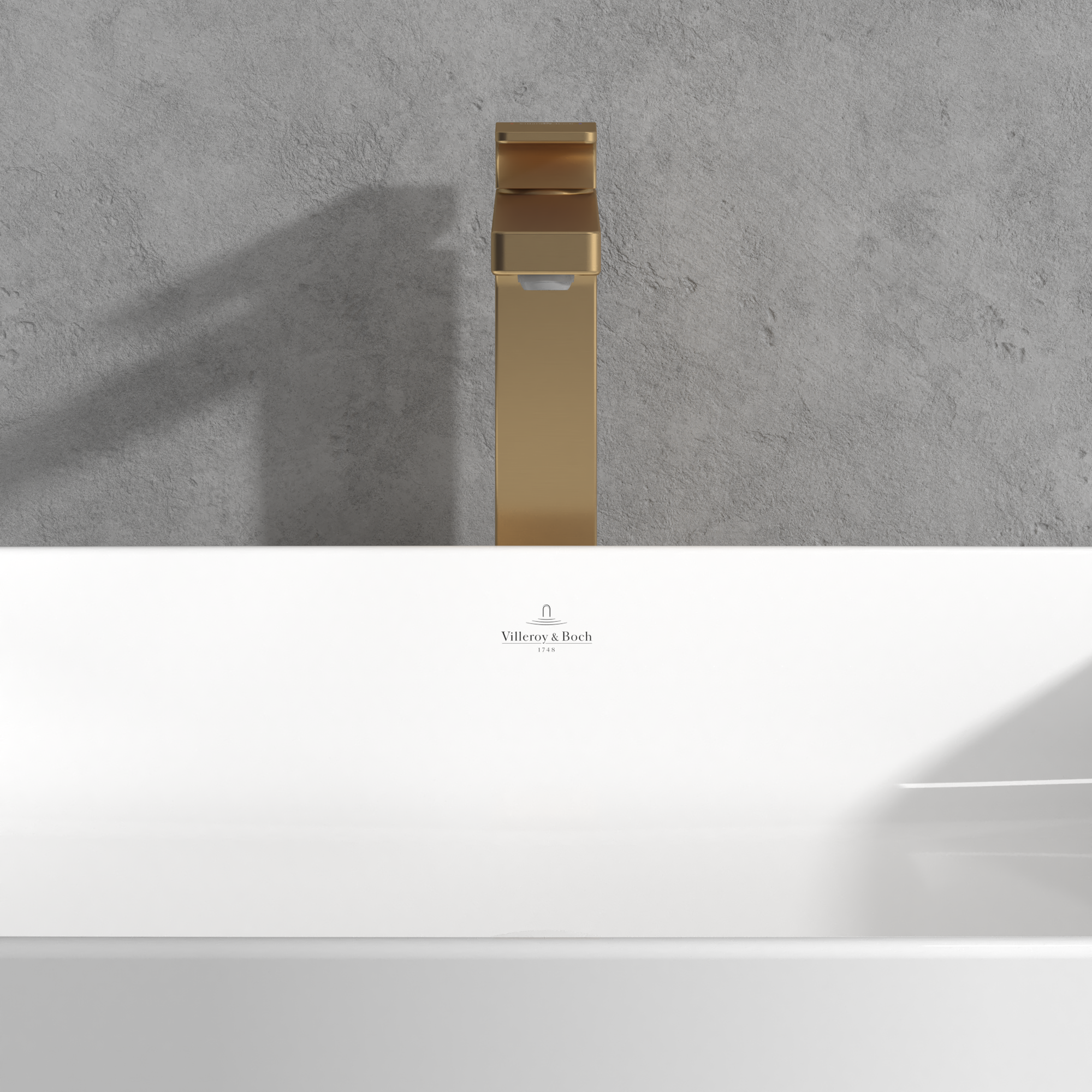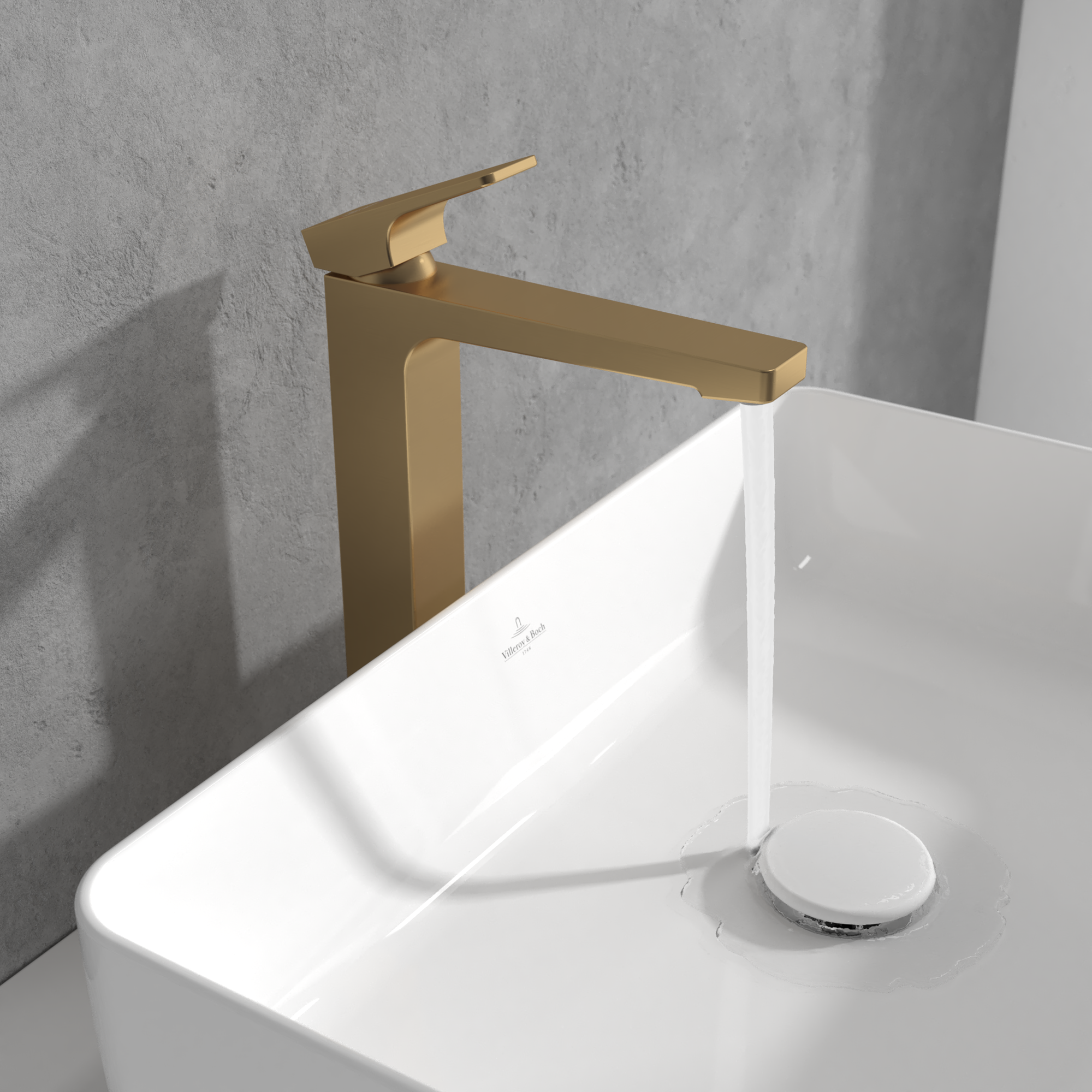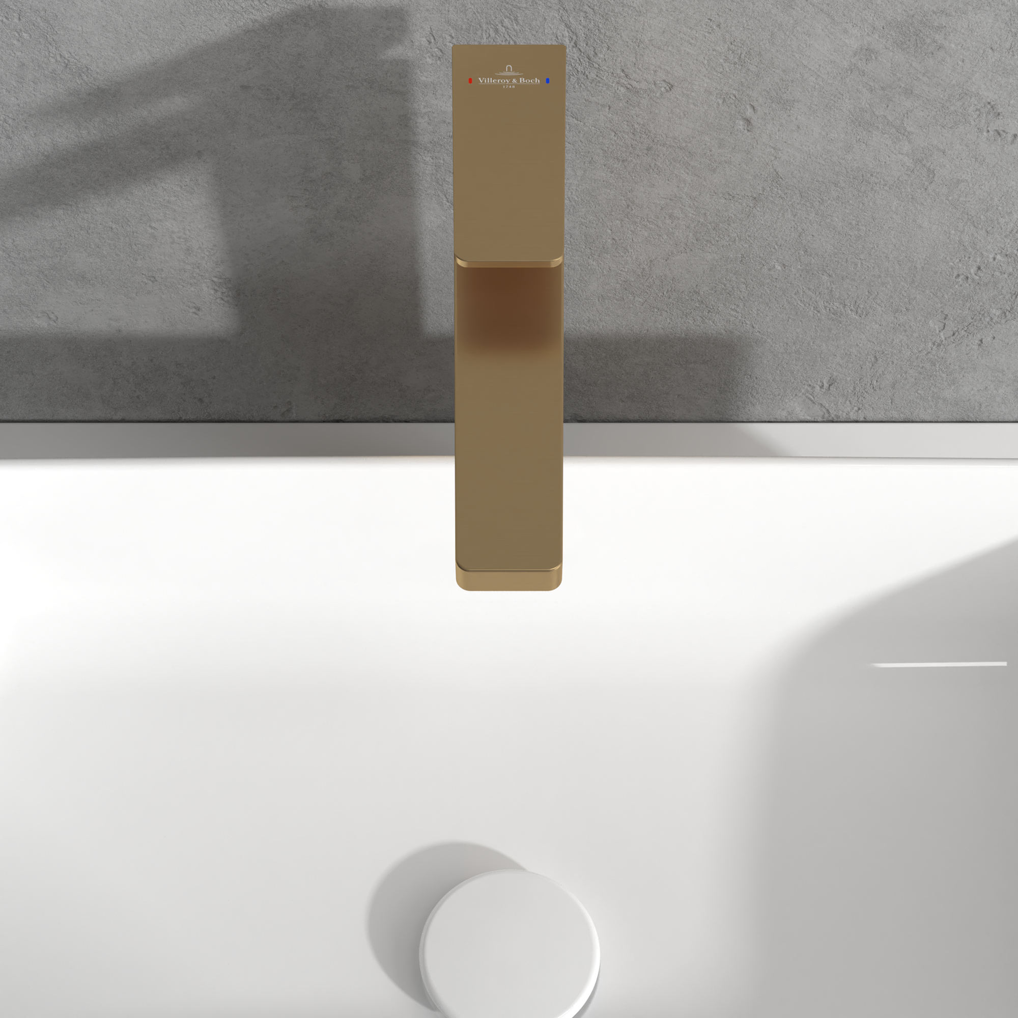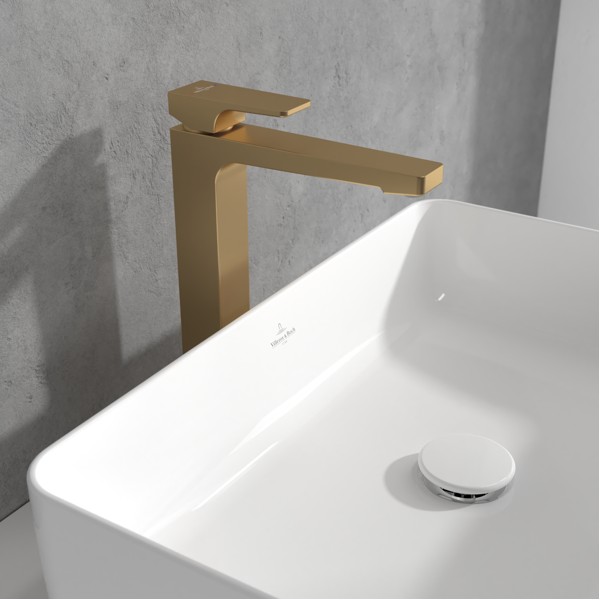 Architectura Square Tall single-lever basin mixer, With push-open waste, Brushed Gold