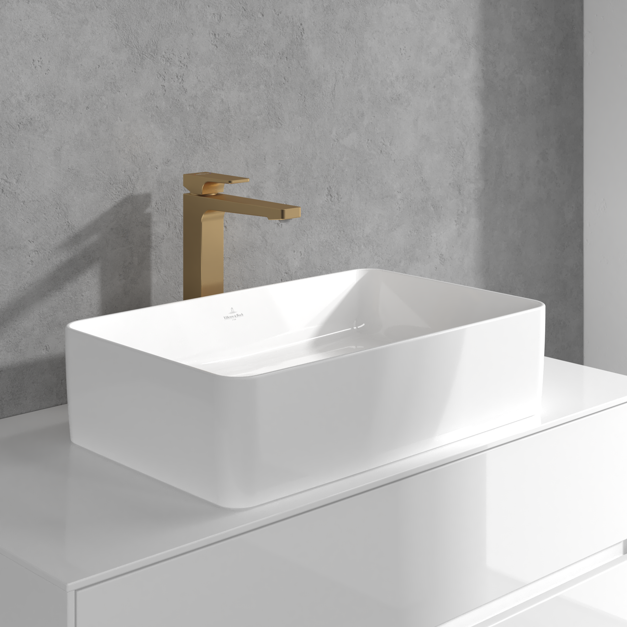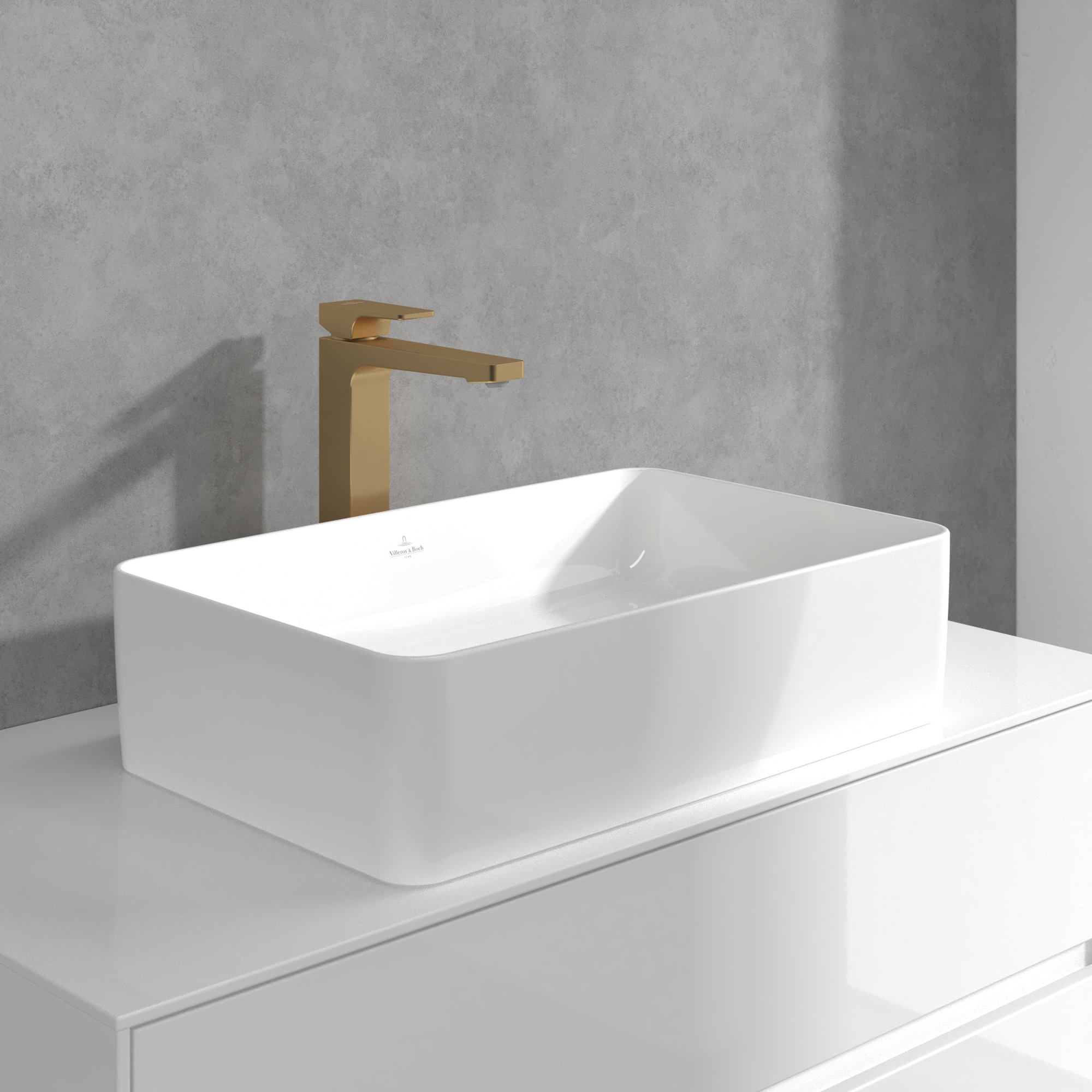 Practical tap fitting height, ideal for combination with surface-mounted washbasins