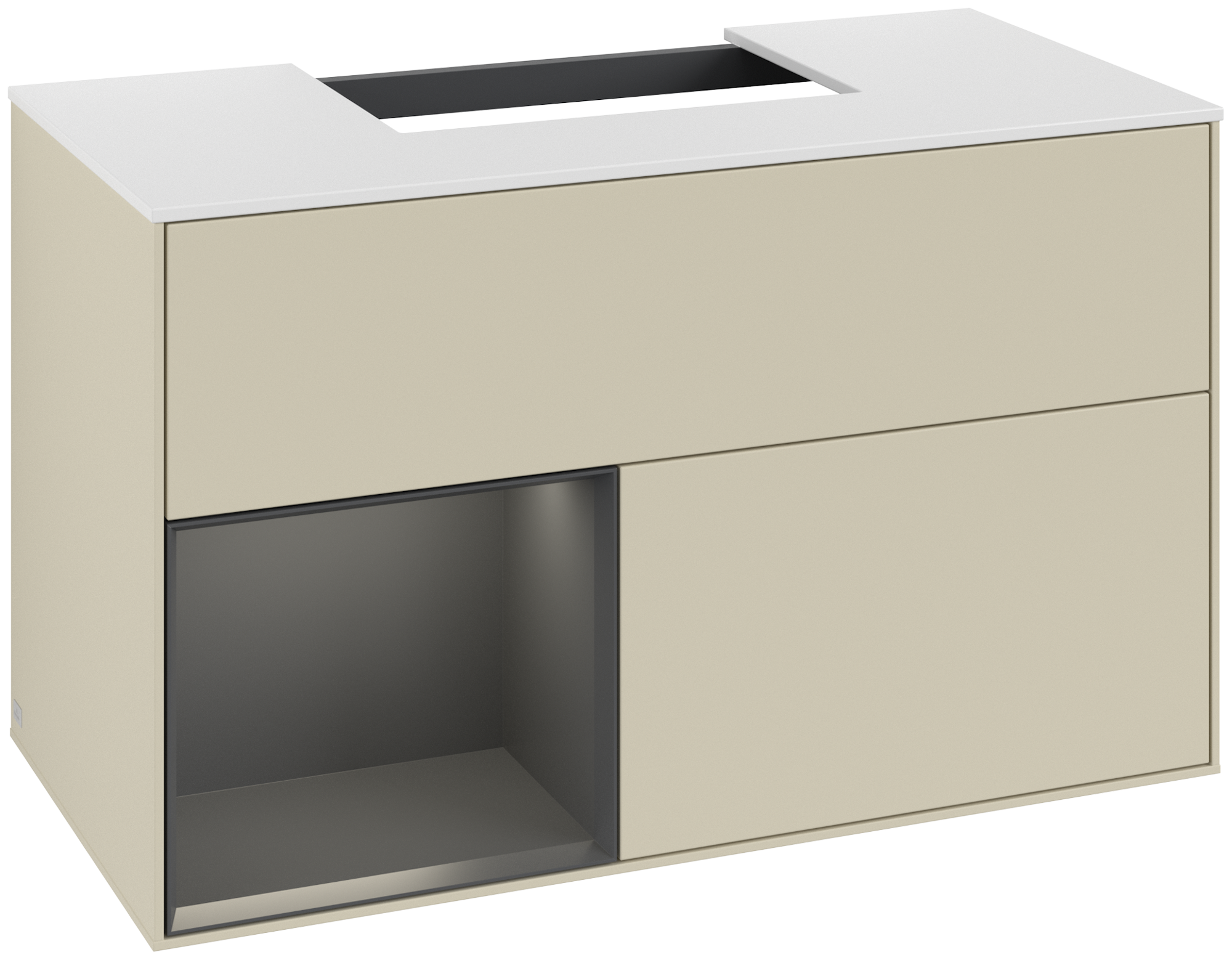 Finion Vanity unit, with lighting, 2 pull-out compartments, 1000x603x501mm, Body: Silk Grey Matt Lacquer, Front: Silk Grey Matt Lacquer, Shelf: Anthracite Matt Lacquer, Cover plate: Glass White Matt