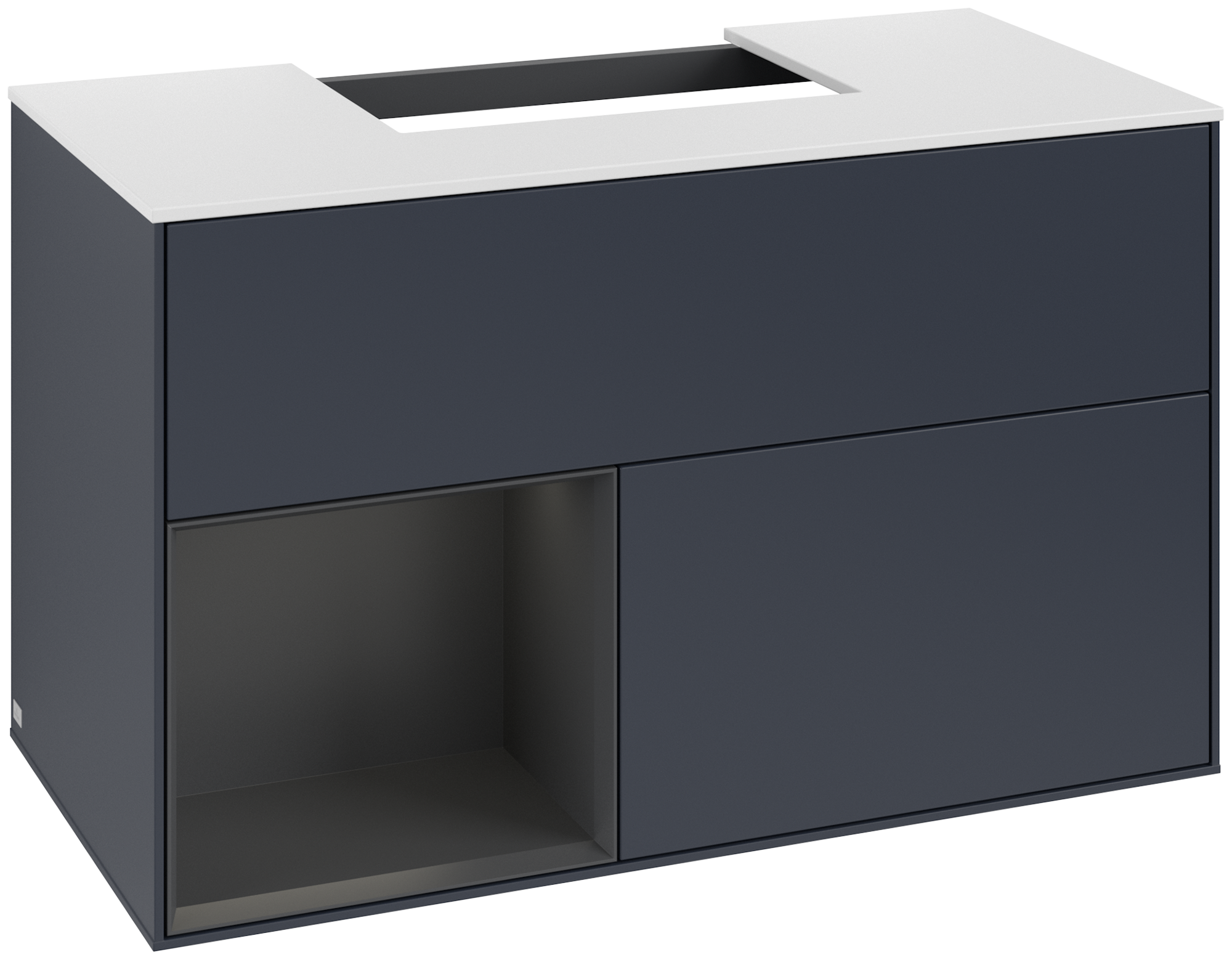 Finion Vanity unit, with lighting, 2 pull-out compartments, 1000x603x501mm, Body: Midnight Blue Matt Lacquer, Front: Midnight Blue Matt Lacquer, Shelf: Silk Grey Matt Lacquer, Cover plate: Glass White Matt