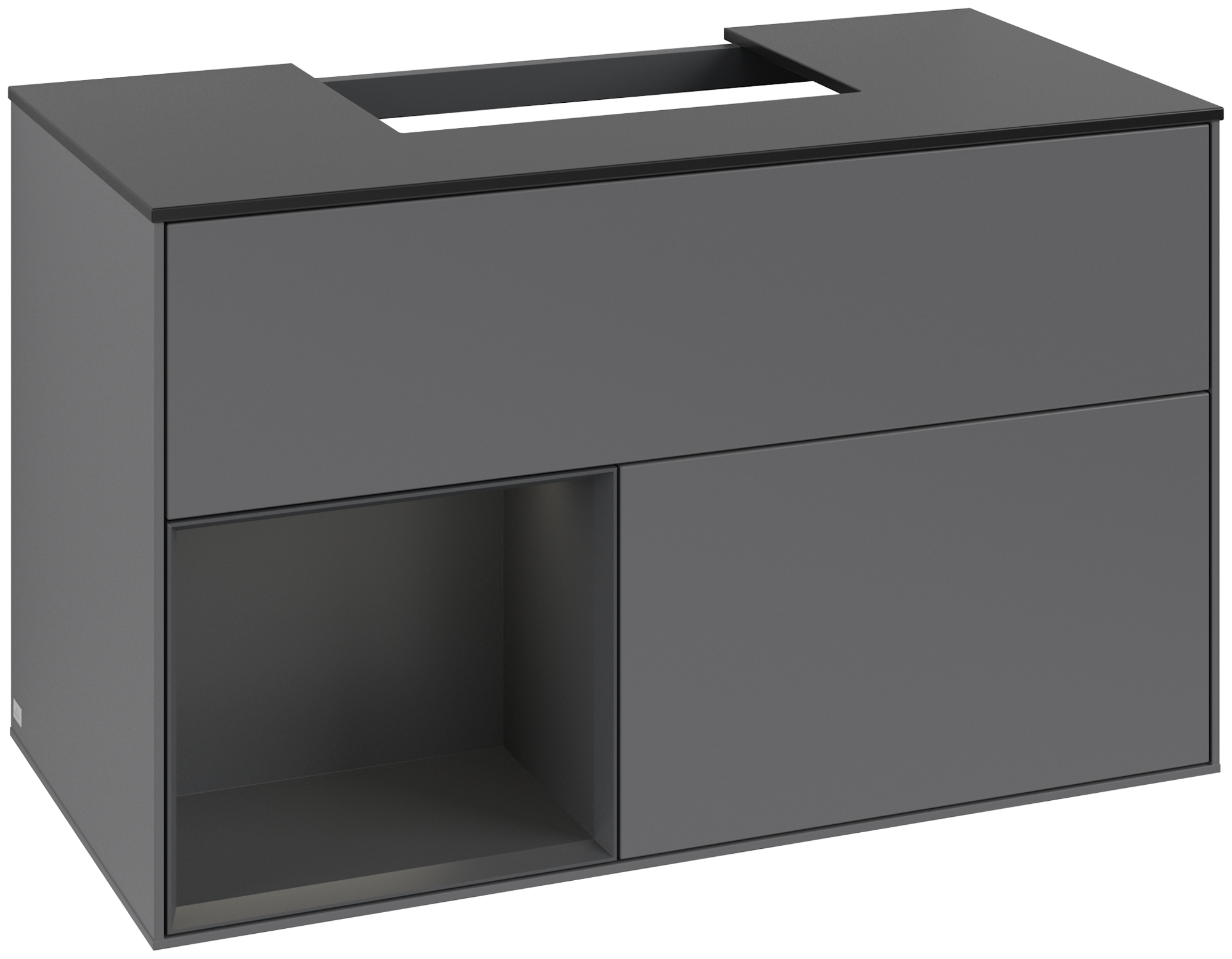 Finion Vanity unit, with lighting, 2 pull-out compartments, 1000x603x501mm, Body: Anthracite Matt Lacquer, Front: Anthracite Matt Lacquer, Shelf: Silk Grey Matt Lacquer, Cover plate: Glass Black Matt