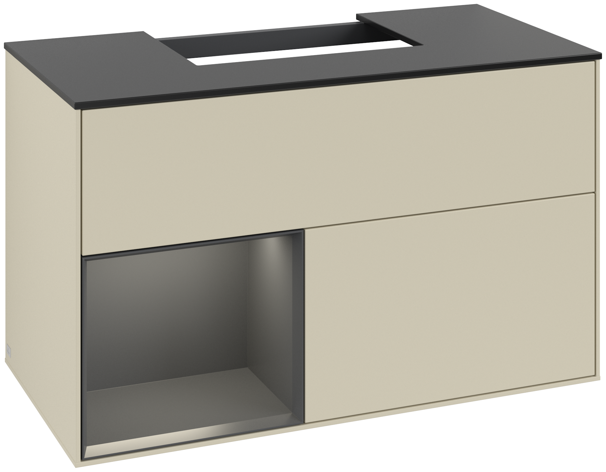 Finion Vanity unit, with lighting, 2 pull-out compartments, 1000x603x501mm, Body: Silk Grey Matt Lacquer, Front: Silk Grey Matt Lacquer, Shelf: Black Matt Lacquer, Cover plate: Glass Black Matt