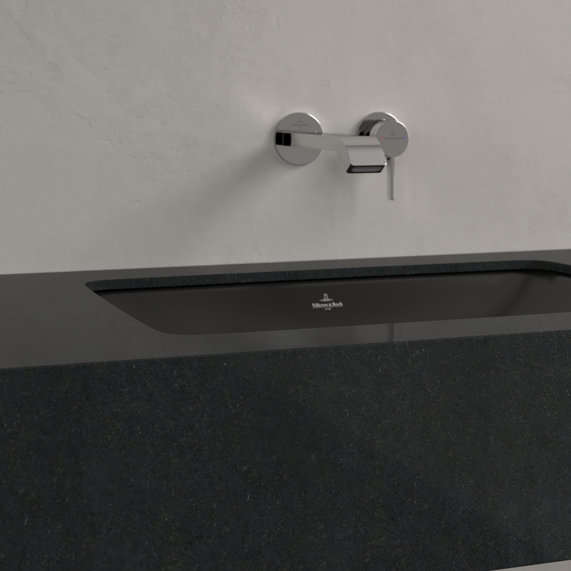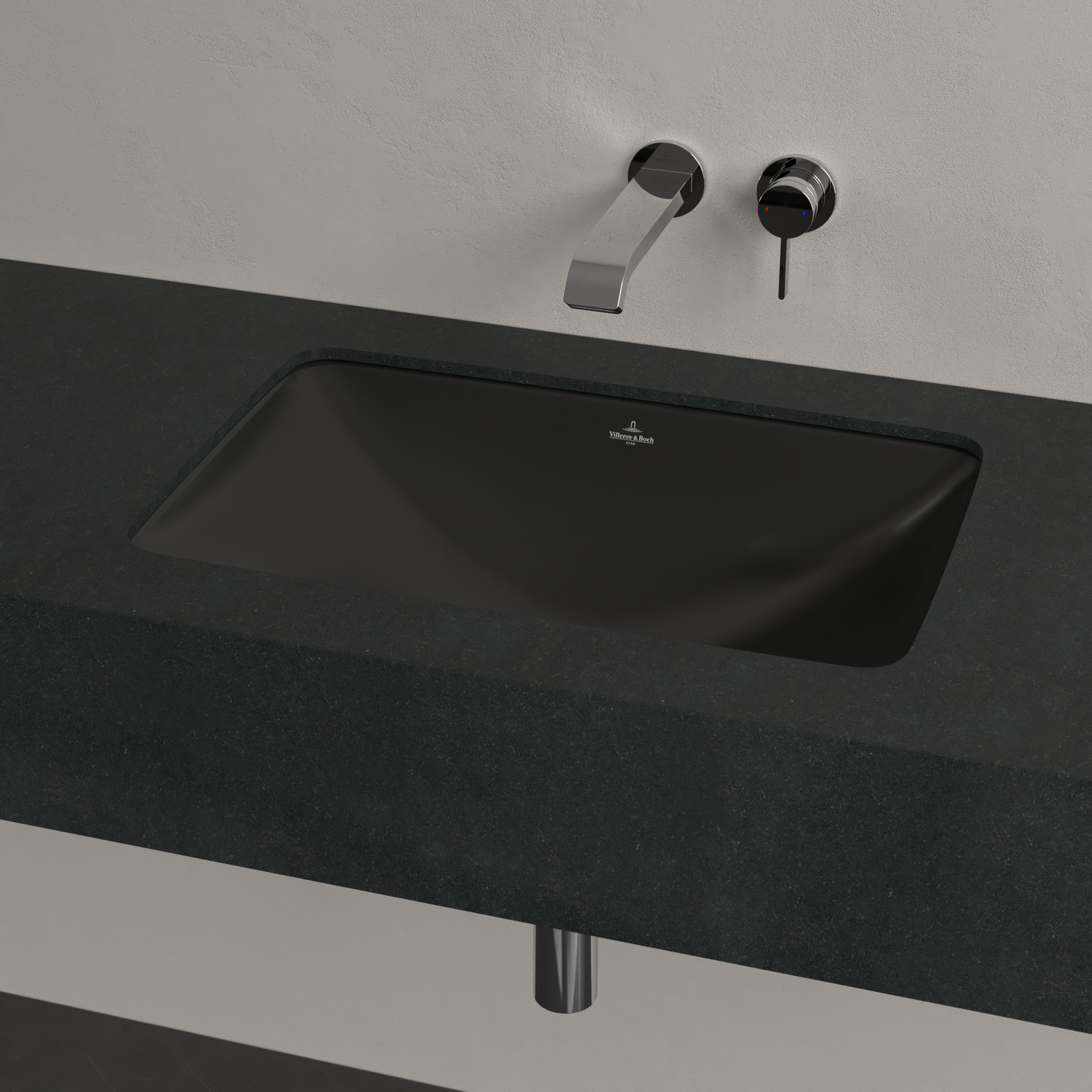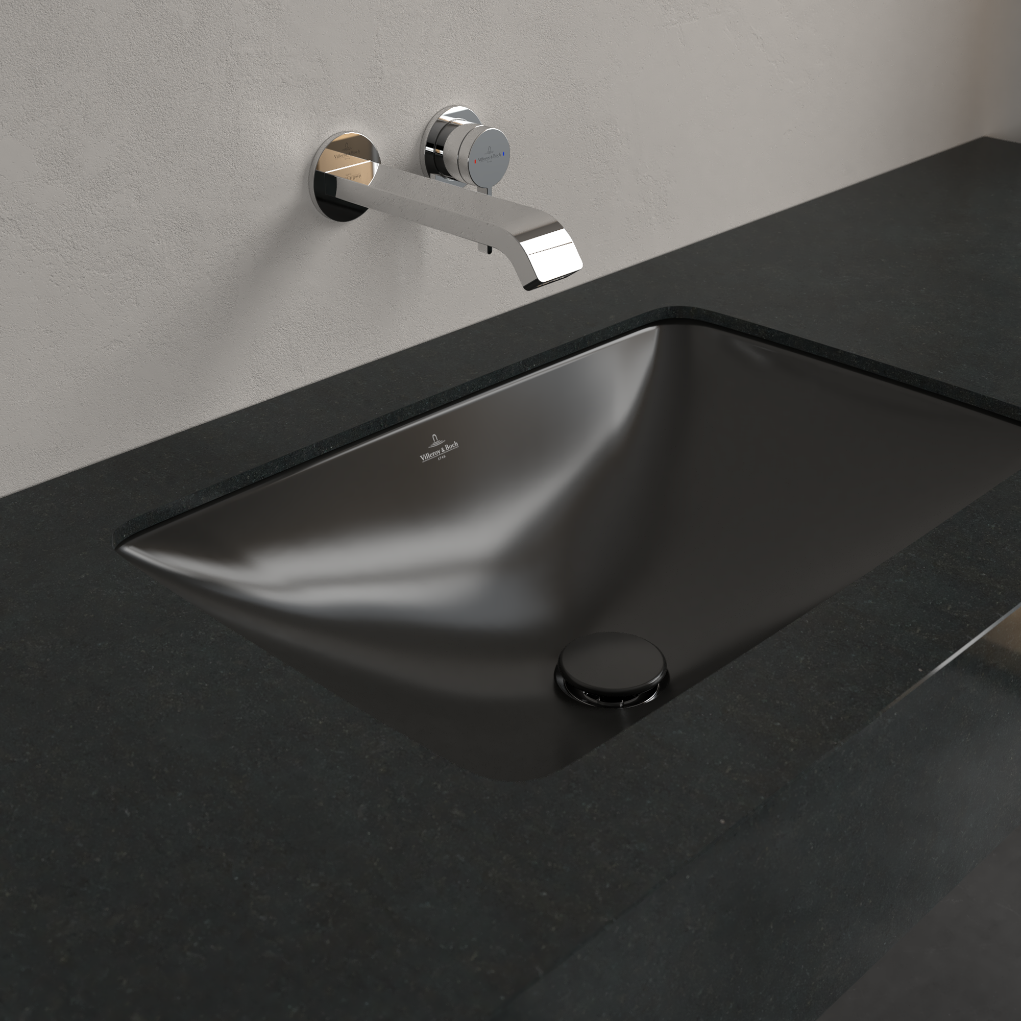 Loop & Friends Undercounter washbasin, 605x410x190mm, with overflow, Pure Black CeramicPlus