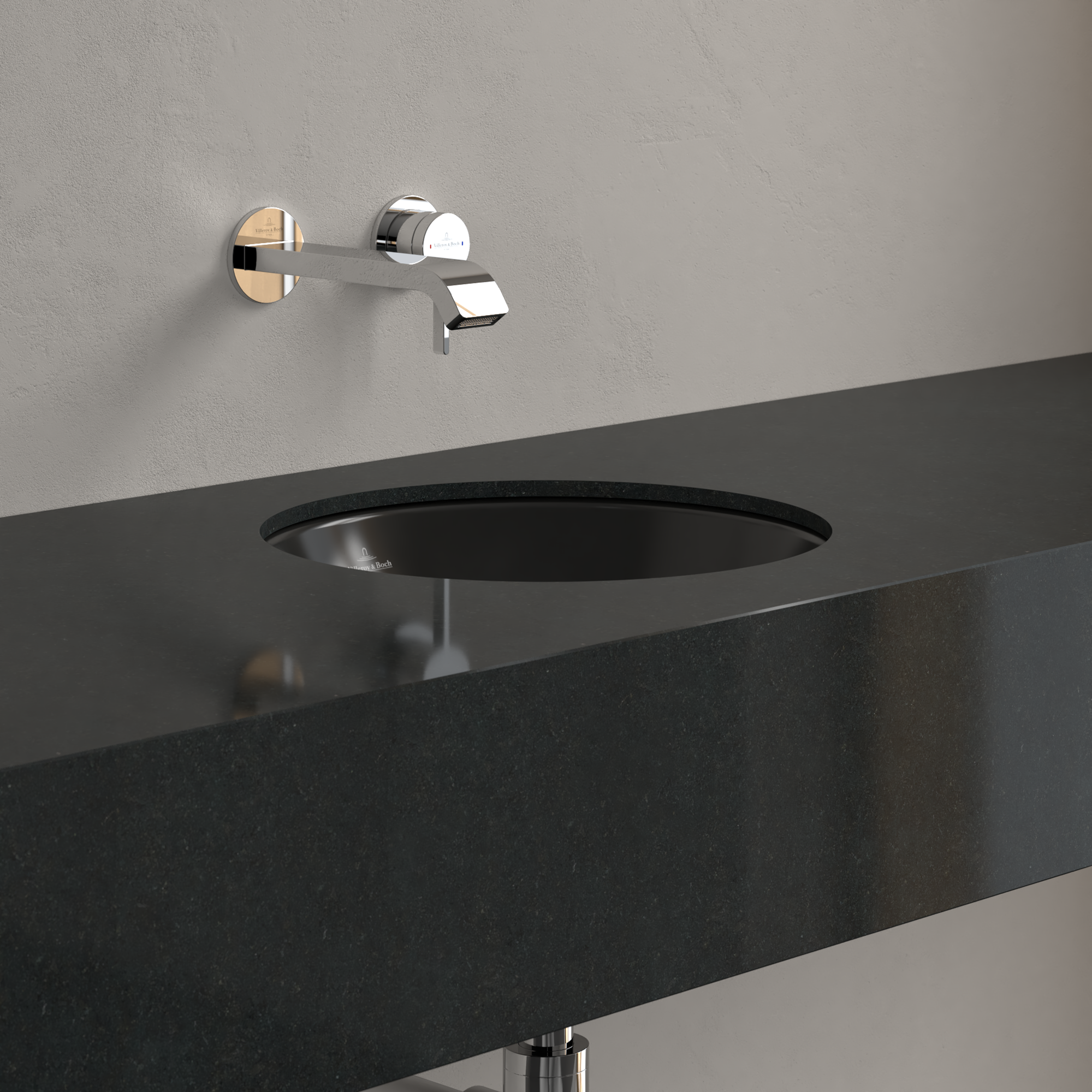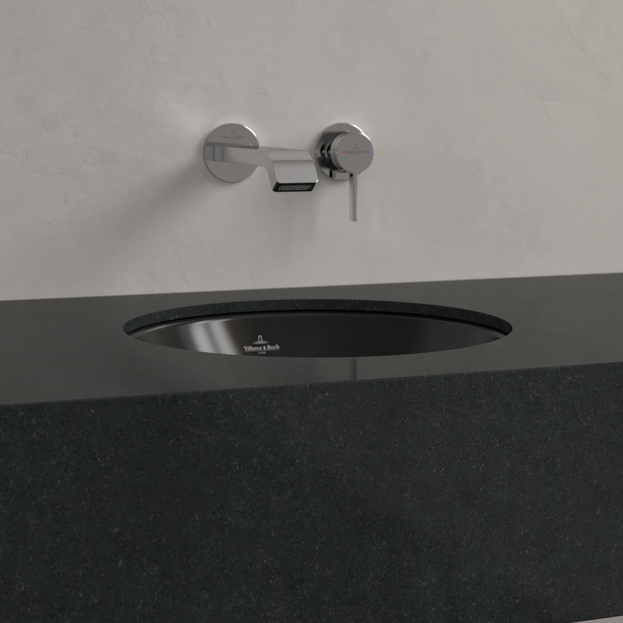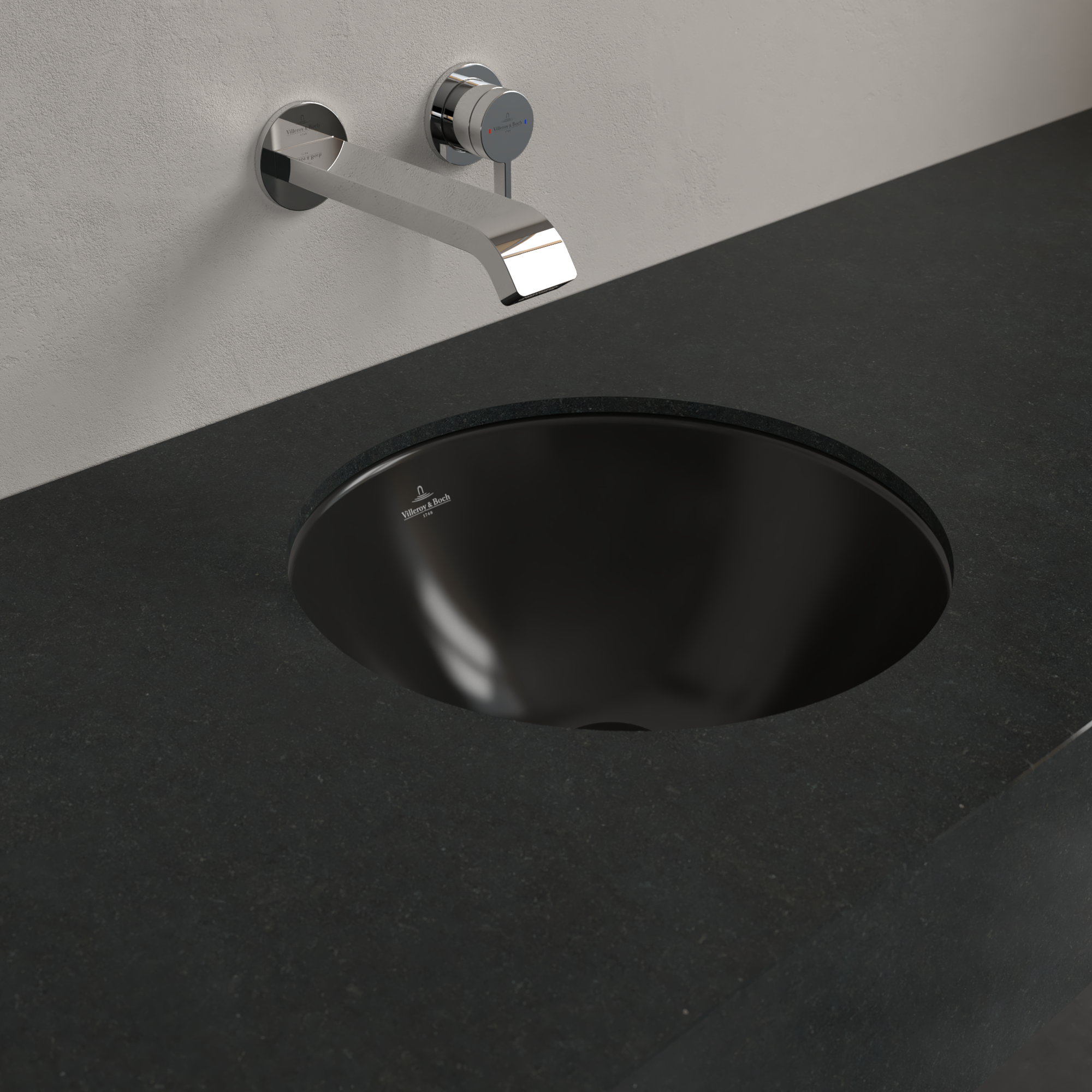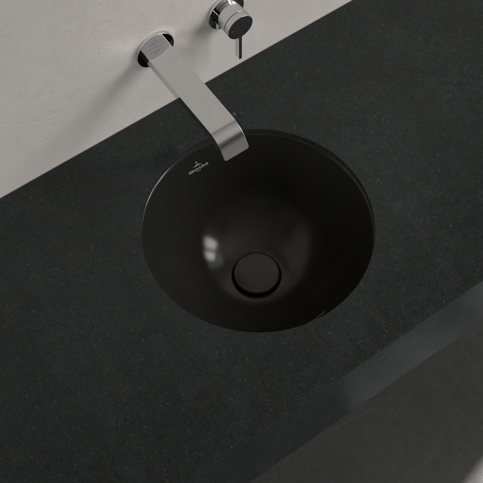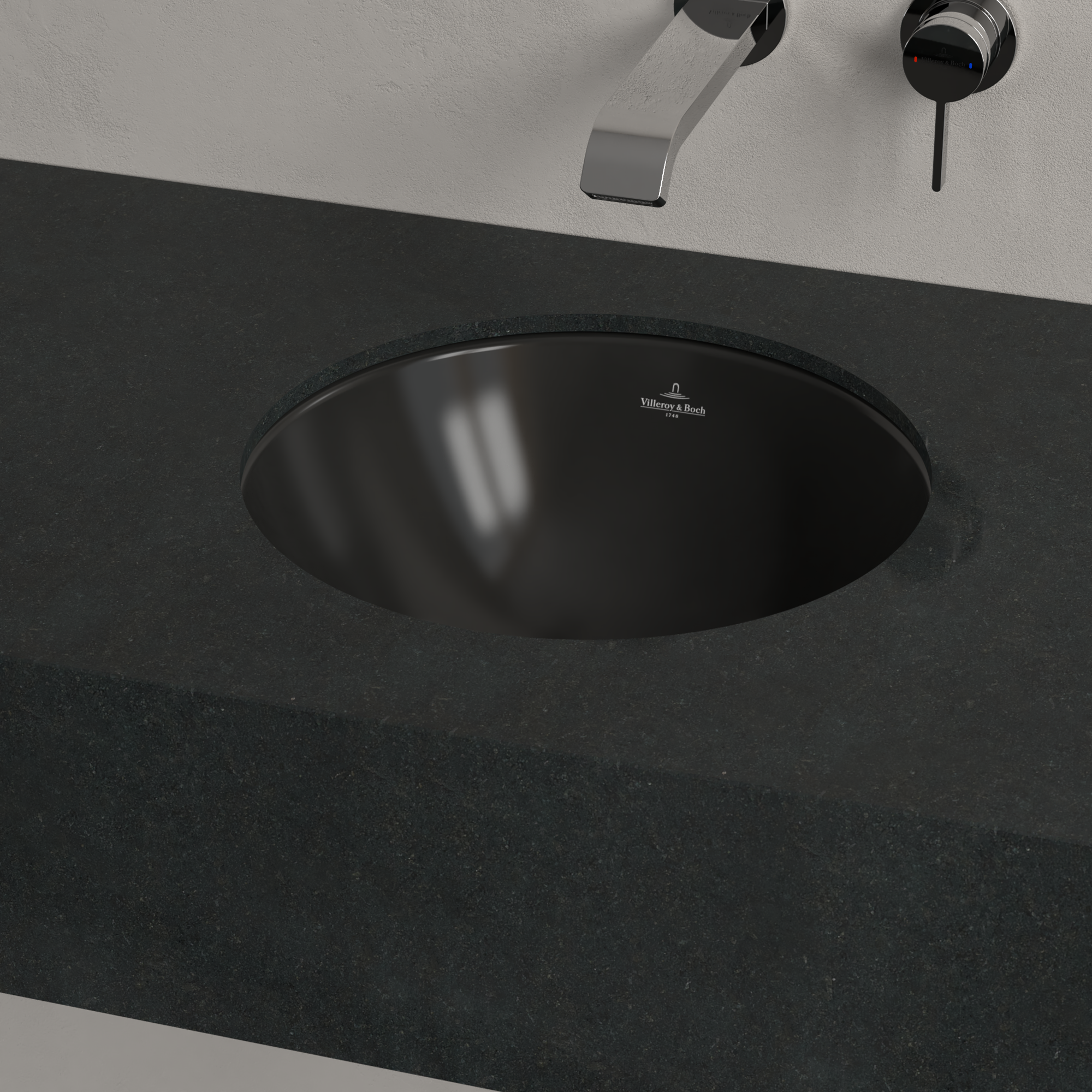 Loop & Friends Undercounter washbasin, 390x390x190mm, with overflow, Pure Black CeramicPlus