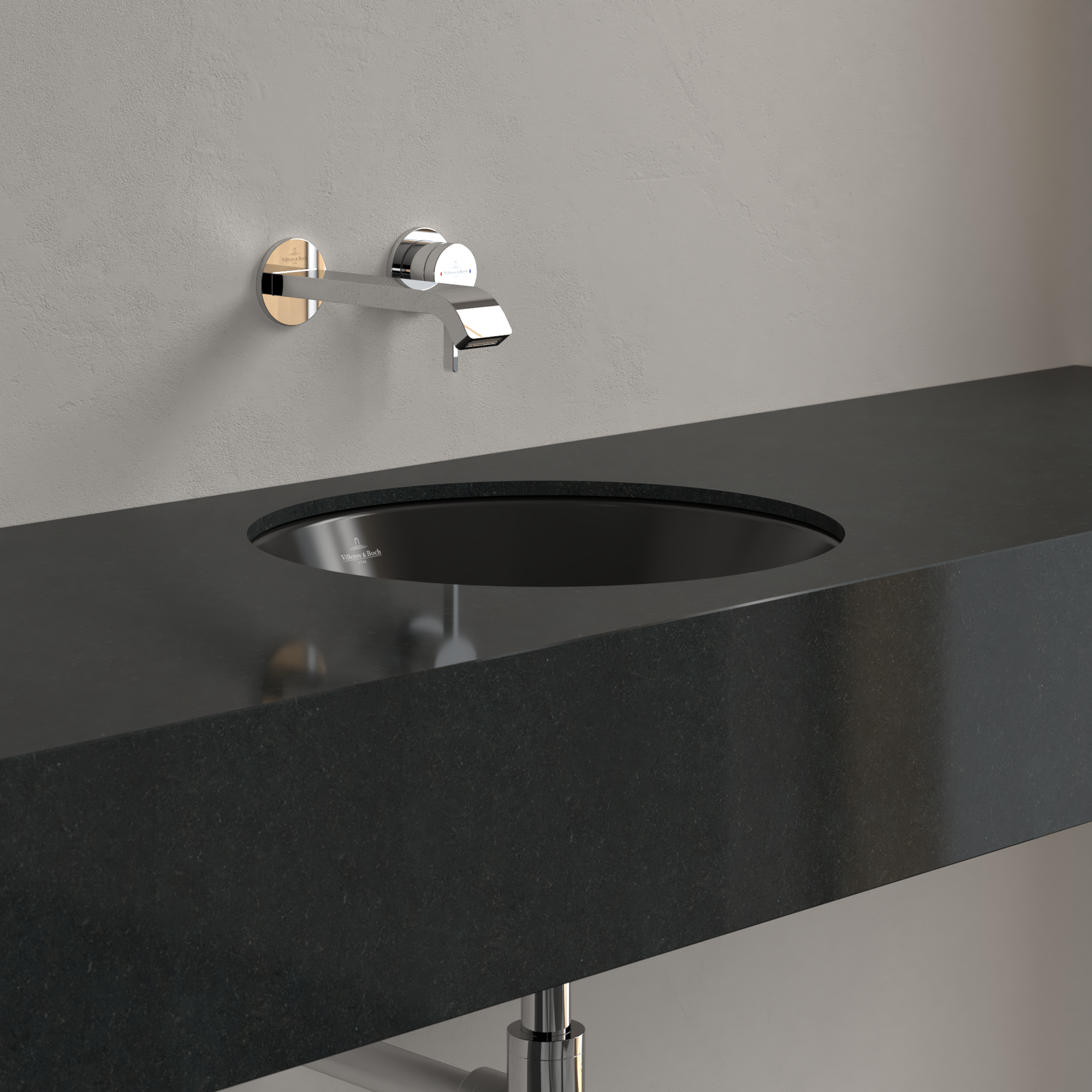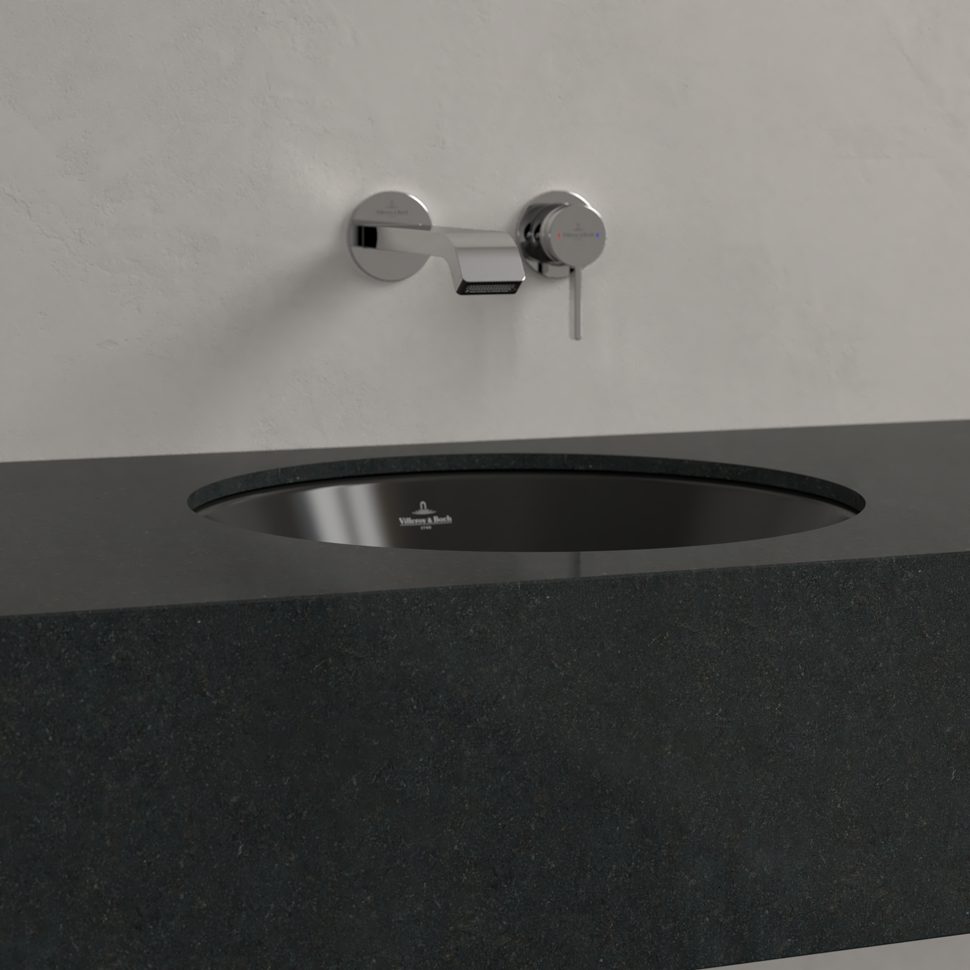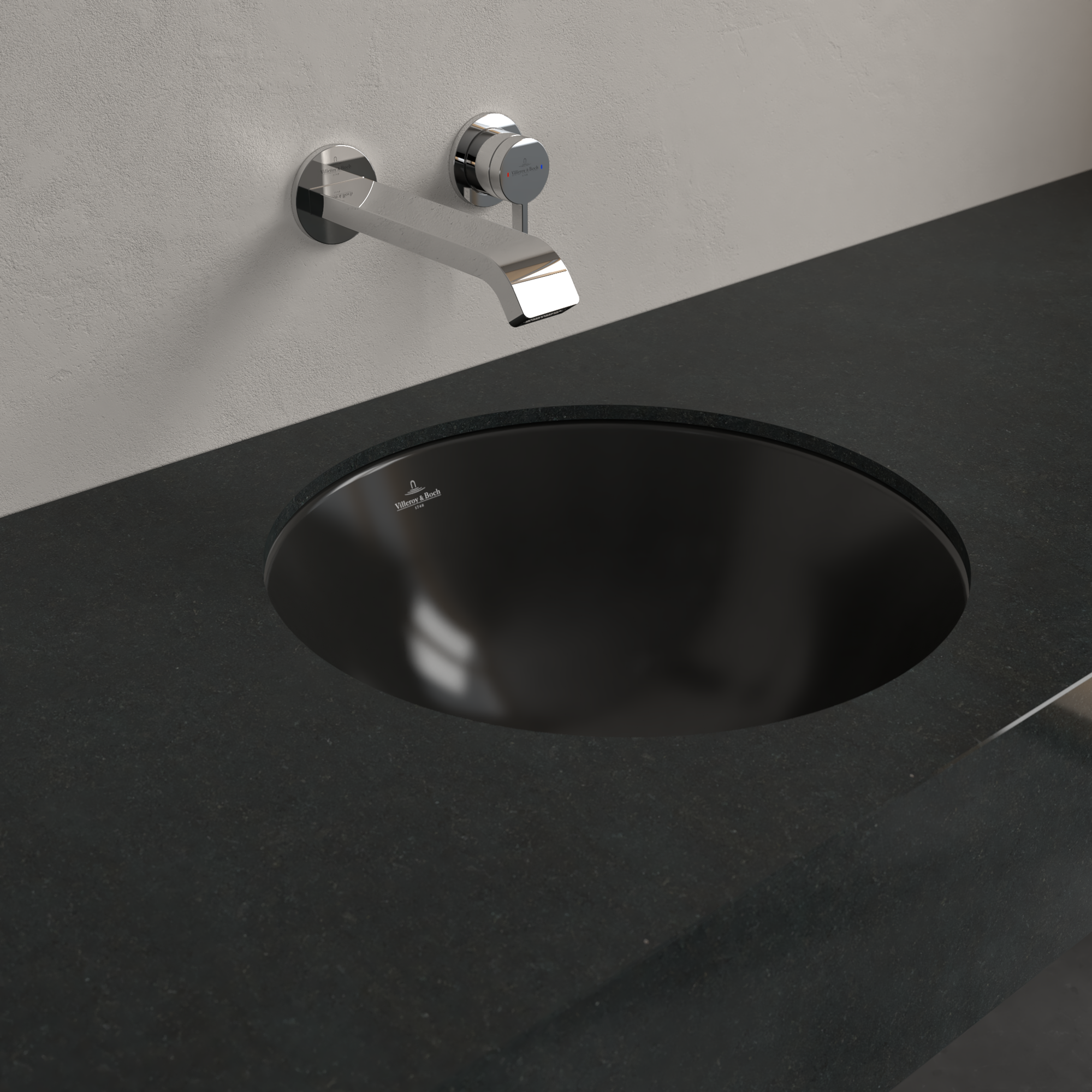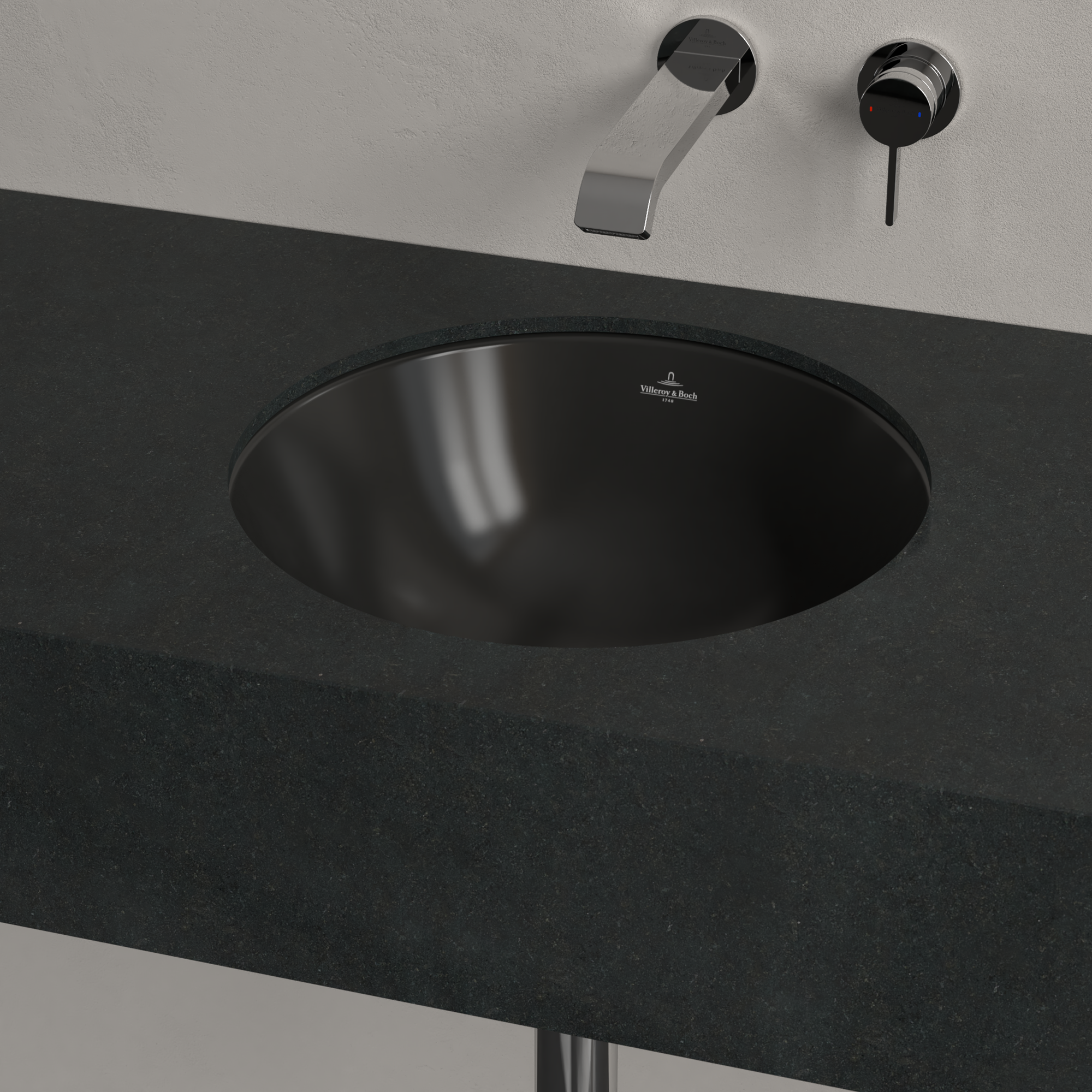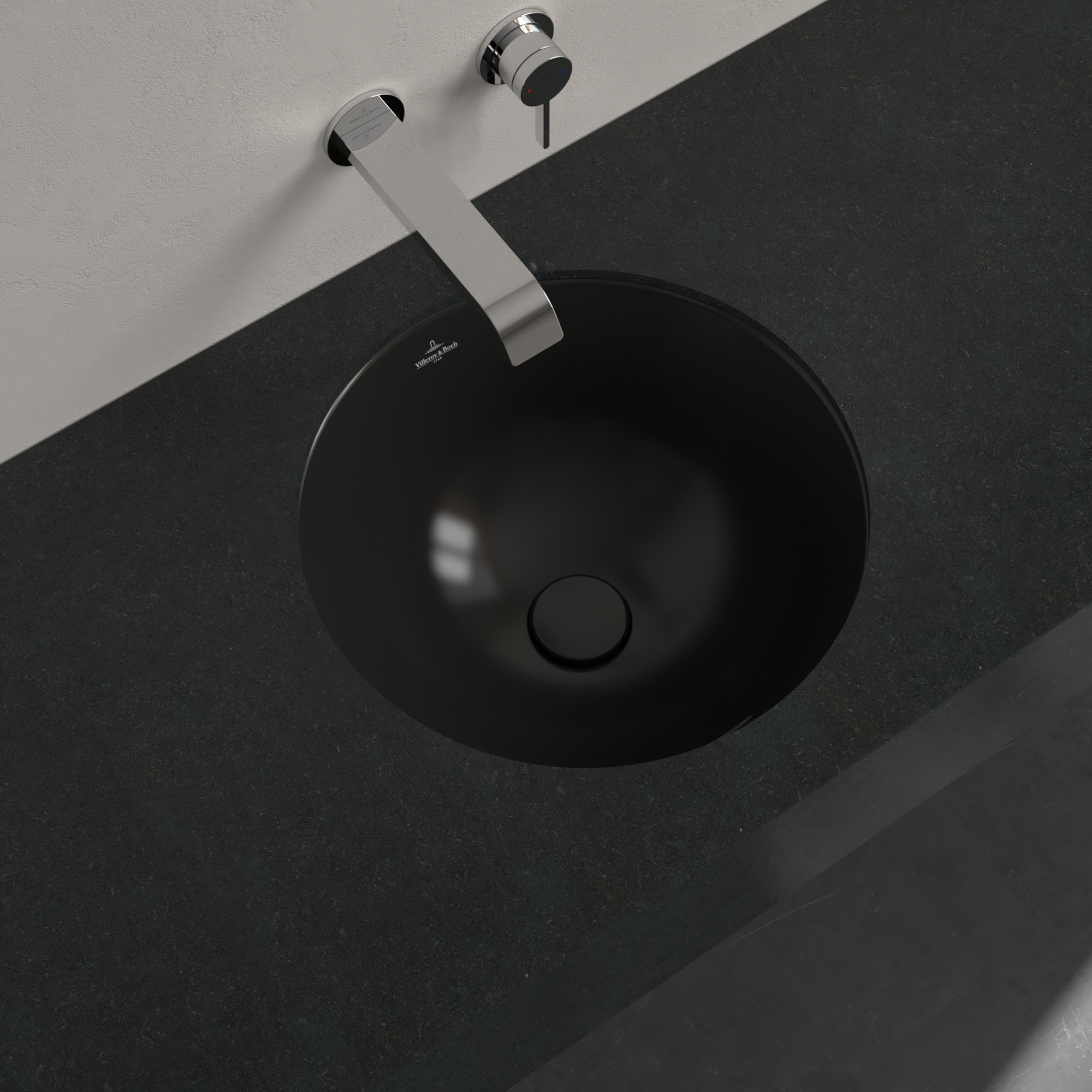 Loop & Friends Undercounter washbasin, 450x450x210mm, with overflow, Pure Black CeramicPlus