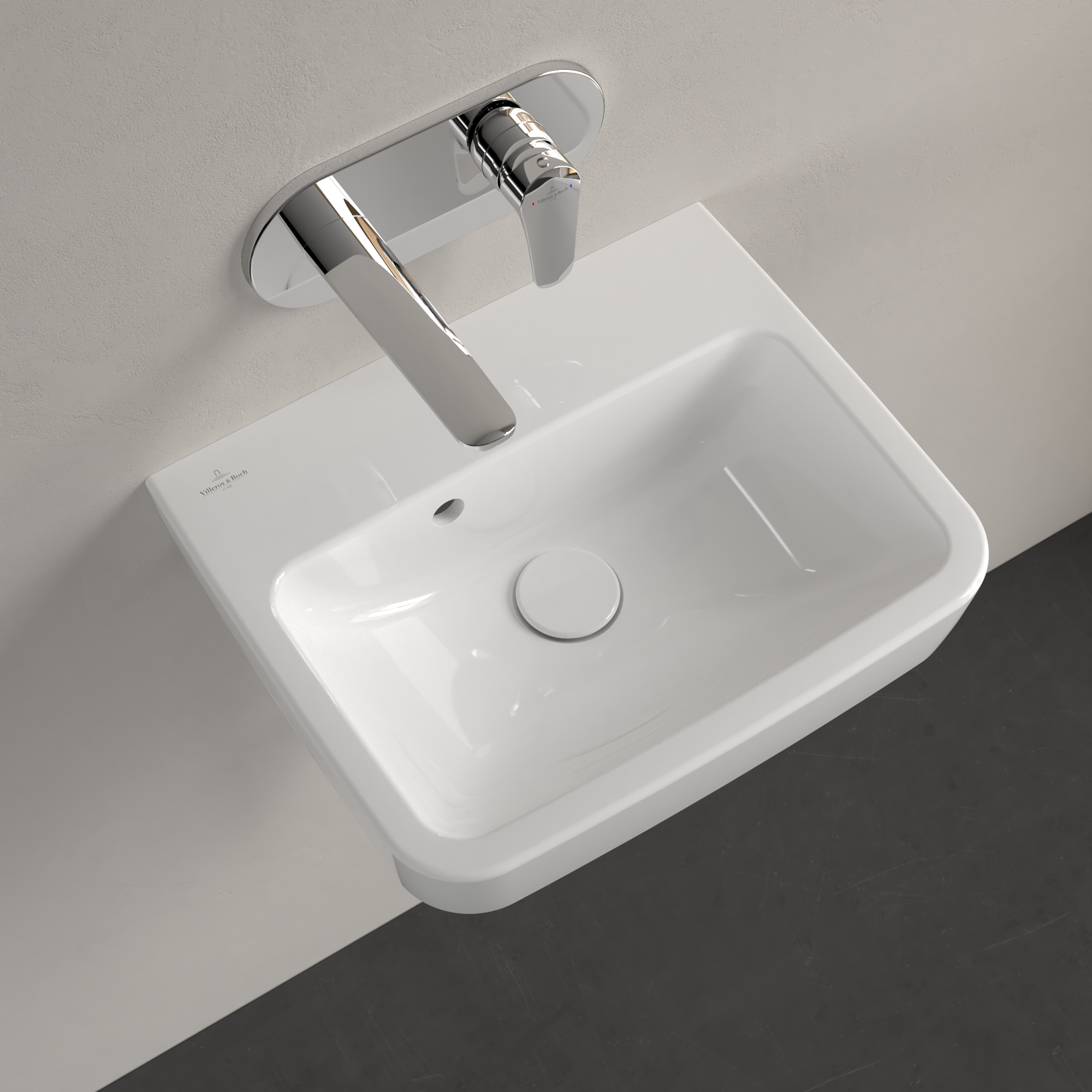 O.novo Handwashbasin, 450x370x160mm, with overflow, White Alpin CeramicPlus
