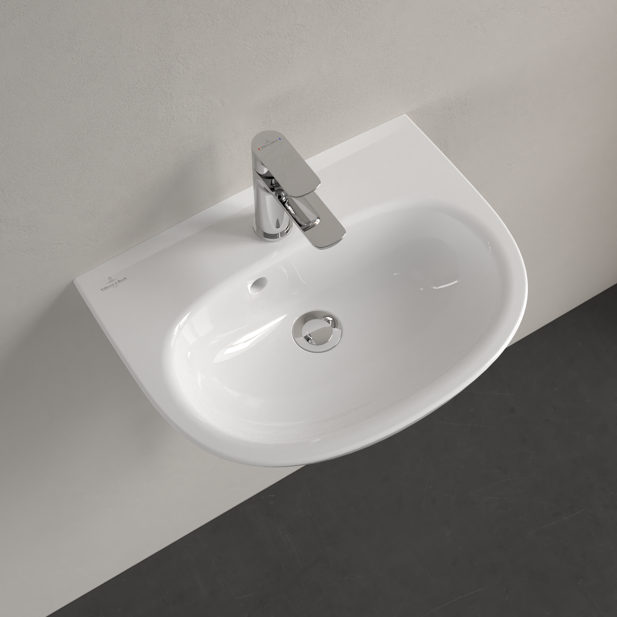 O.novo Handwashbasin, 500x380x160mm, with overflow, White Alpin CeramicPlus