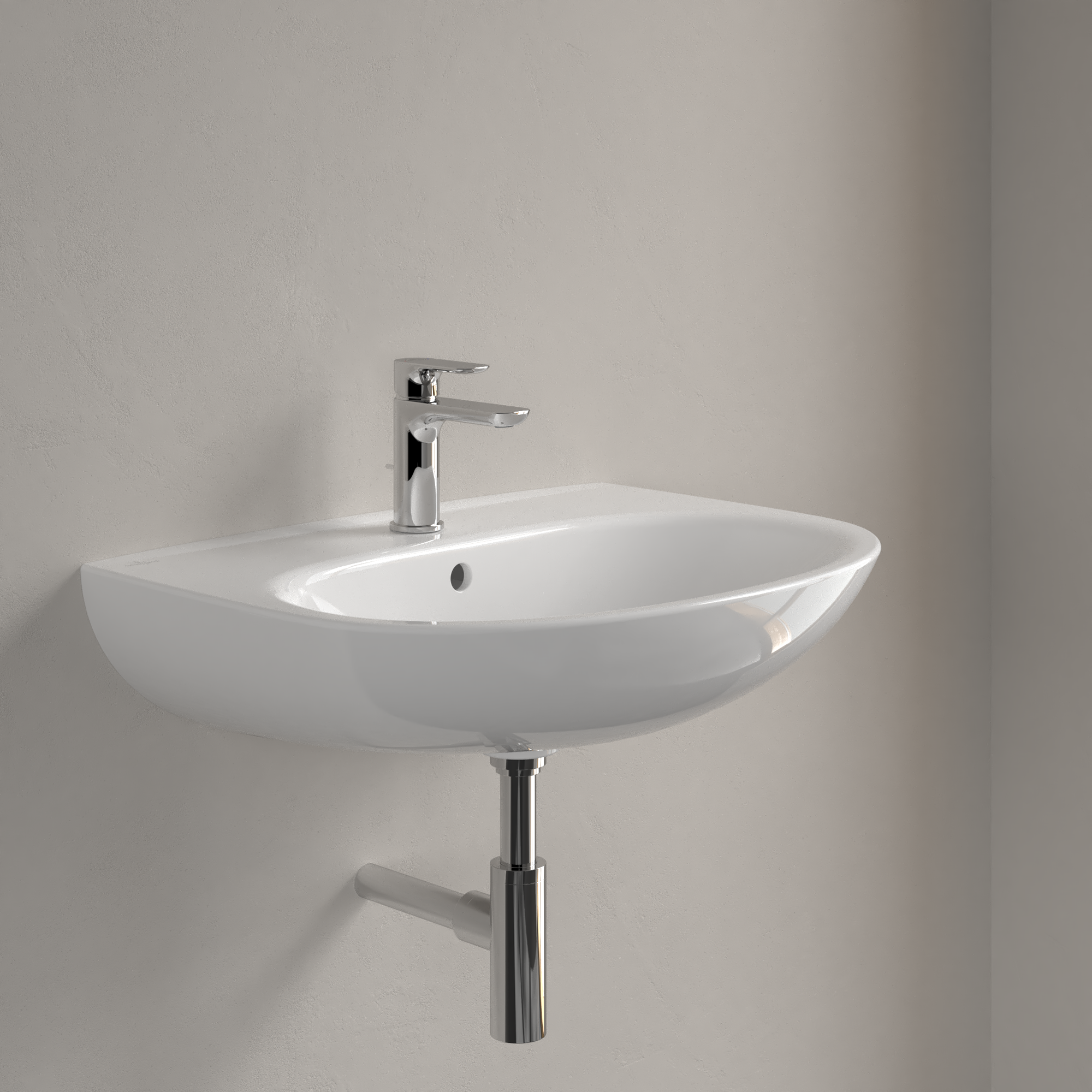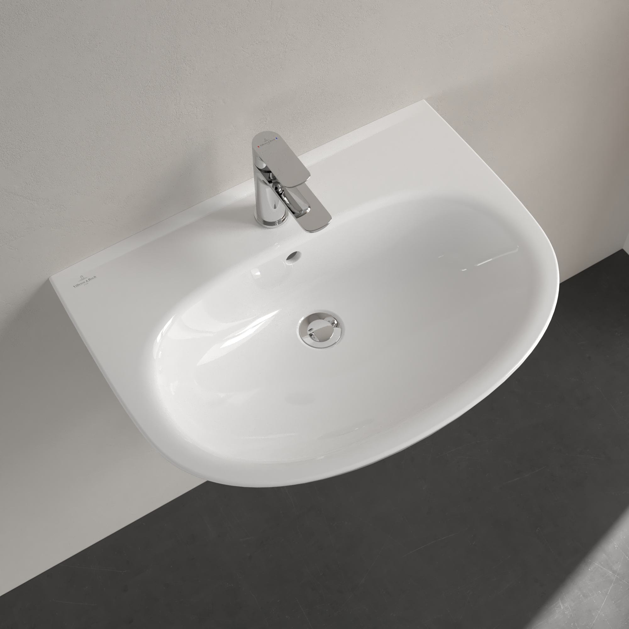 O.novo Washbasin, 650x480x180mm, with overflow, White Alpin CeramicPlus