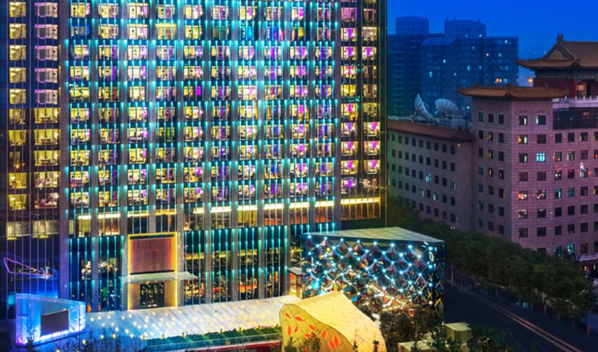 All the W Hotels in Starwood‘s international hotel chain have a strong design orientation, futuristic architecture, and stylishly combine art and lifestyle, comfort and luxury. This is also true for the five-star hotel W Beijing Chang‘an, which with its colourful media facade - which can display an oversized „W“- draws attention to itself from afar in Beijing‘s downtown area. The international chain‘s hotel is centrally located in China‘s capital city - close to world-famous landmarks such as the Forbidden City and Tiananmen Square. The inner-city diplomatic and business district Chaoyang is characterised by a very urban mix of glass skyscrapers and ancient attractions, modern shopping centres and traditional markets, and vibrant city life and quiet temples. The district, just like the city of Beijing itself, is enormously multi-layered. Here tradition meets modernity, luxury meets simplicity, locals meet tourists, and modern culture meets ancient rites. All these contrasts and tensions seem to enrich each other and give the city its special charm.