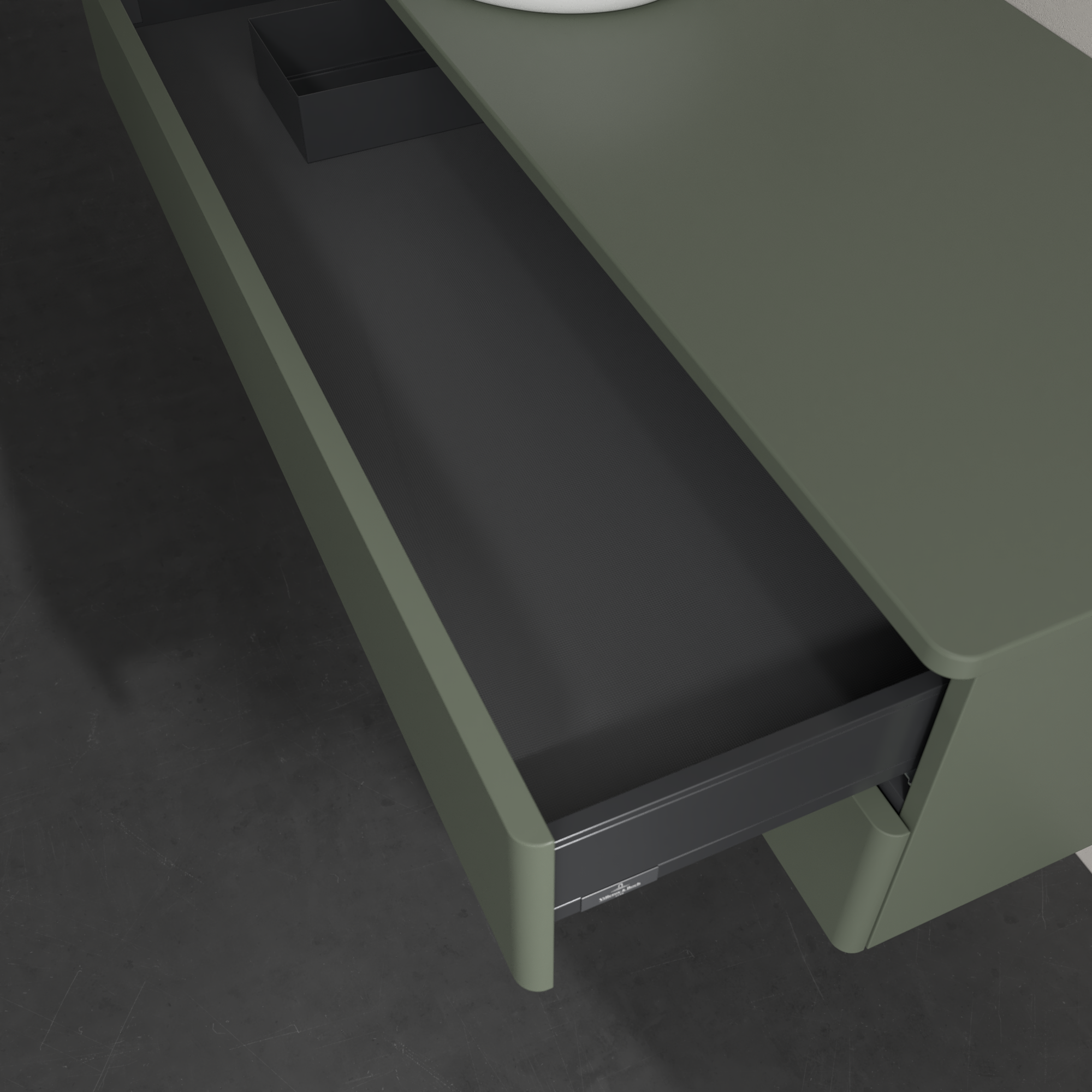 Antao Szafka podumywalkowa, 2 elementy wysuwane, 1200x360x500mm, brak zorganizowanego frontu, Korpus: Leaf Green Matt Lacquer, Front: Leaf Green Matt Lacquer, Blat: Leaf Green Matt Lacquer