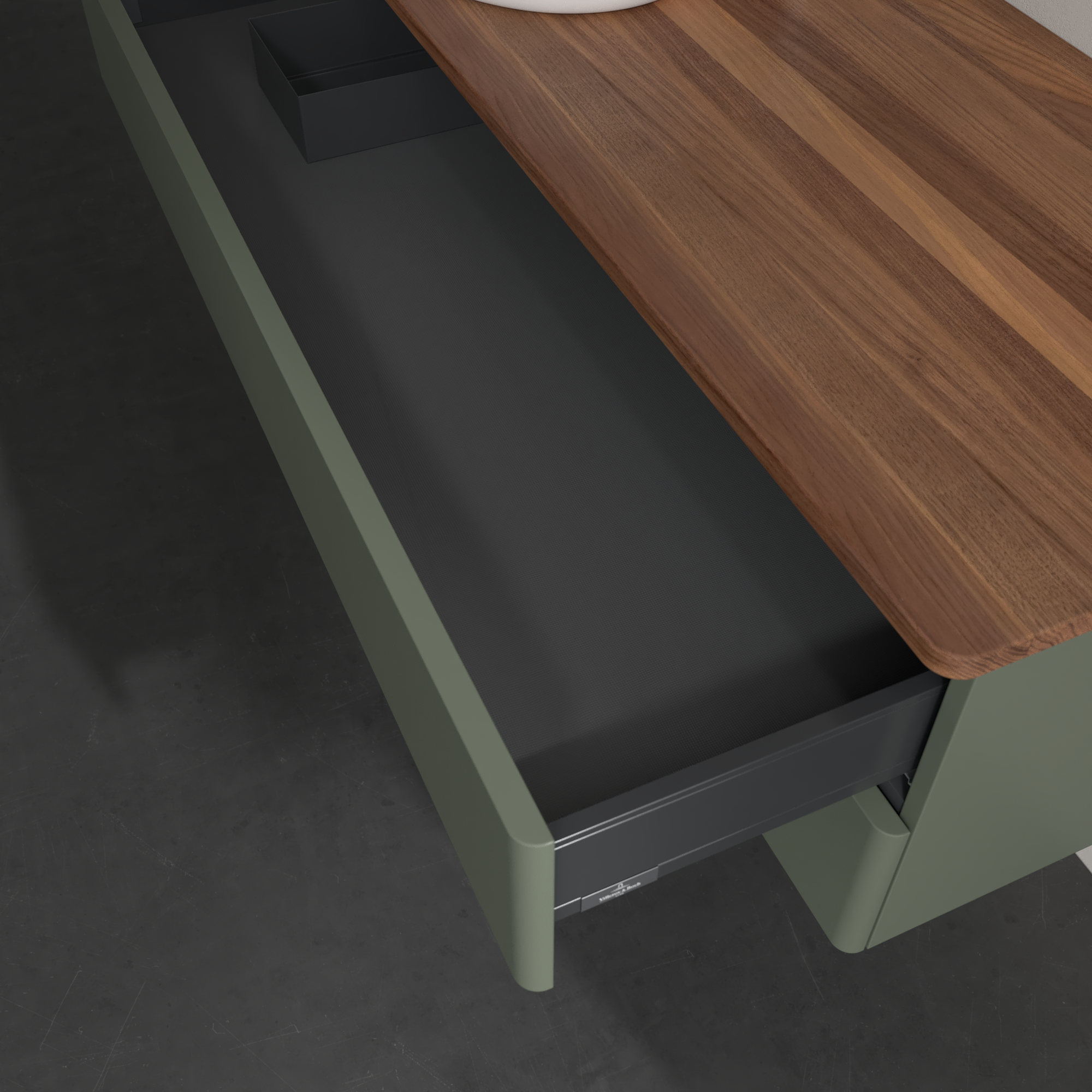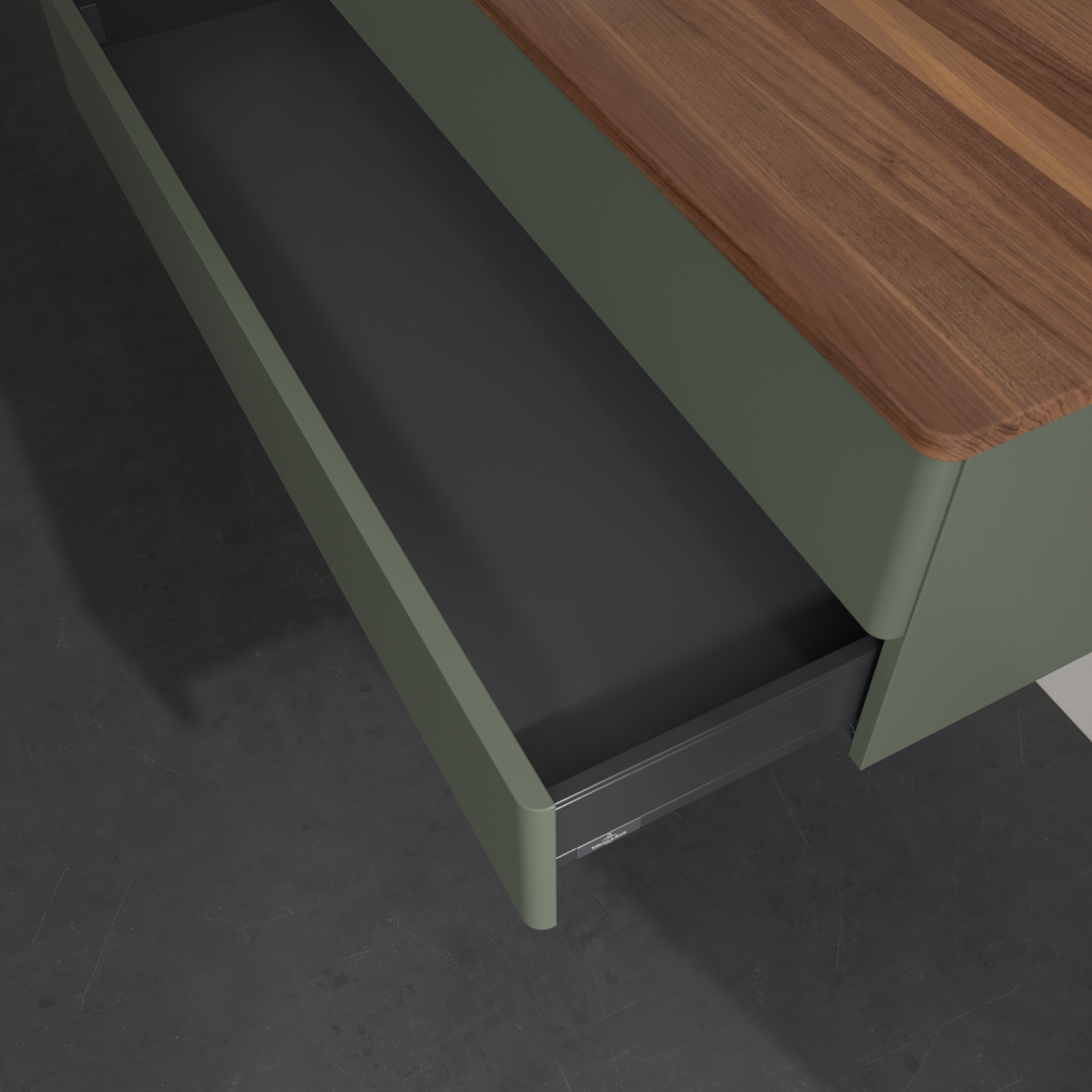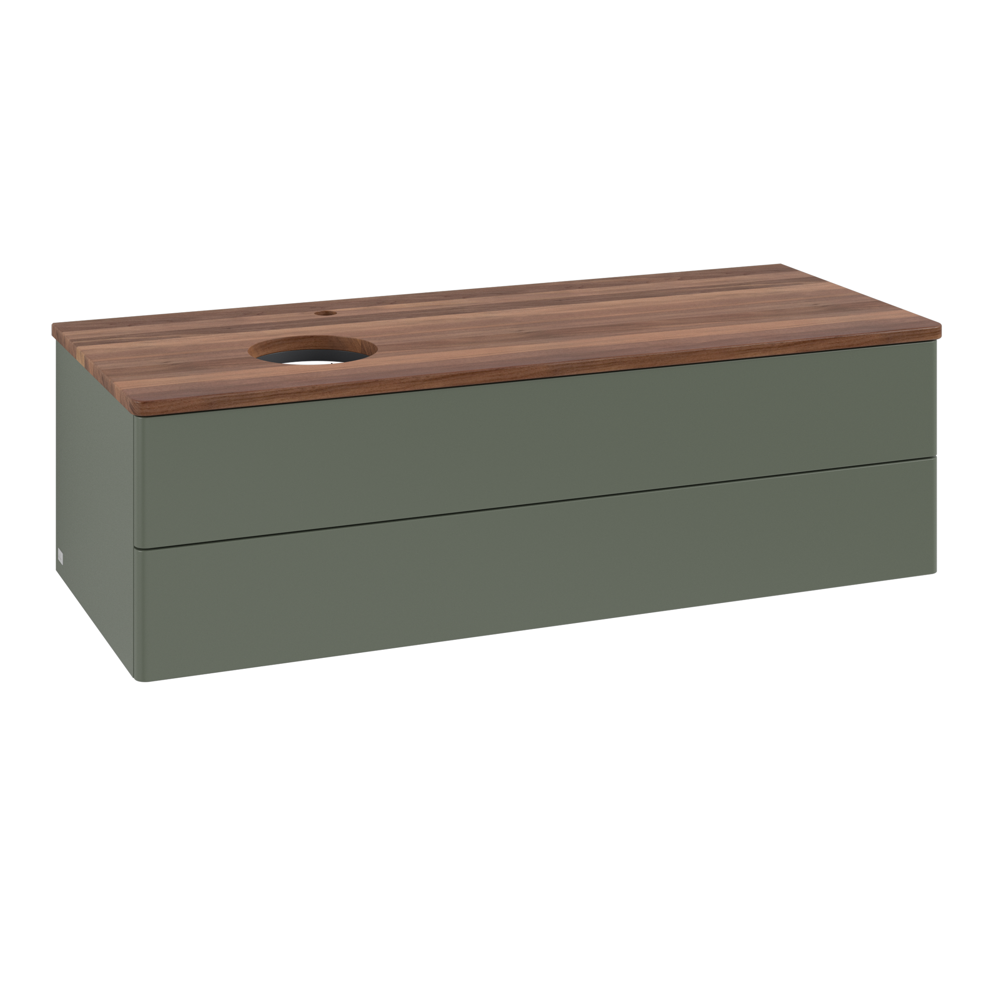 Antao Szafka podumywalkowa, 2 elementy wysuwane, 1200x360x500mm, brak zorganizowanego frontu, Korpus: Leaf Green Matt Lacquer, Front: Leaf Green Matt Lacquer, Blat: Warm Walnut