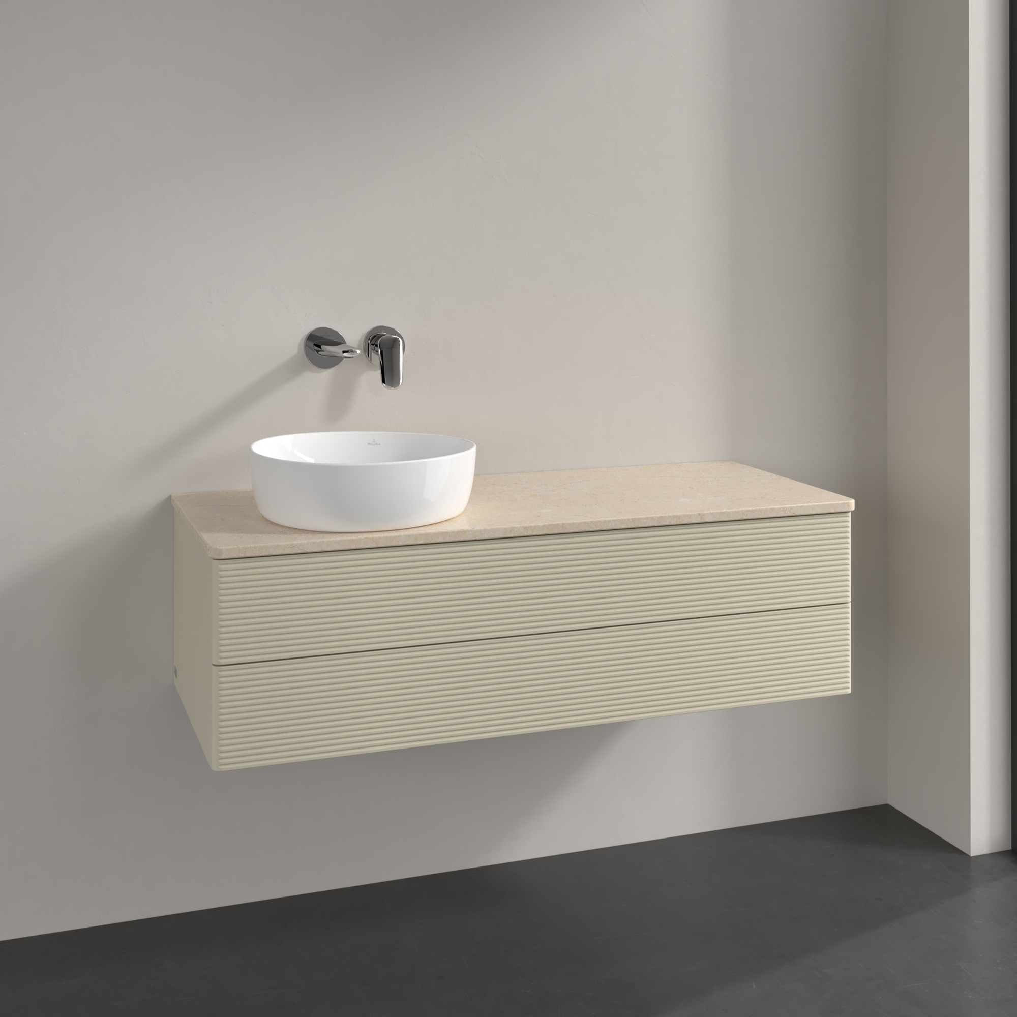 Antao Szafka podumywalkowa, 2 elementy wysuwane, 1200x360x500mm, Front ze strukturą, Korpus: Silk Grey Matt Lacquer, Front: Silk Grey Matt Lacquer, Blat: Botticino