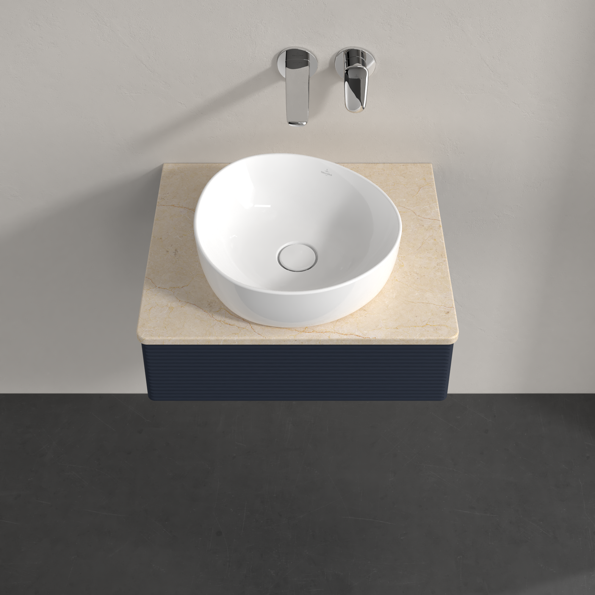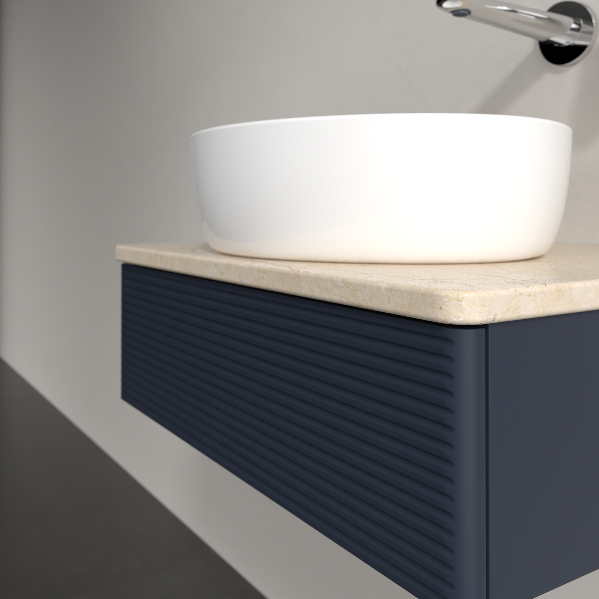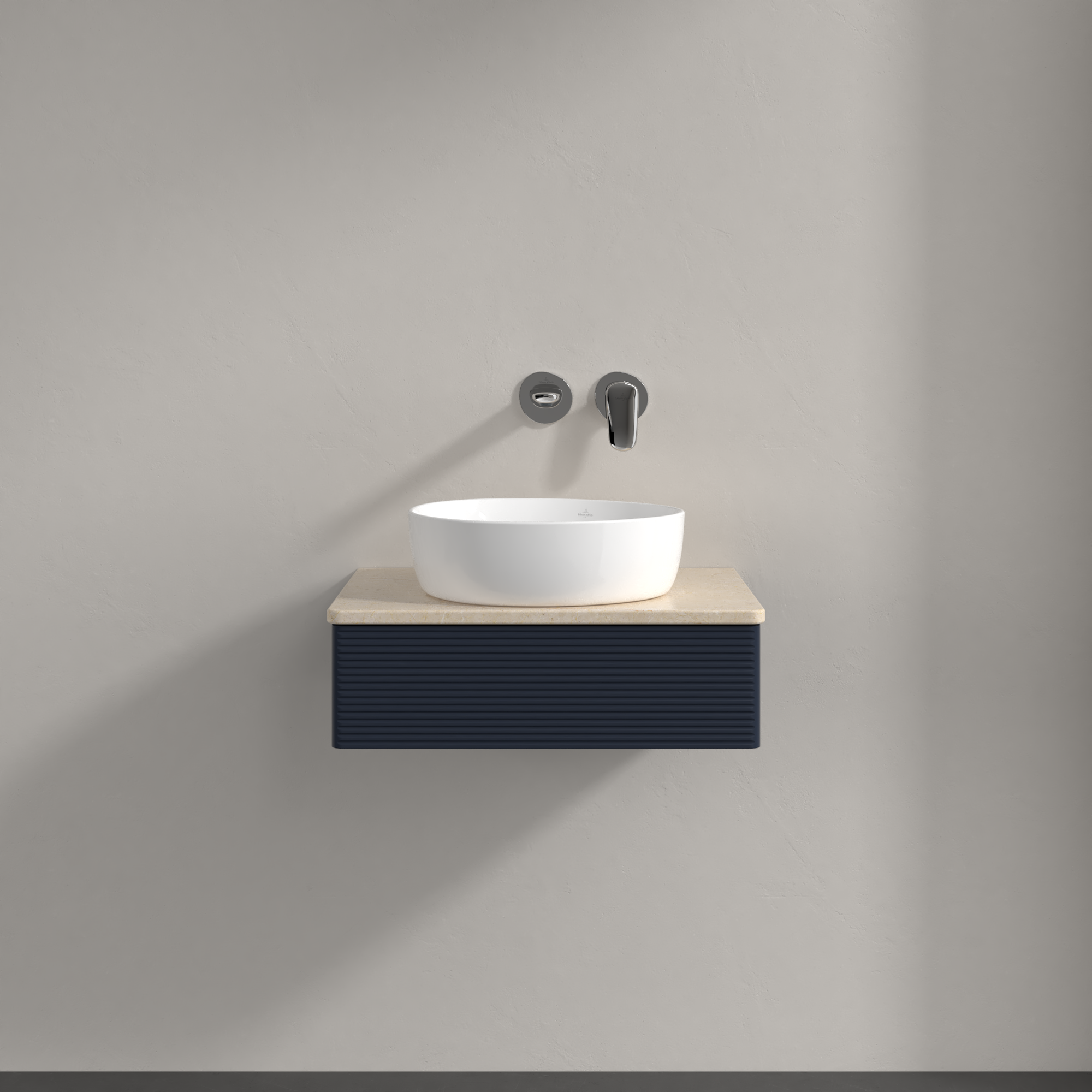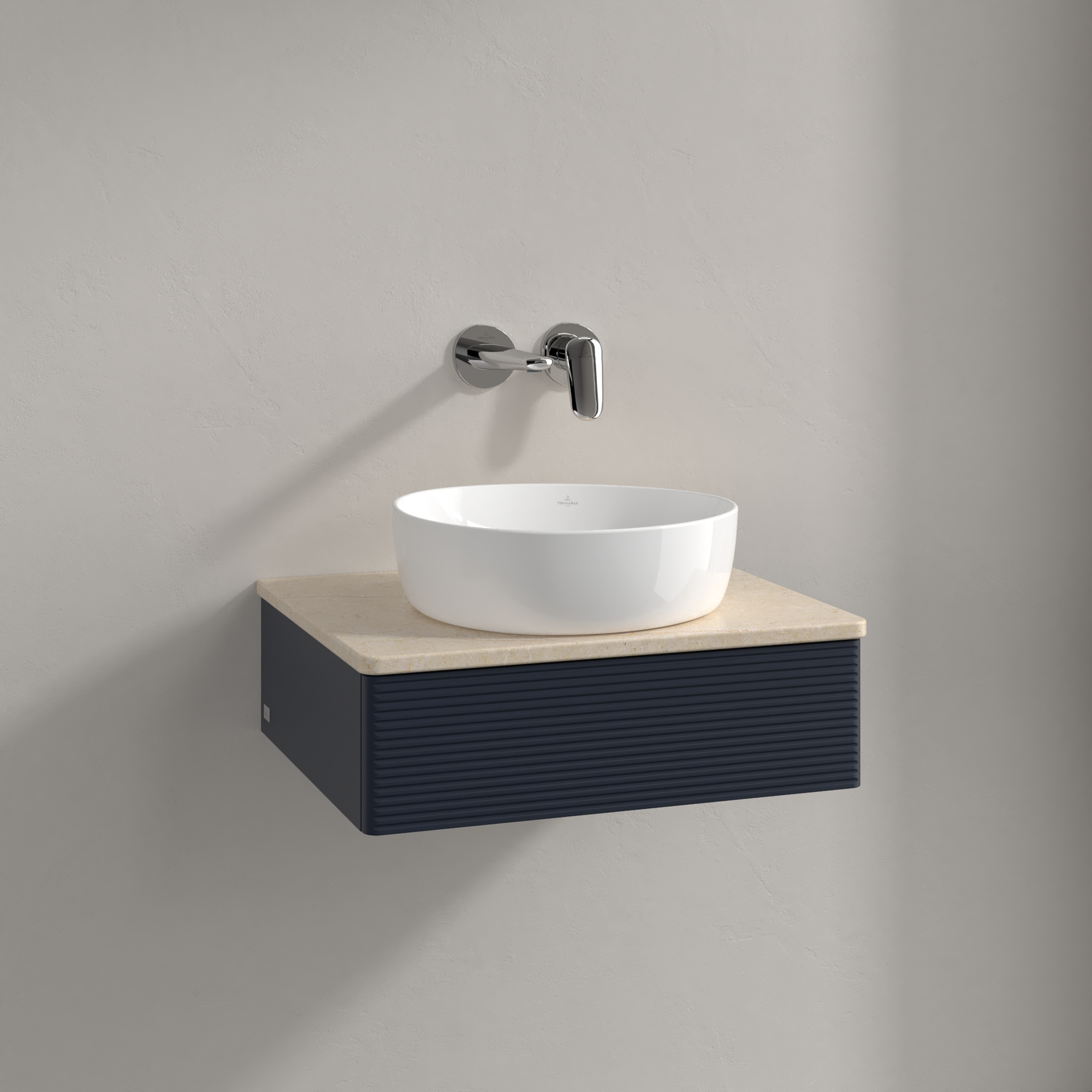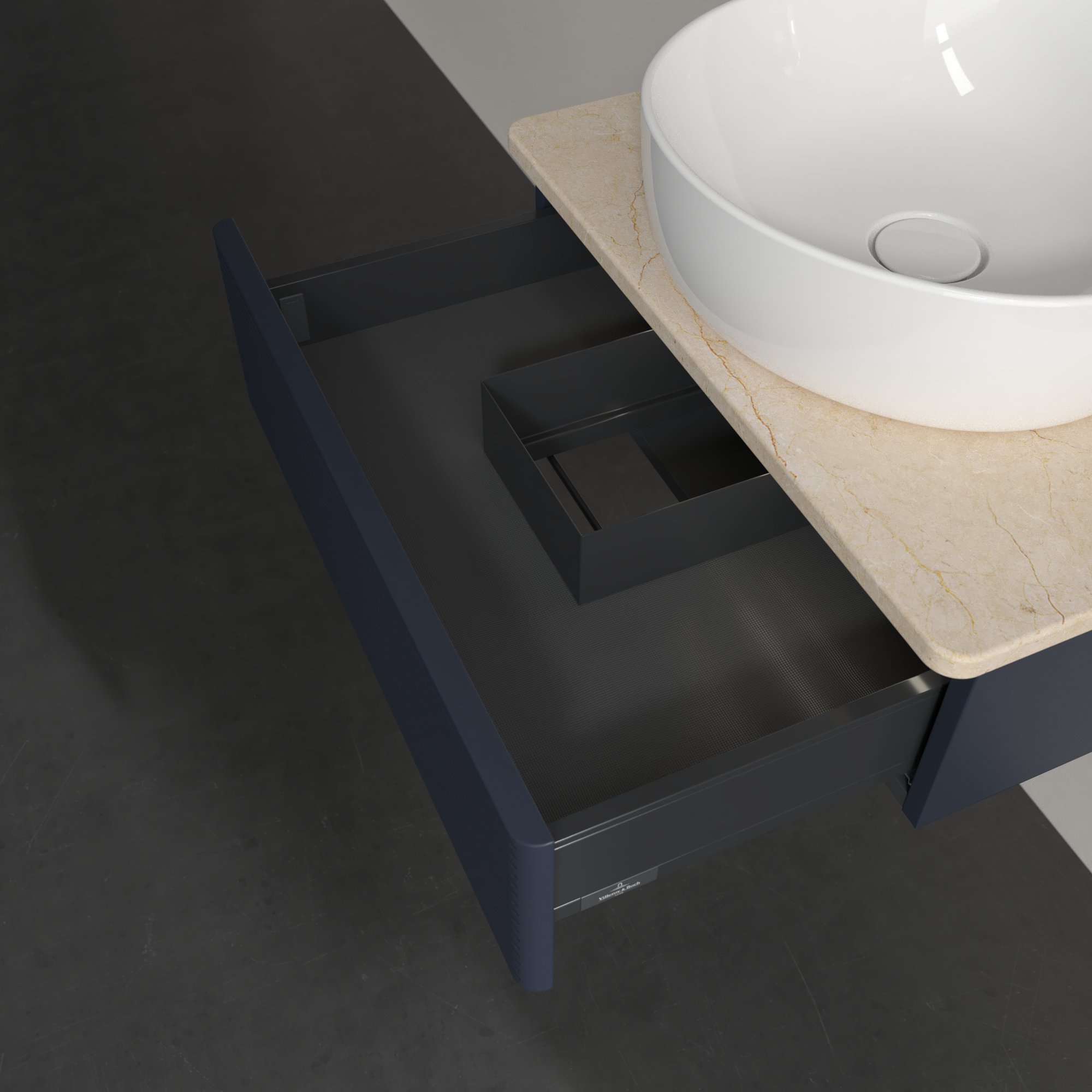 Antao Szafka podumywalkowa, z oświetleniem, 1 element wysuwany, 600x190x500mm, Front ze strukturą, Korpus: Midnight Blue Matt Lacquer, Front: Midnight Blue Matt Lacquer, Blat: Botticino