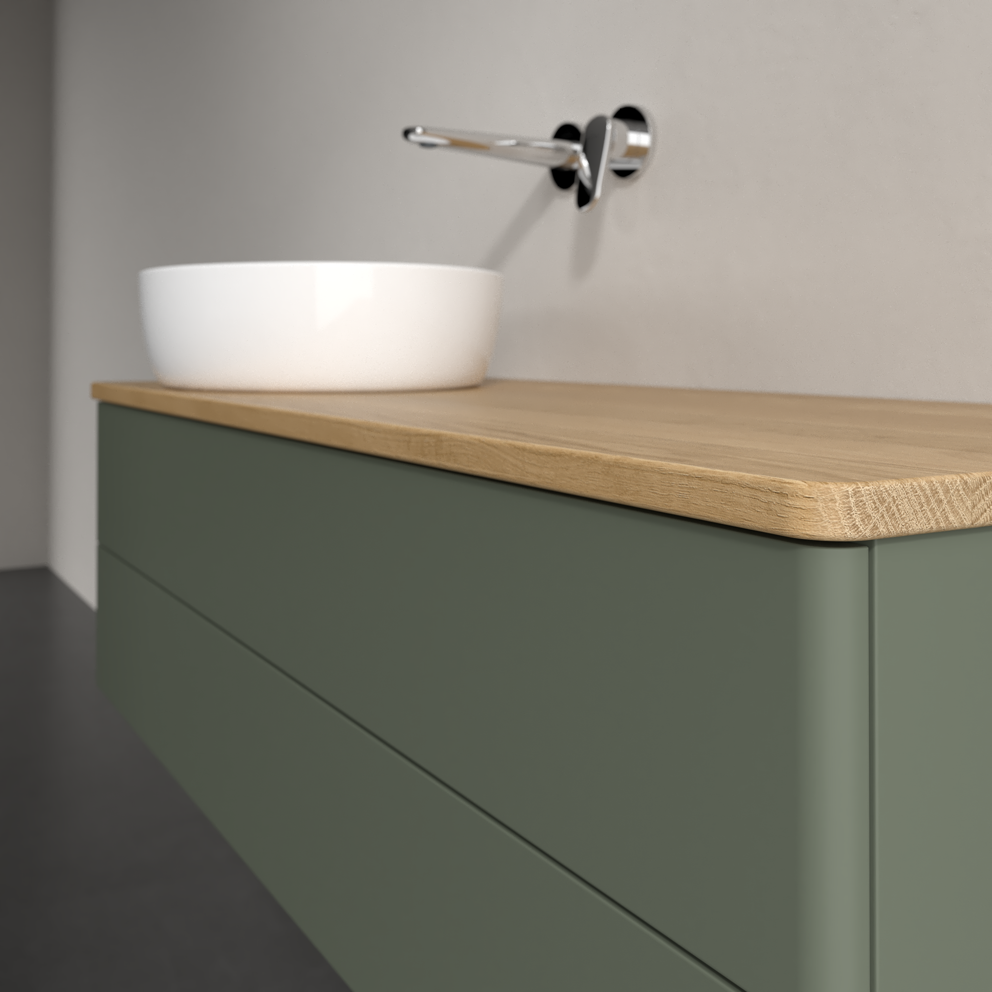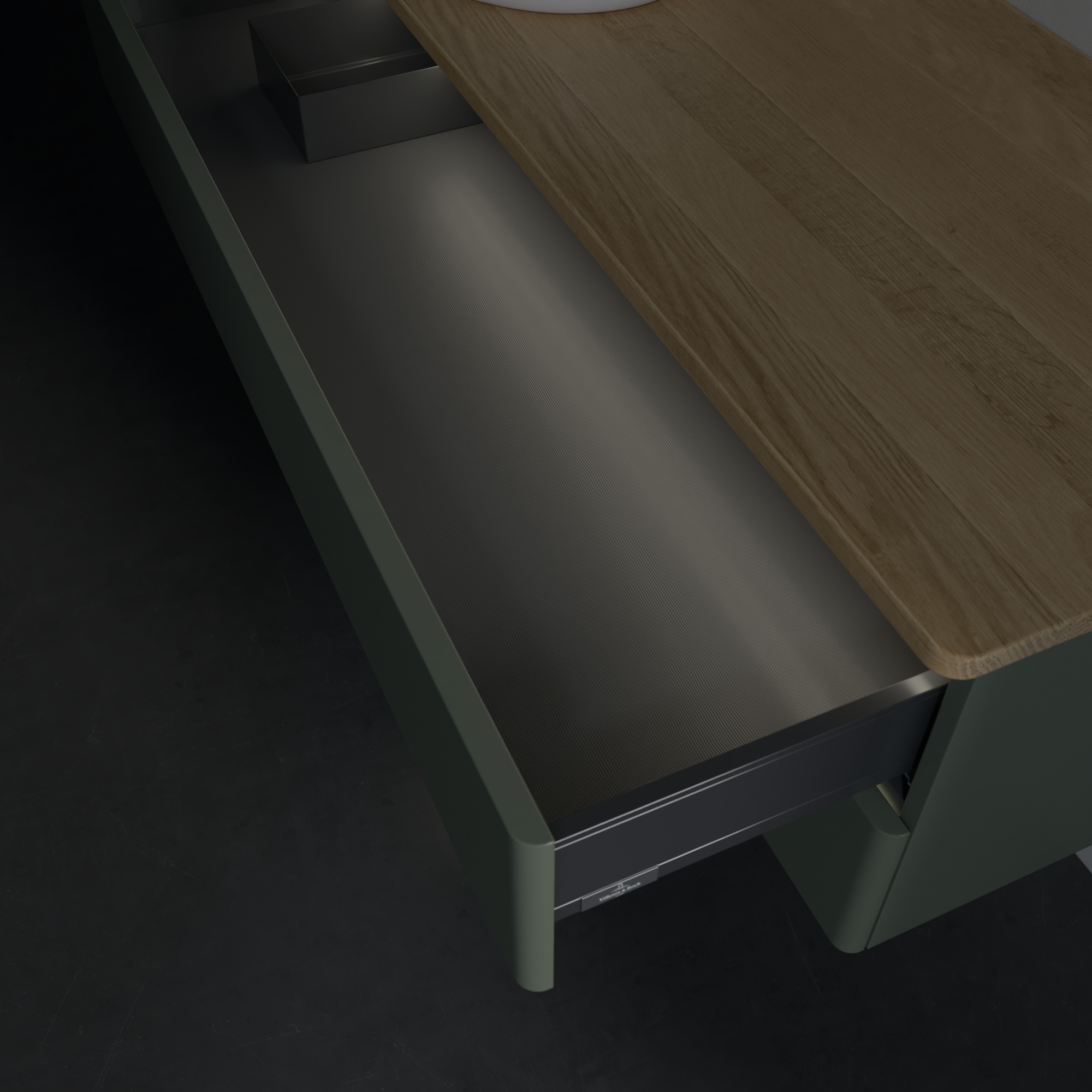 Antao Szafka podumywalkowa, z oświetleniem, 2 elementy wysuwane, 1200x360x500mm, brak zorganizowanego frontu, Korpus: Leaf Green Matt Lacquer, Front: Leaf Green Matt Lacquer, Blat: Honey Oak