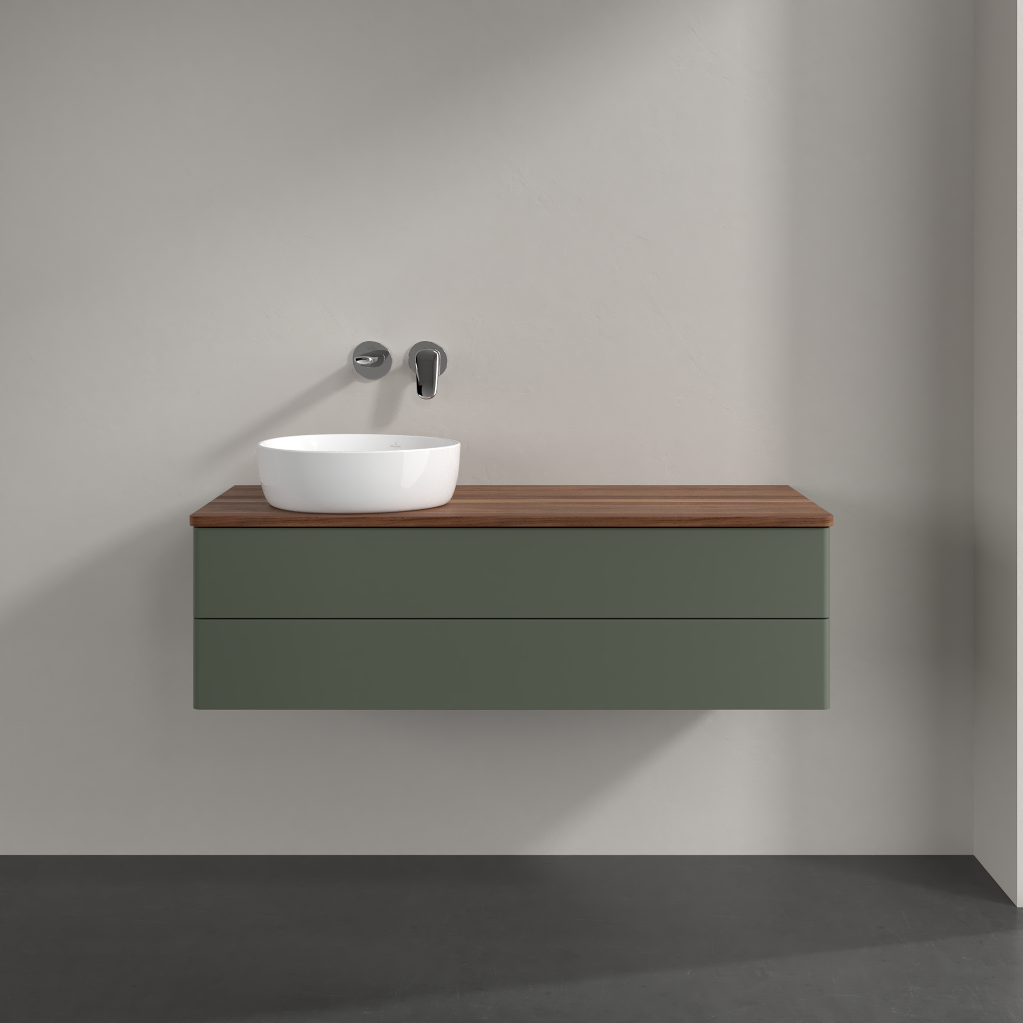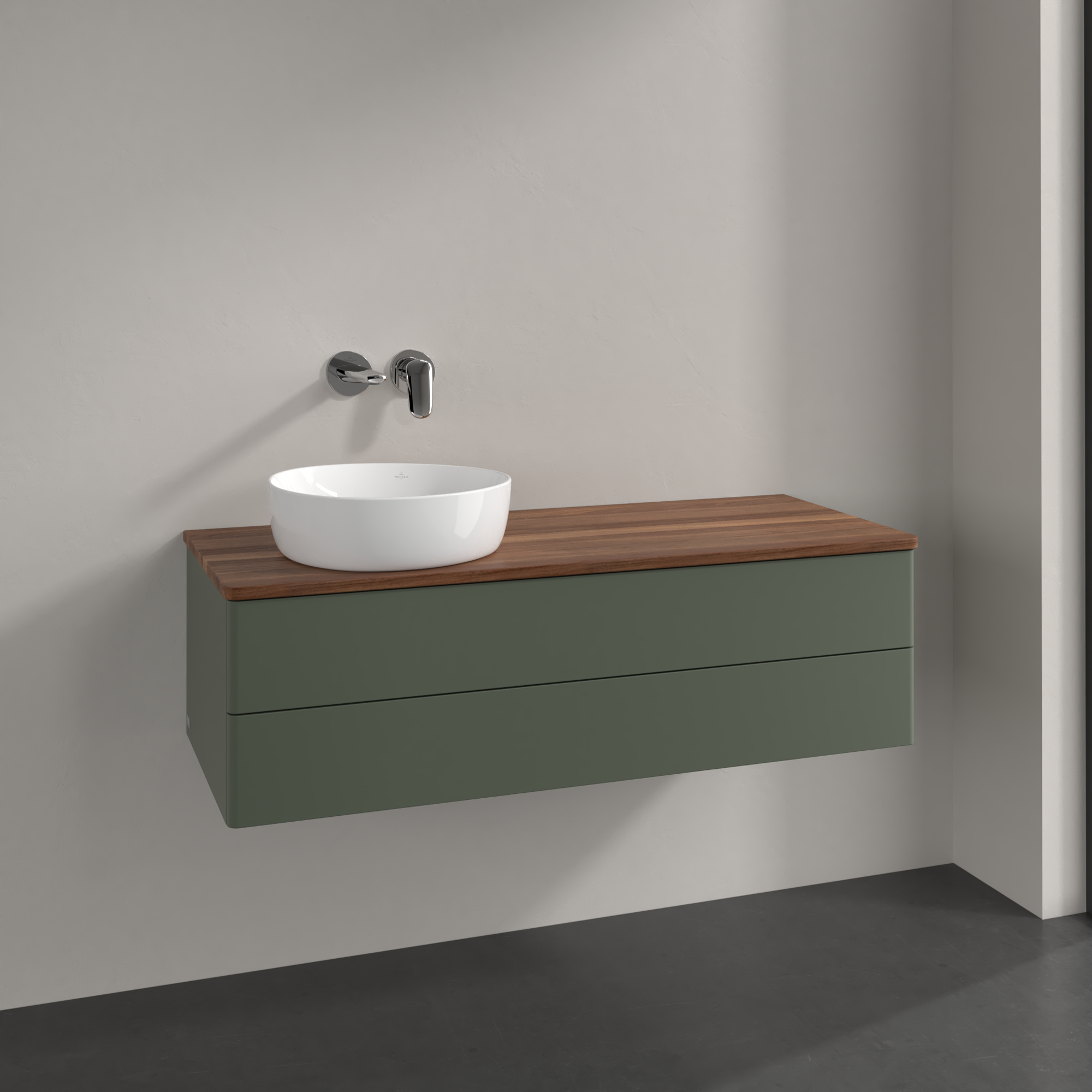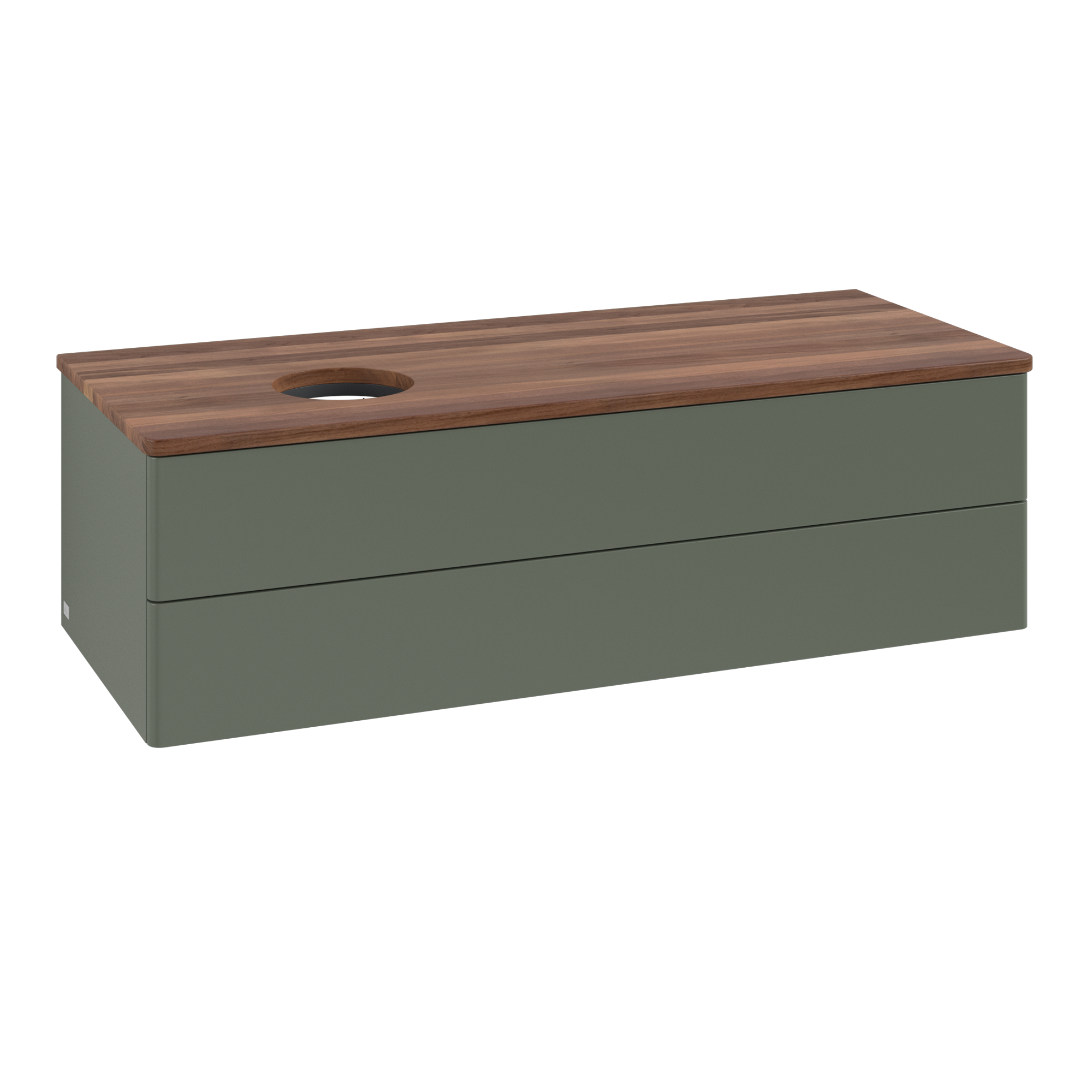 Antao Szafka podumywalkowa, z oświetleniem, 2 elementy wysuwane, 1200x360x500mm, brak zorganizowanego frontu, Korpus: Leaf Green Matt Lacquer, Front: Leaf Green Matt Lacquer, Blat: Warm Walnut