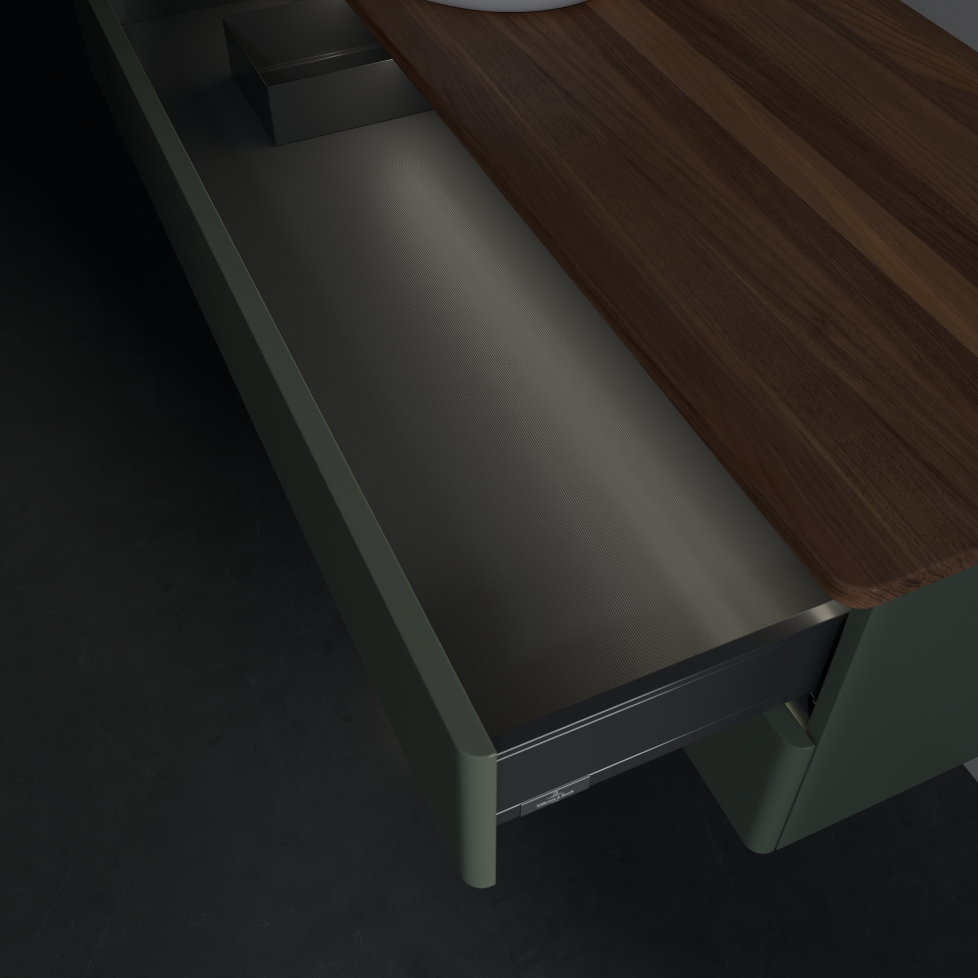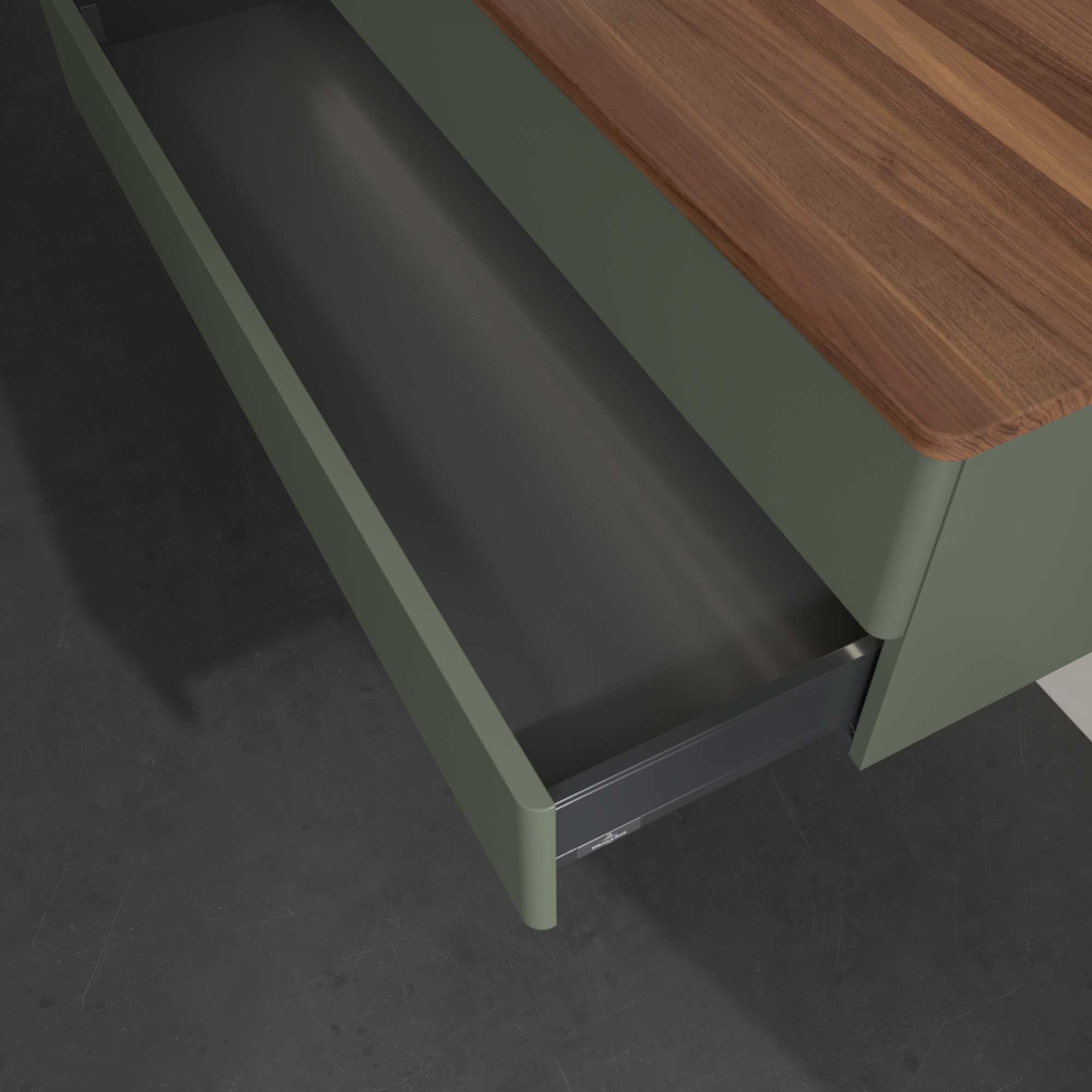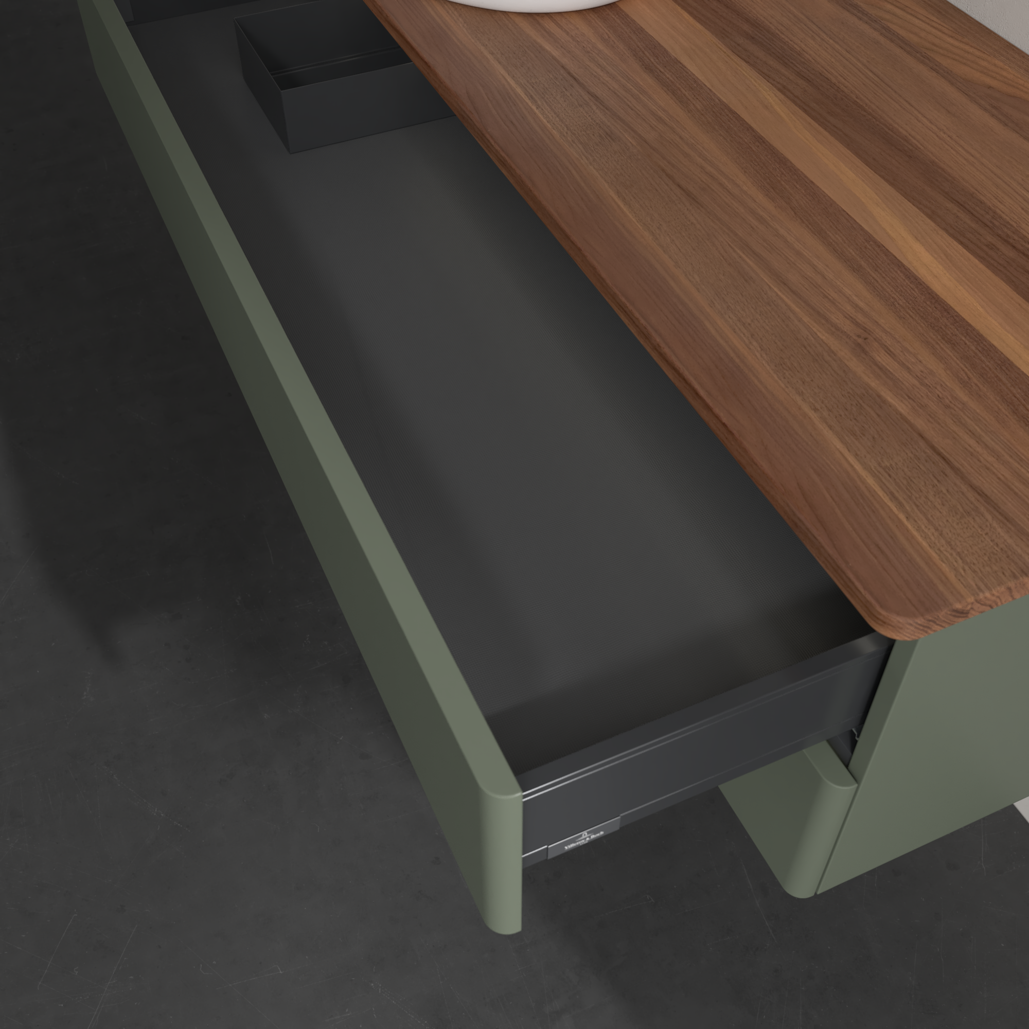 Antao Szafka podumywalkowa, z oświetleniem, 2 elementy wysuwane, 1200x360x500mm, brak zorganizowanego frontu, Korpus: Leaf Green Matt Lacquer, Front: Leaf Green Matt Lacquer, Blat: Warm Walnut