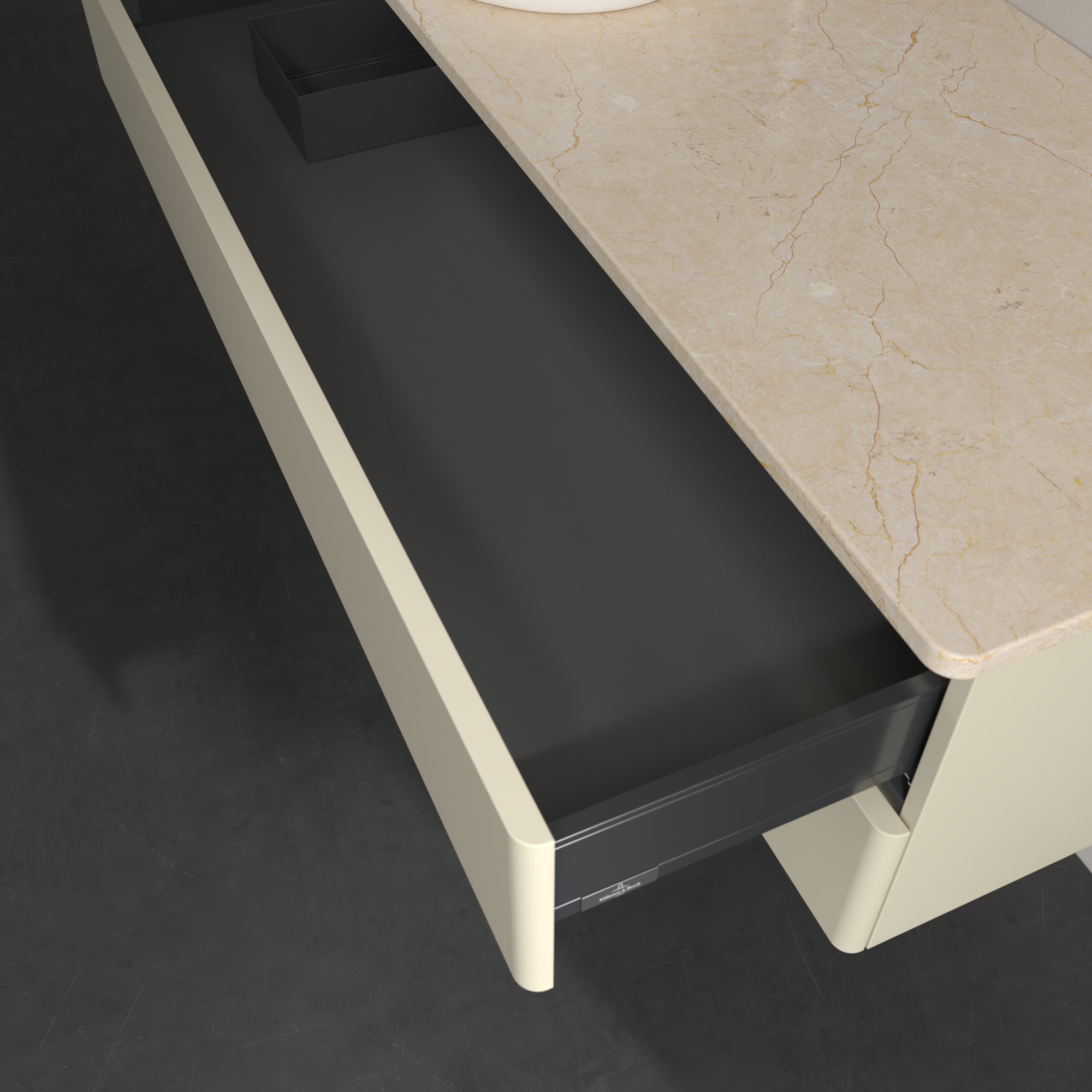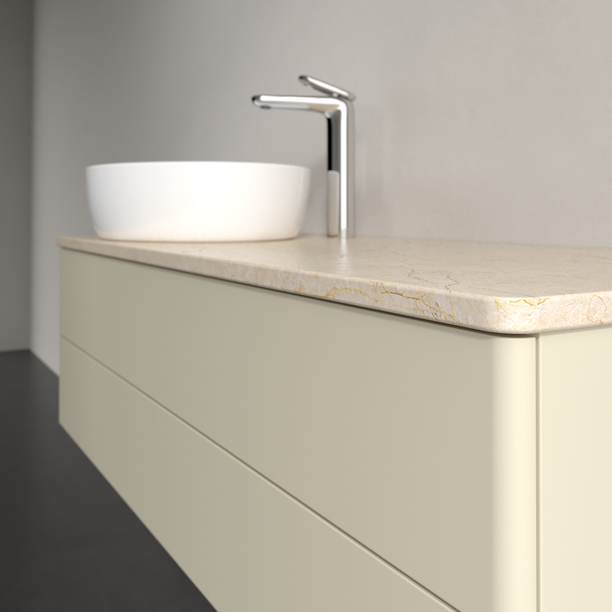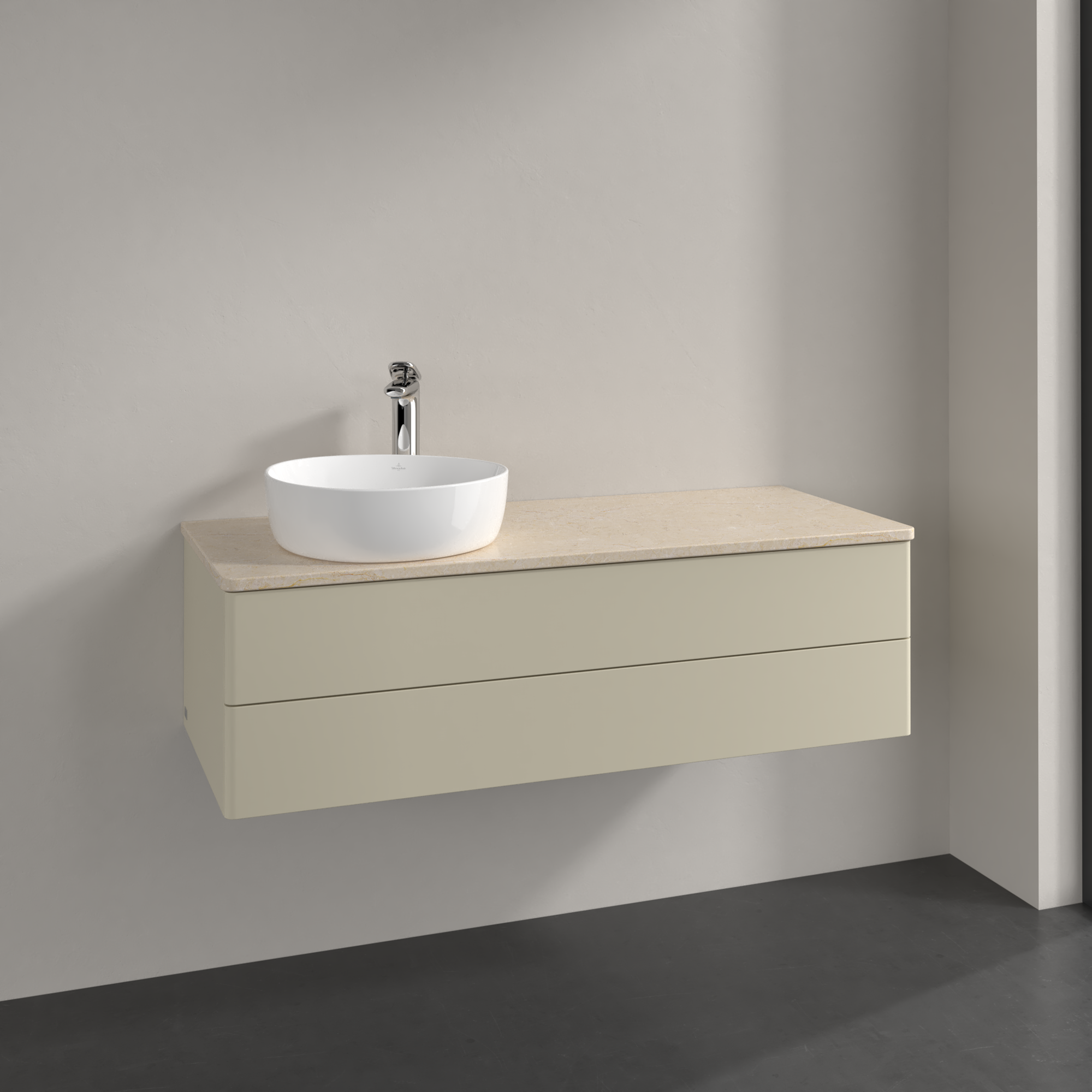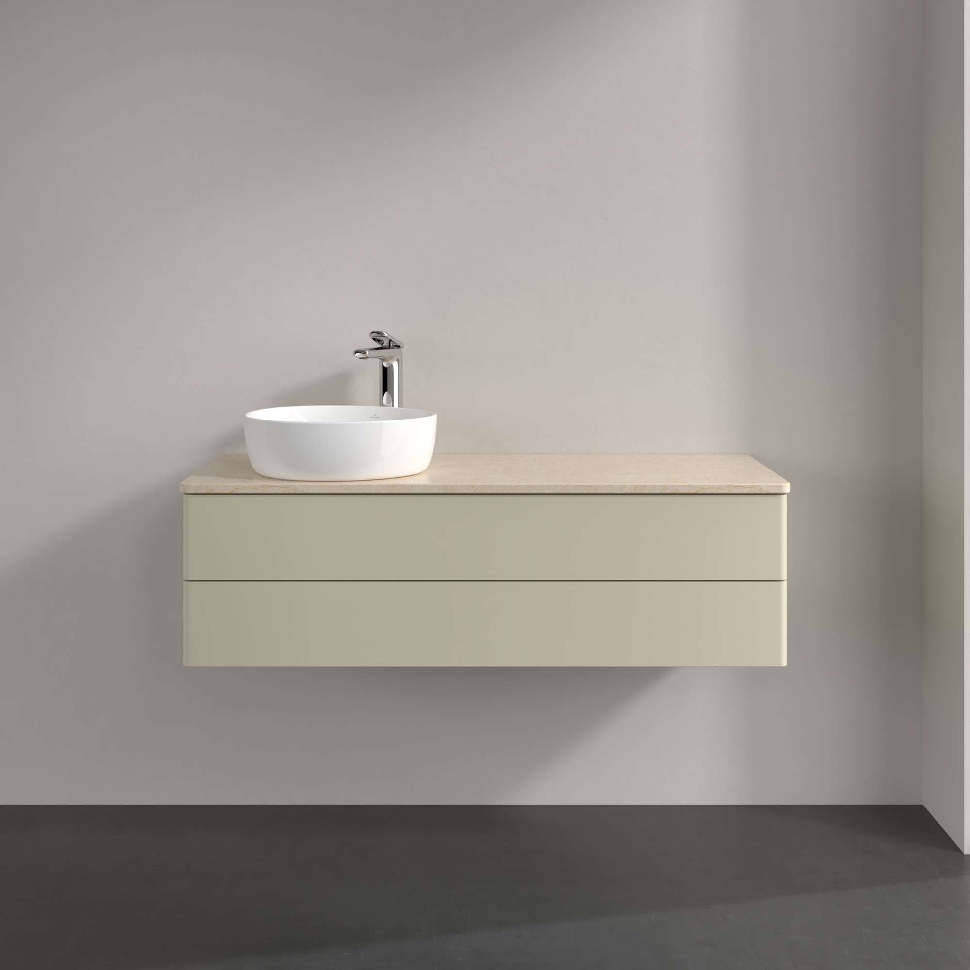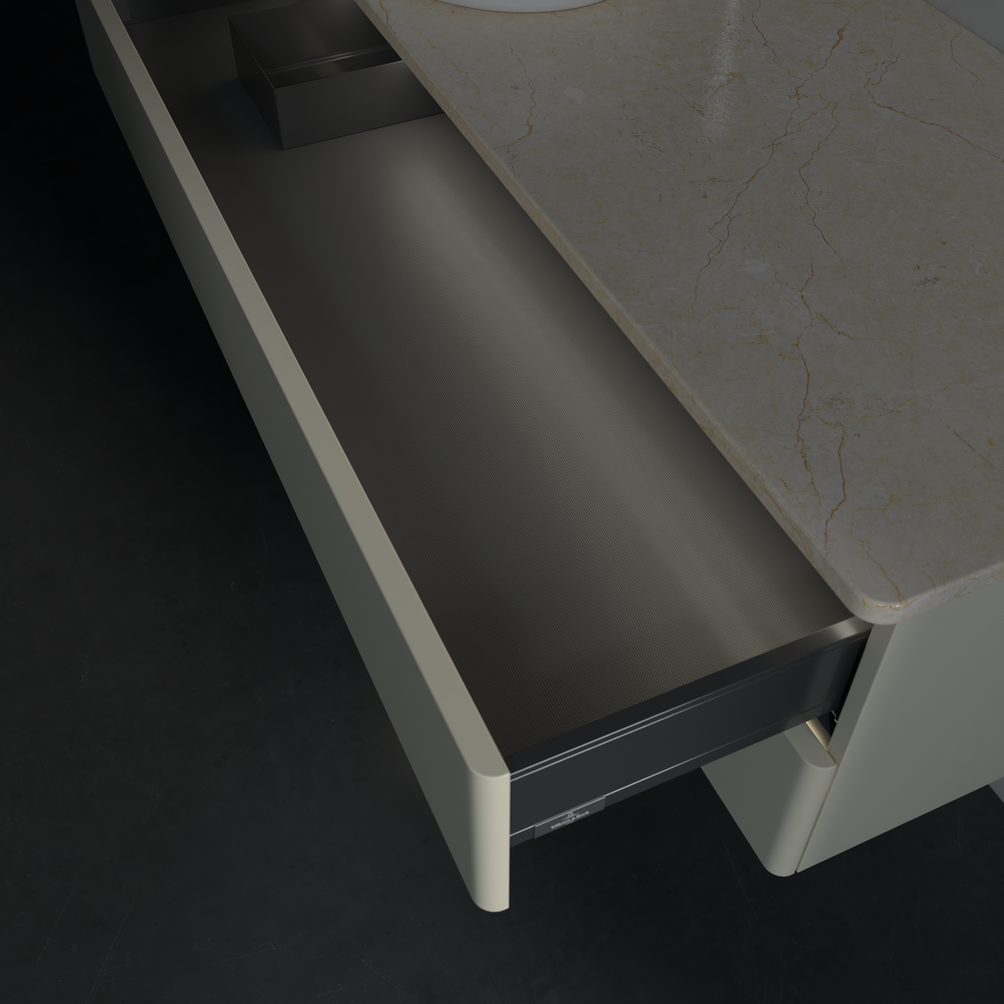 Antao Szafka podumywalkowa, z oświetleniem, 2 elementy wysuwane, 1200x360x500mm, brak zorganizowanego frontu, Korpus: Silk Grey Matt Lacquer, Front: Silk Grey Matt Lacquer, Blat: Botticino