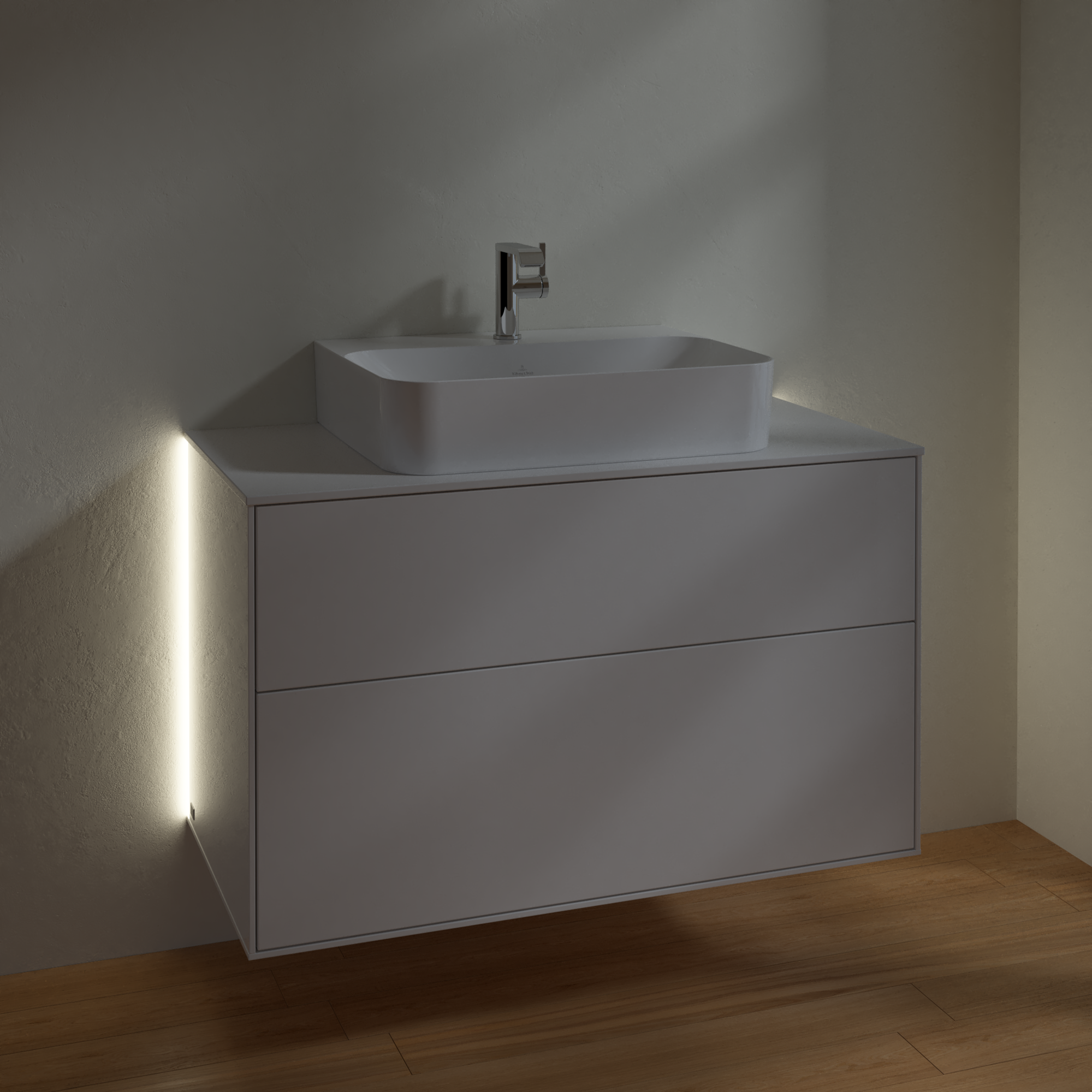 Finion Szafka podumywalkowa, z oświetleniem, 2 elementy wysuwane, 1000x603x501mm, Korpus: Glossy White Lacquer, Front: Glossy White Lacquer, Blat: Glass White Matt